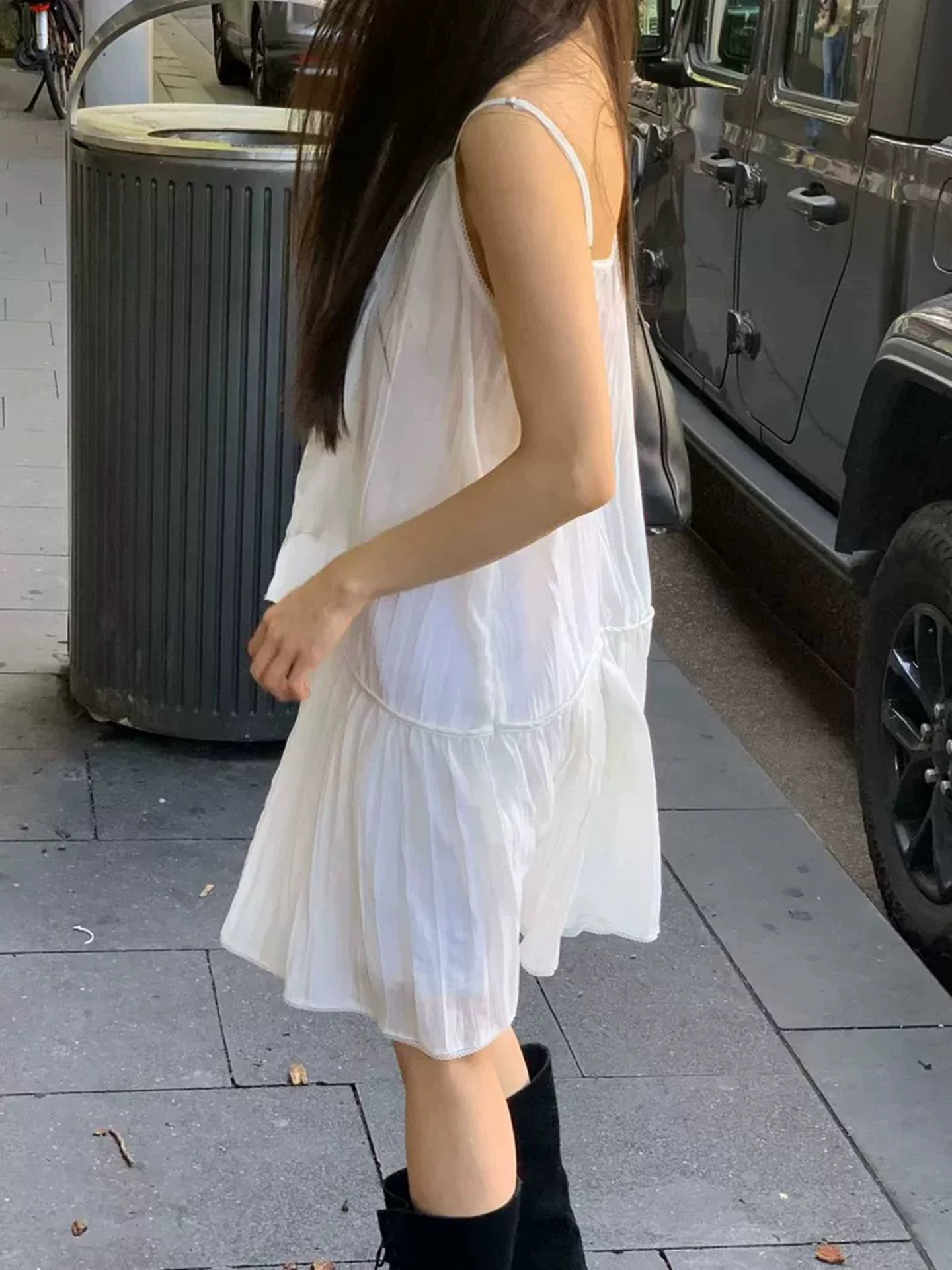 있음 선적 한국 ins 달콤함 요정 단색 다용도 슬립 드레스