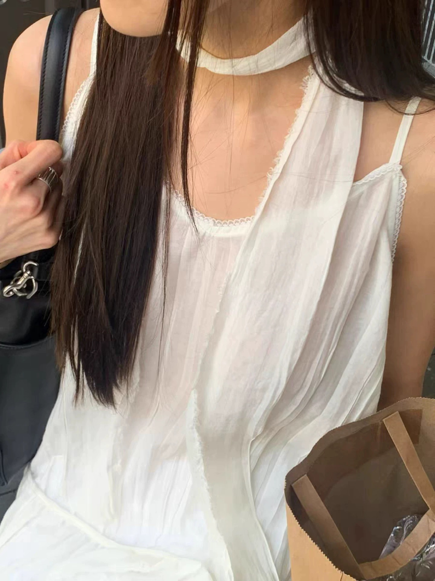 있음 선적 한국 ins 작은 대중 계단식 주름 레이스 쉬폰 달콤함 캐미솔