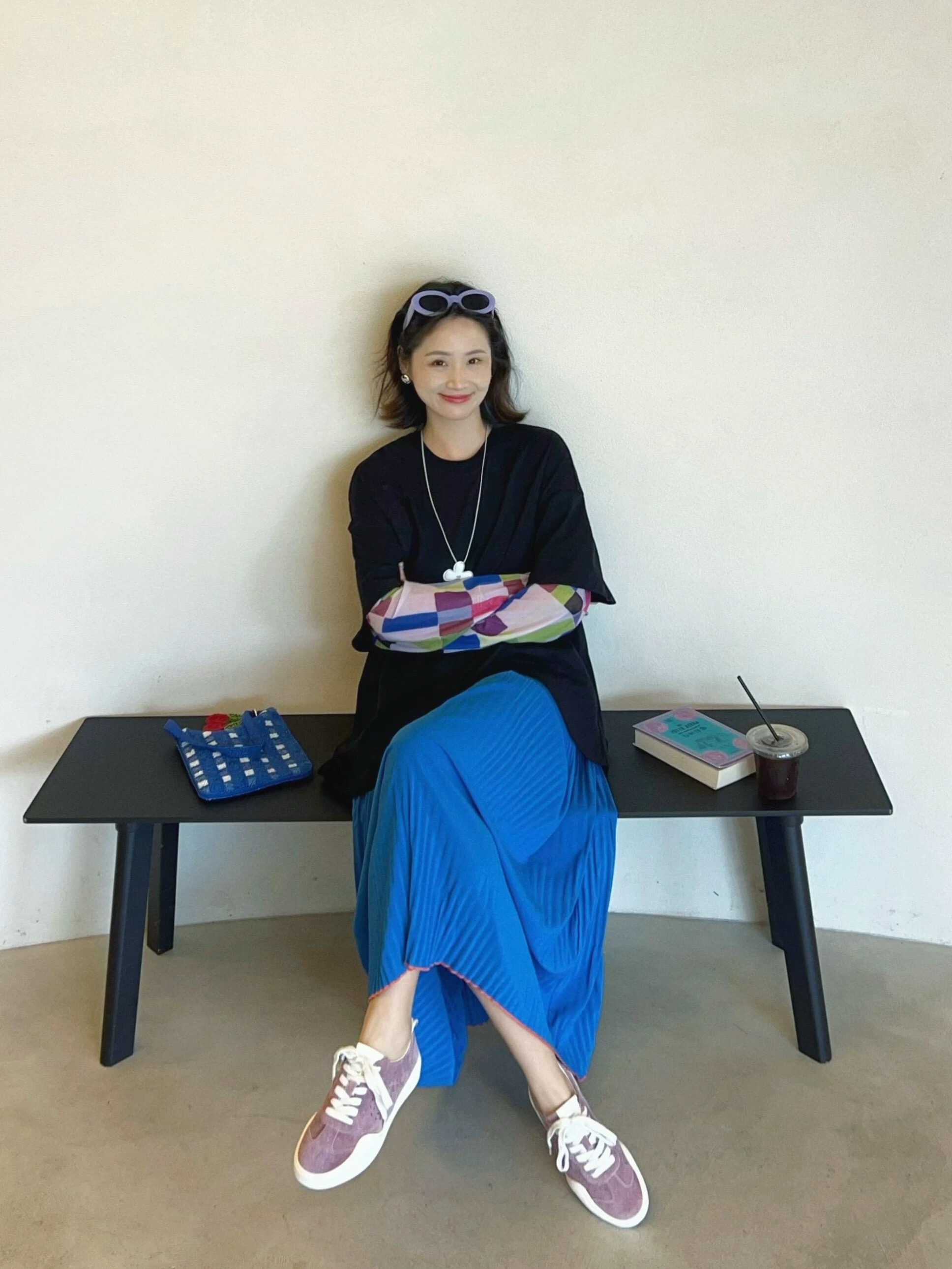 이른 봄 톰 글 래 원인 파란색 플리츠 반신 스커트 여성 봄 가을 2026 새로운 아름다운 도파민 플리츠 한 마디 롱 스커트