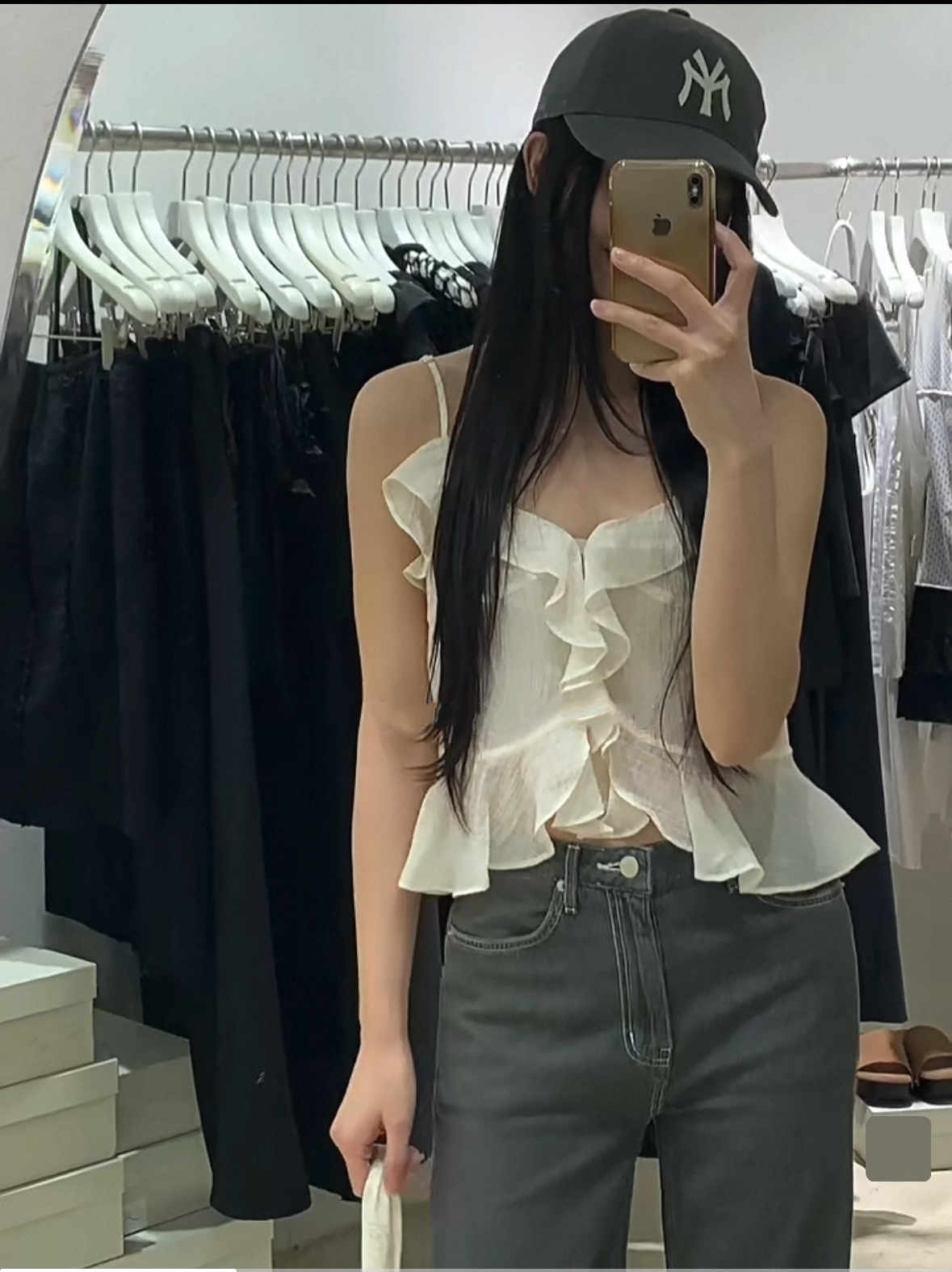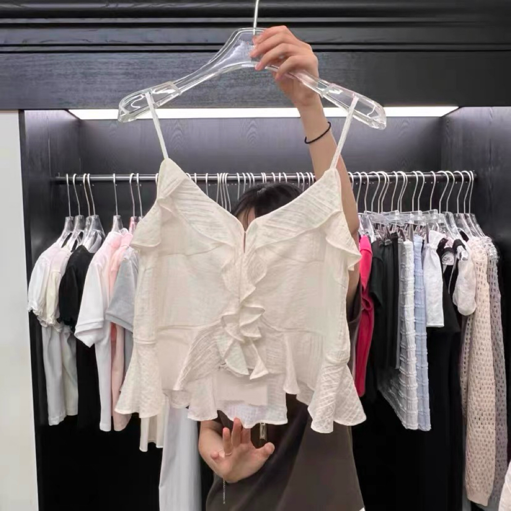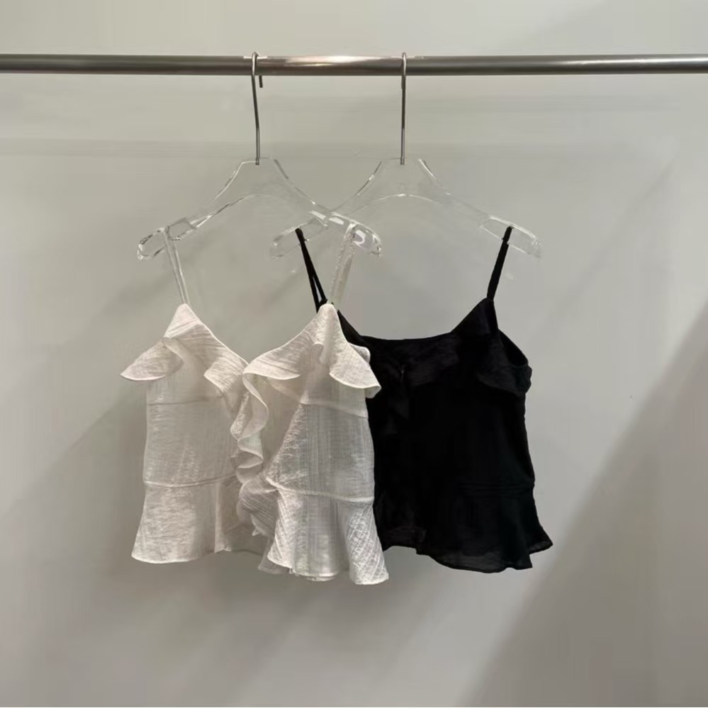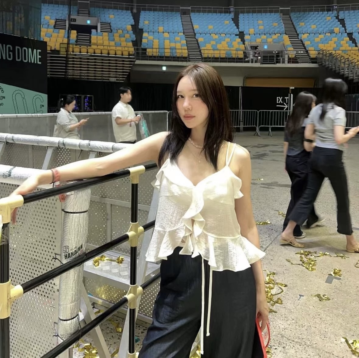 있음 선적 한국 ins 작은 대중 계단식 주름 레이스 쉬폰 달콤함 캐미솔