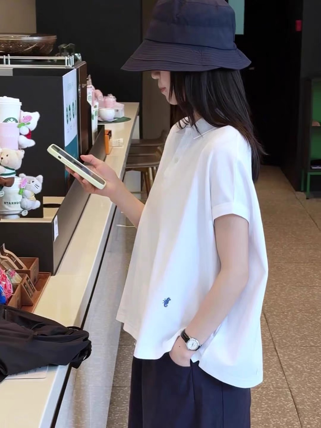 한 부서 루즈핏 캐주얼 운동 화이트 POLO 칼라 반팔 티셔츠 하이웨이스트 와이드 레그 팬츠 세트 여성 초여름