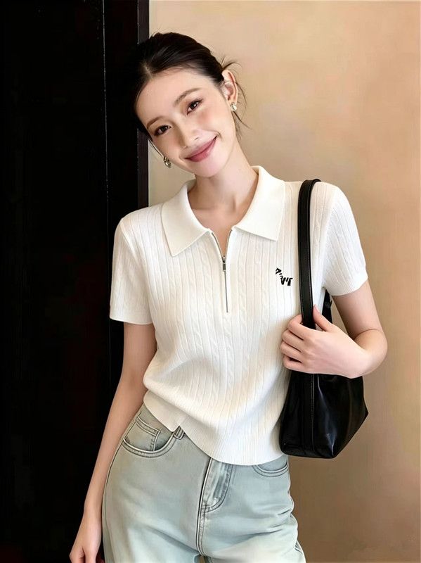 여름 새로운 POLO 칼라 품격 니트 반팔 티셔츠 미니멀리즘 miu 부서 니트 스웨터 여성