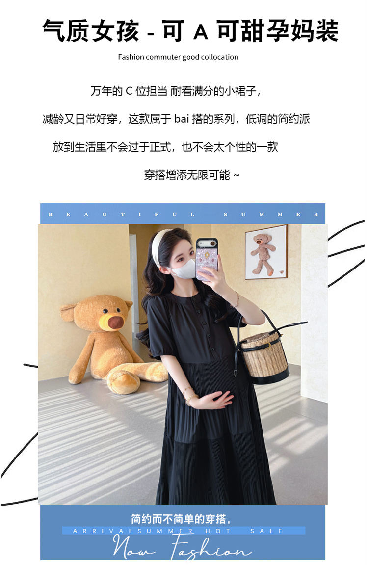 2026 여름 미니멀리즘 클래식 캐주얼 패션 몸매 가꾸기 품격 슬림해 보이는 임산부 반팔 드레스 빅 사이즈