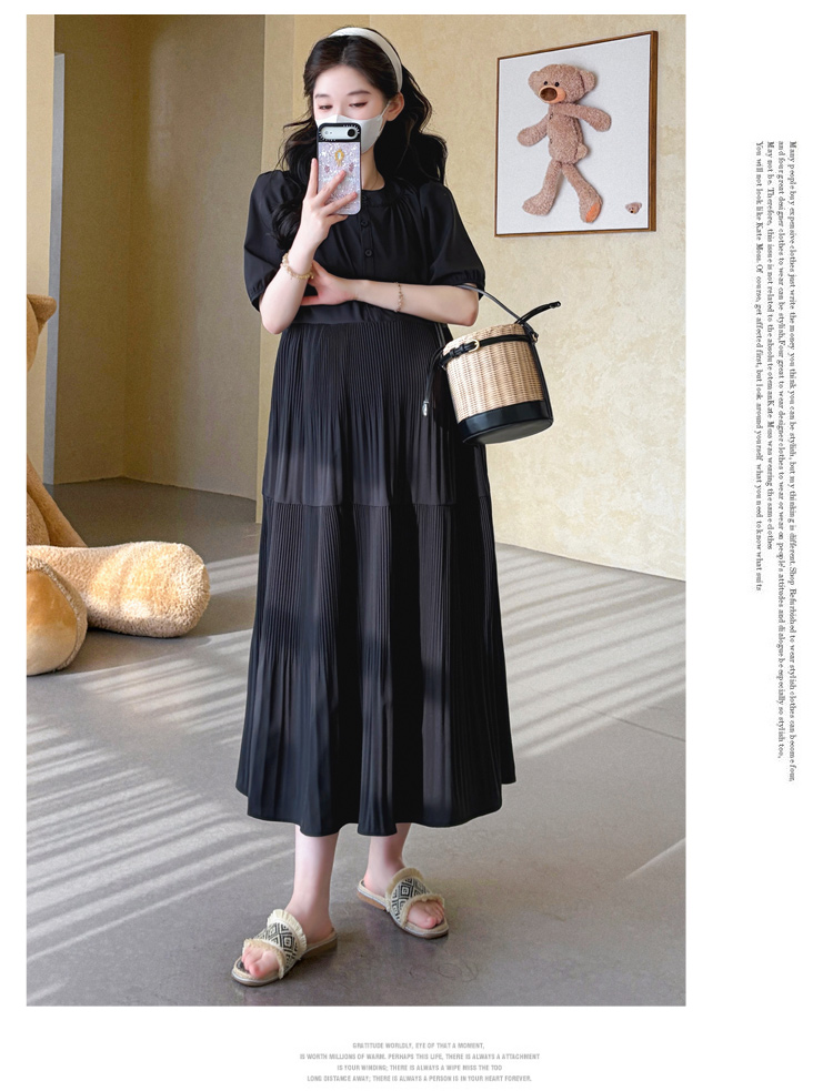 지금 2026 임산부 여름 새로운 루즈핏 플리츠 라운드 넥 미니멀리즘 문예 바람 우아함 부드러운 캐주얼 다용도 치마