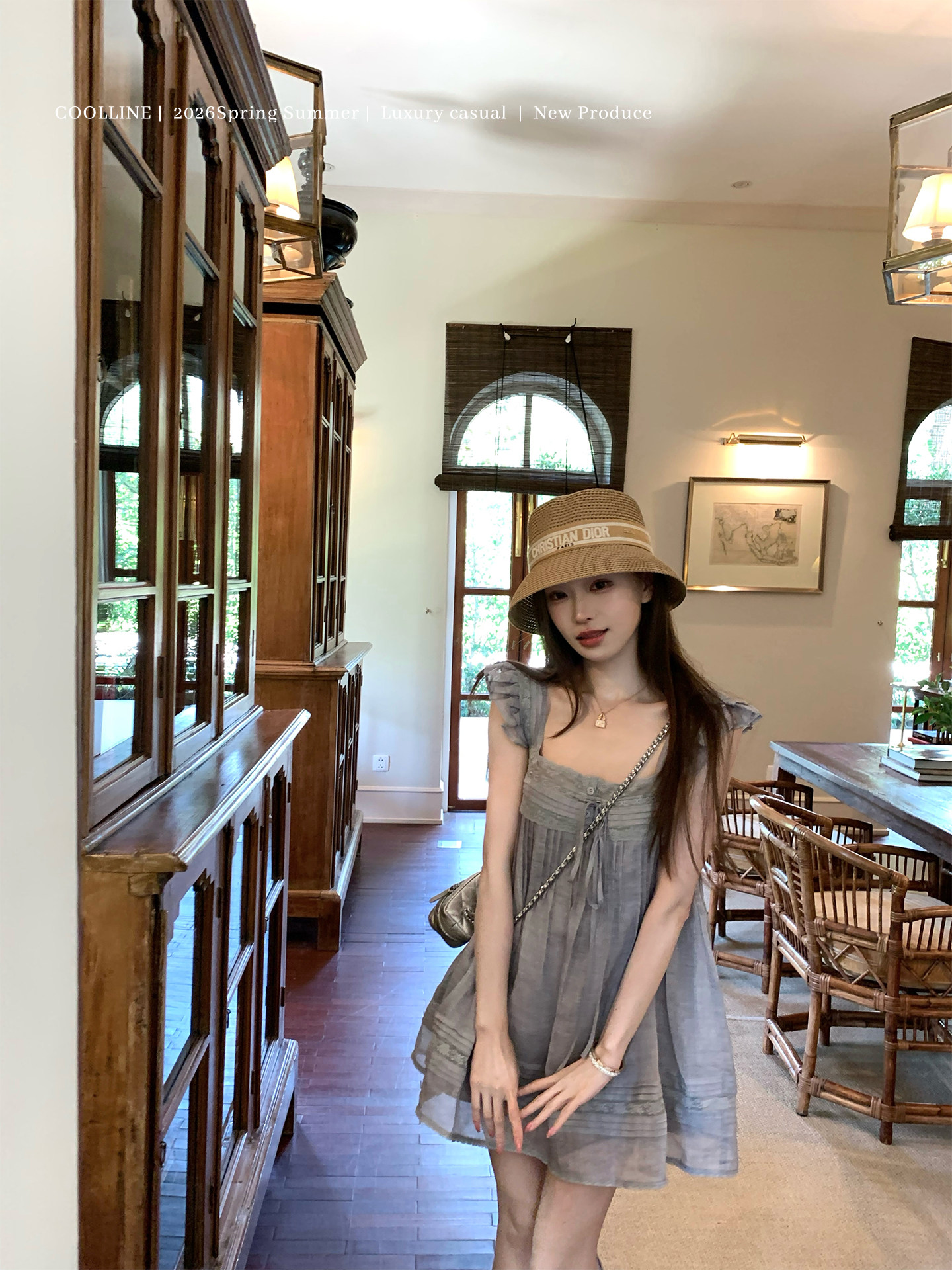 oshea 천 금빛 바람 민소매 조끼 여성 드레스 2026 새로운 여름 디자인 센스 슬림해 보이는 한 마디 플리츠 미니 스커트
