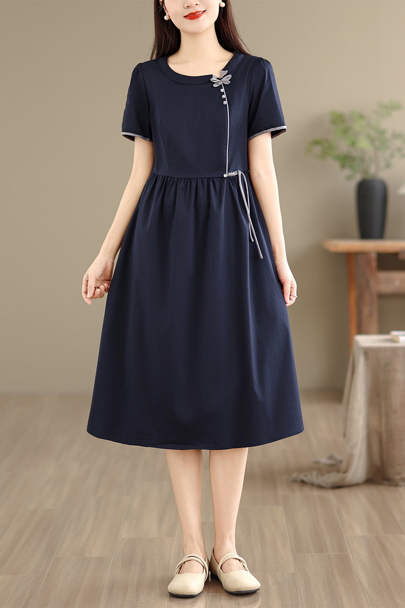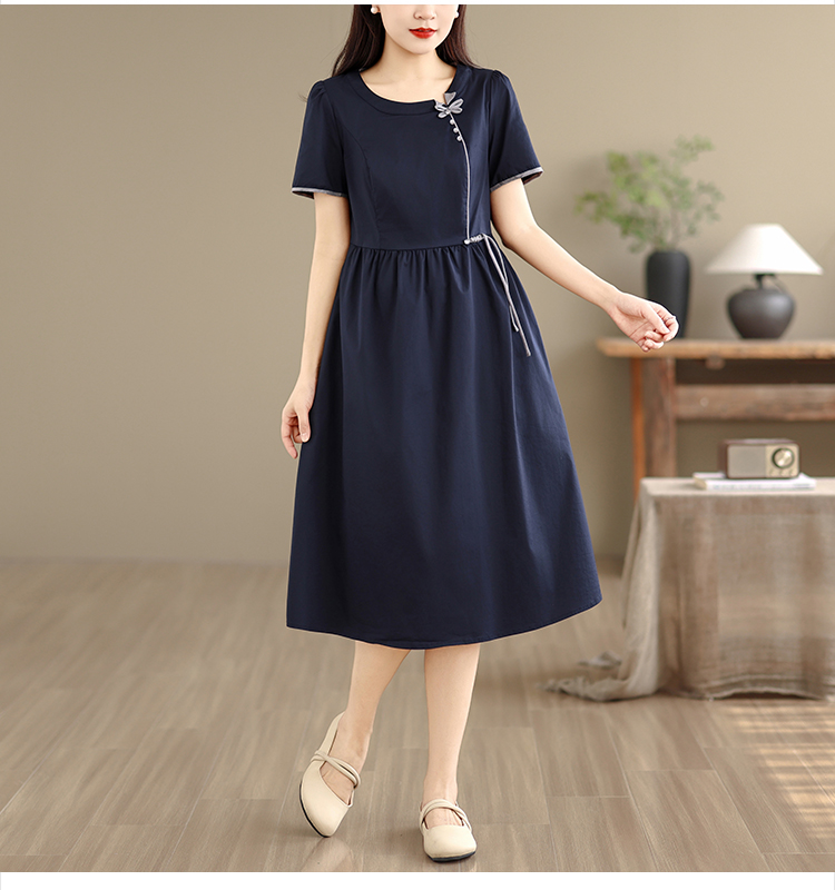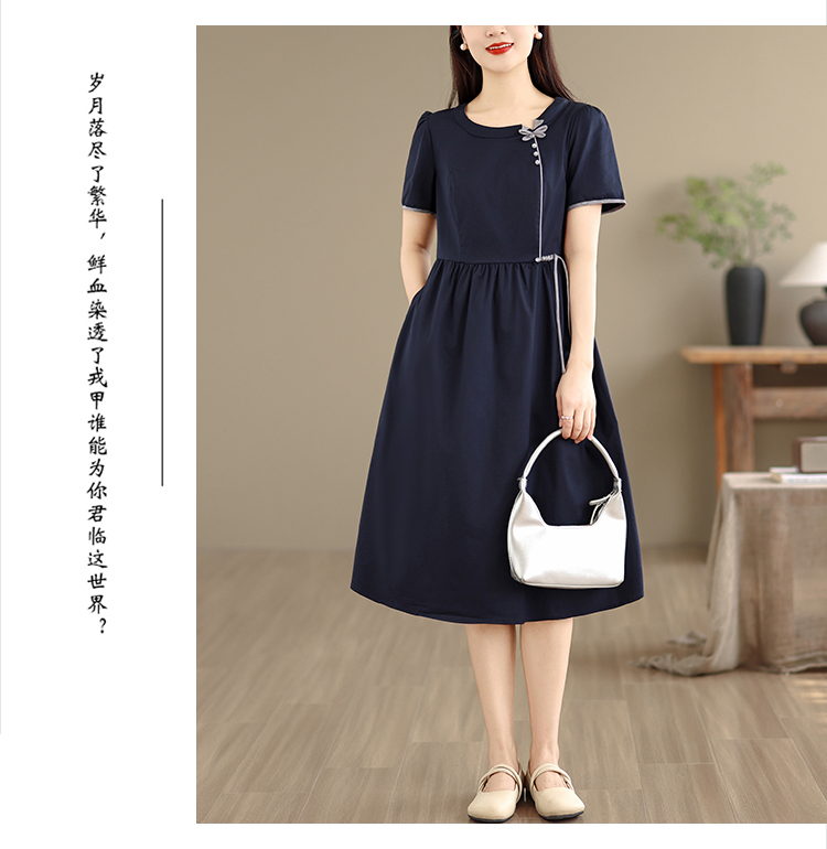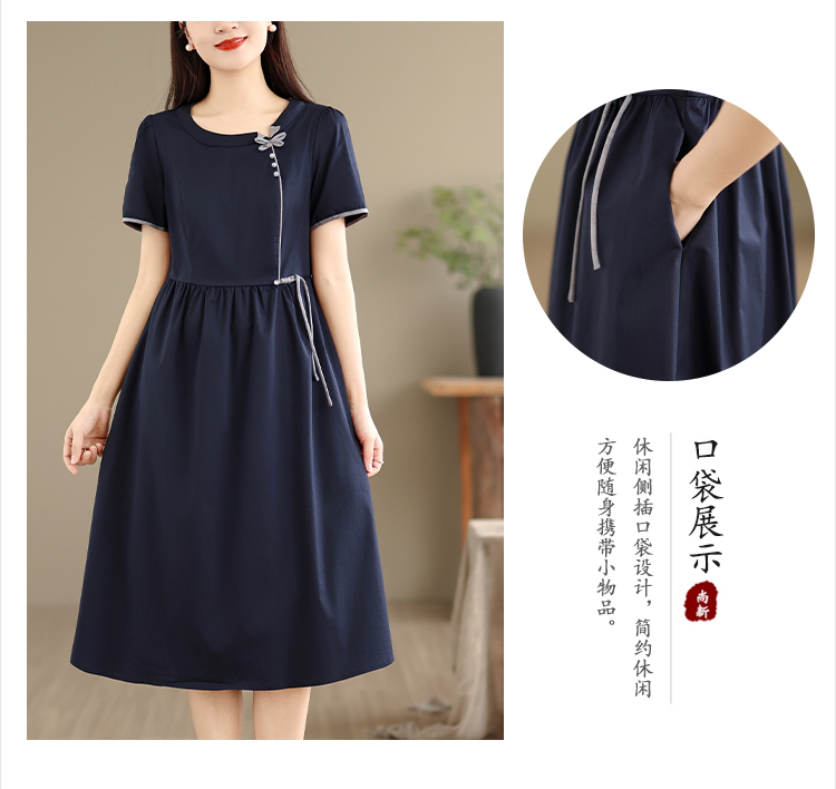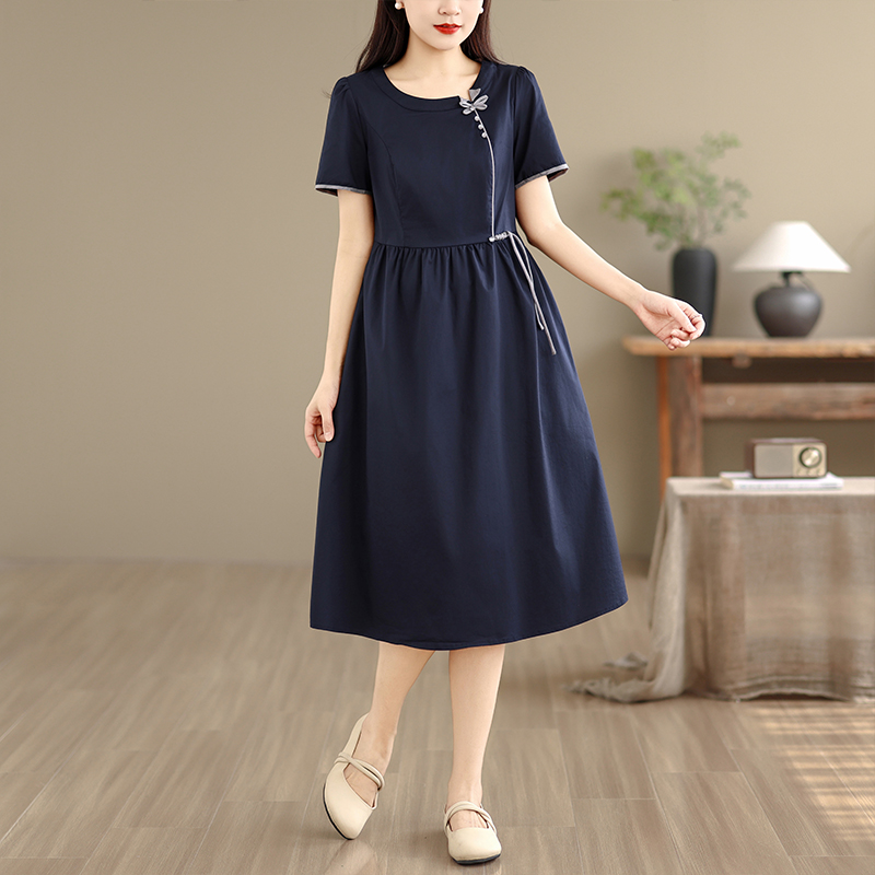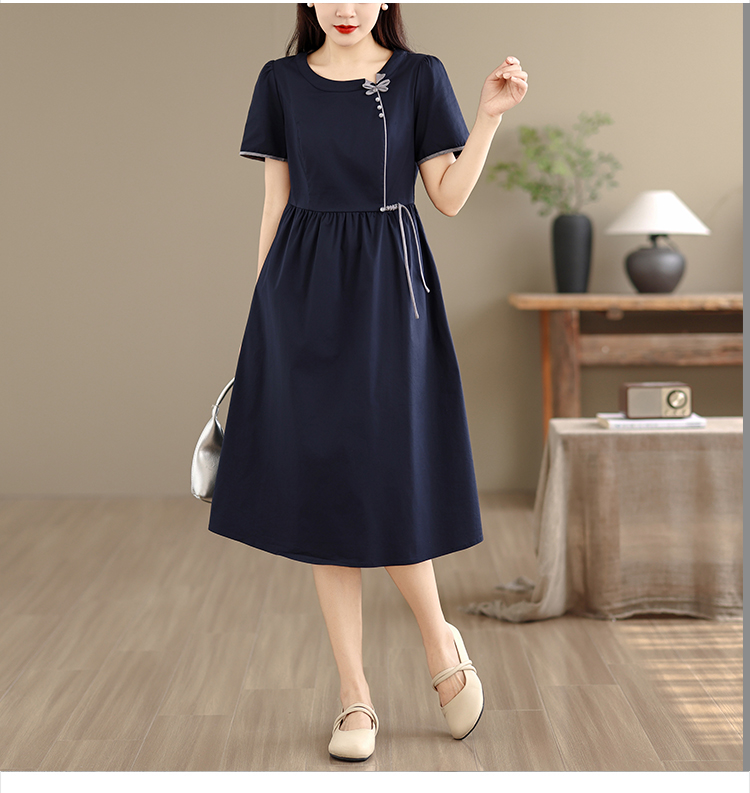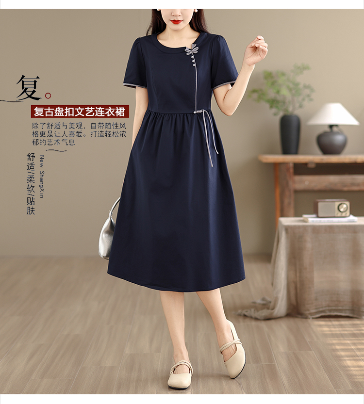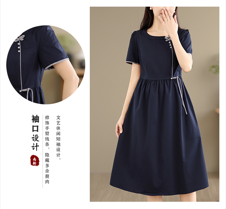 여름 요금 품격 슬림해 보이는 면 린넨 중국풍 개선 치파오 2026 여름 새로운 루즈핏 중간 길이 드레스