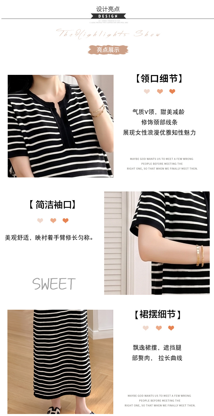 실사 출산 착용 2026 여름 드레스 새로운 스트라이프 빅 사이즈 루즈핏 연령 감소 슬림해 보이는 품격 중간 길이 드레스