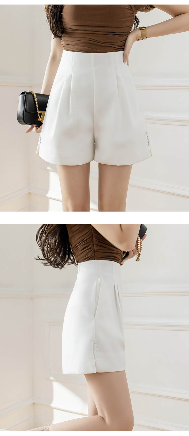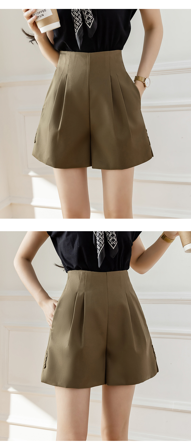 캐주얼 반바지 여성 2026 여름 새로운 하이웨이스트 한국 스타일 정장 반바지 한 마디 루즈핏 단추 와이드 레깅스 바지