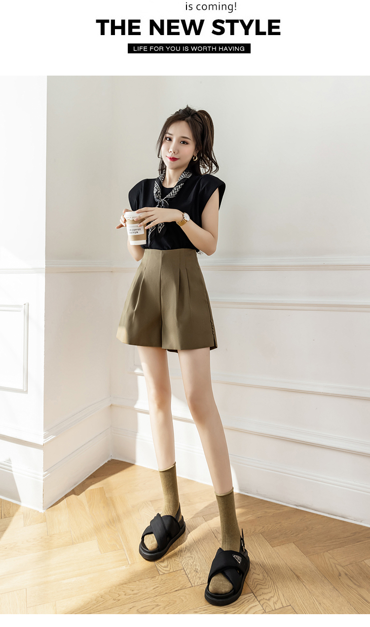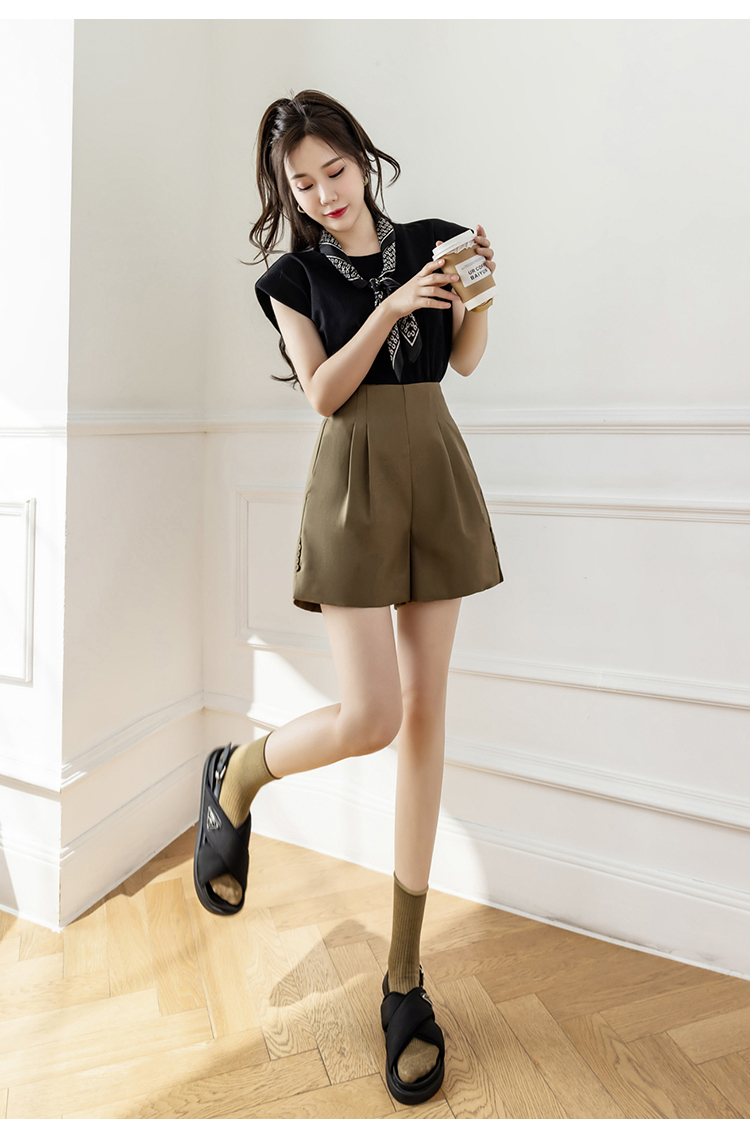 정장 반바지 여성 2026 여름 새로운 한 마디 치마바지 패치워크 반신 스커트 하이웨이스트 외국 가스 짧은 바지