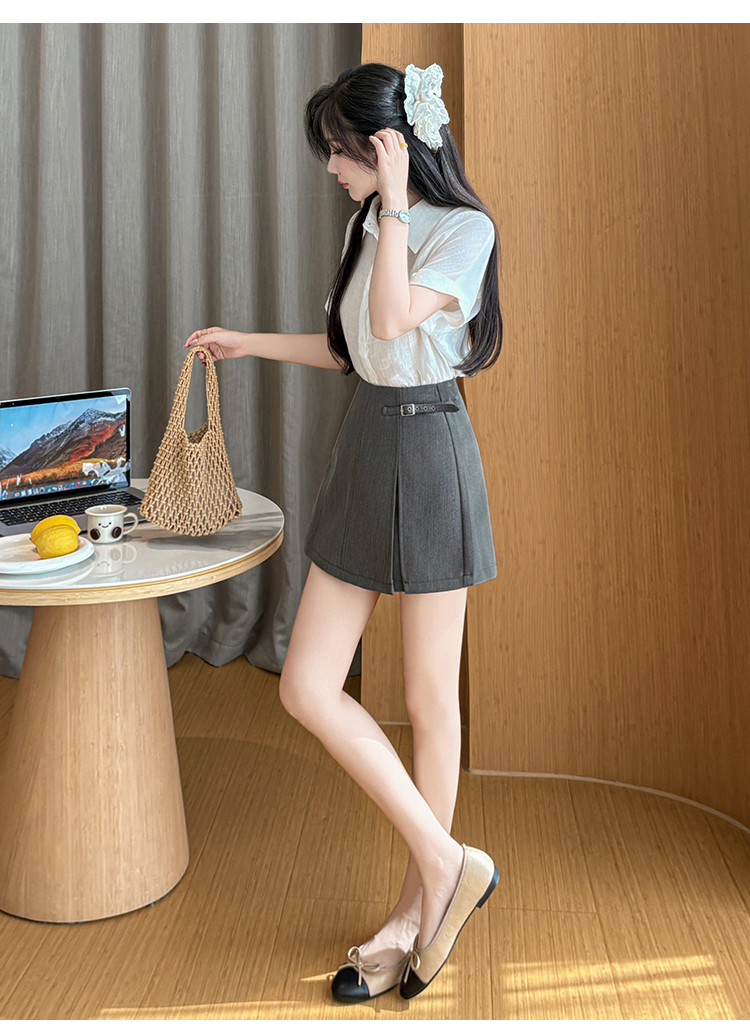 학원 스타일 회색 플리츠 스커트 미니 스커트 여성 2026 여름 새로운 정장 작은 키 하이웨이스트 슬림해 보이는 한 마디 반신 스커트