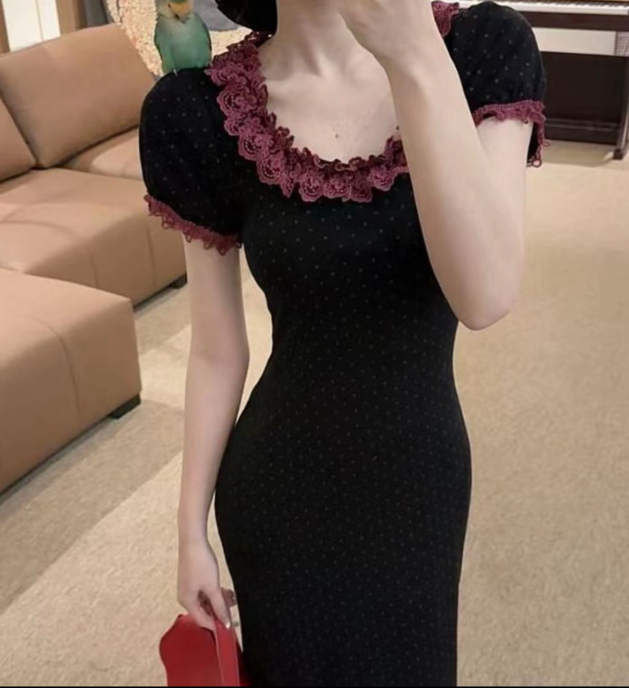 os&oneshow 여름 품격 슬림해 보이는 프랑스식 도트 무늬 디자인 센스 레이스 허리 수축 몸매 가꾸기 인어 꼬리 롱 스커트