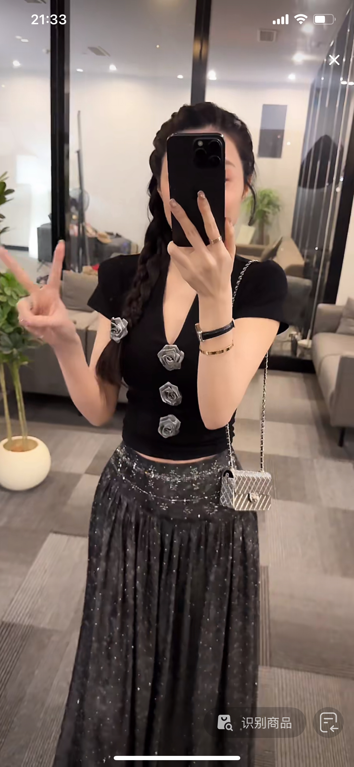 os&oneshow 무거운 작업 핫픽스 반신 스커트 휴가 바람 새로운 V넥 맨위 치마 레트로 롱 스커트 세트