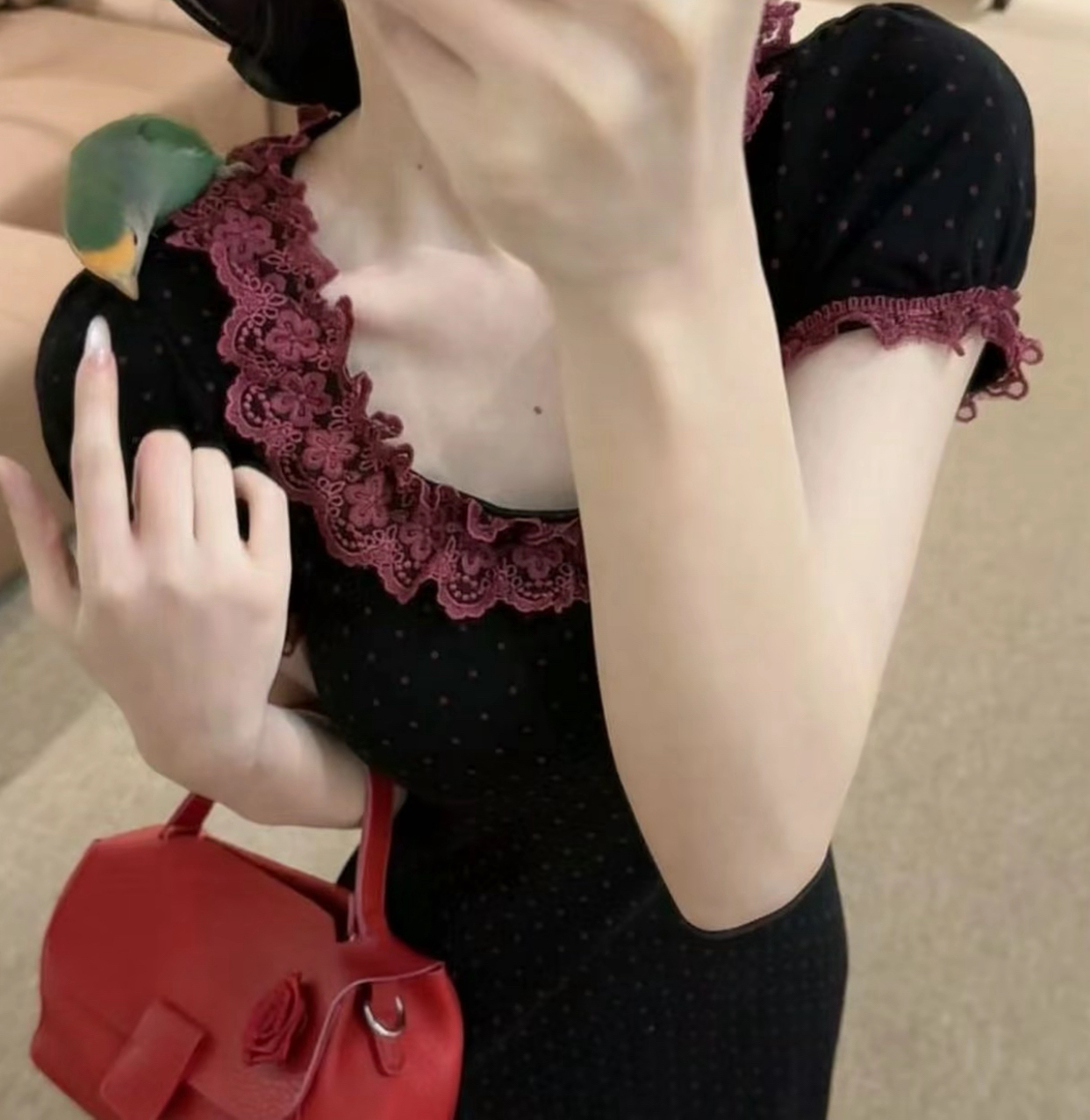 달콤한 포 멜로 도트 무늬 2026 새로운 빛 요리 한 바람 품격 슬림해 보이는 세트