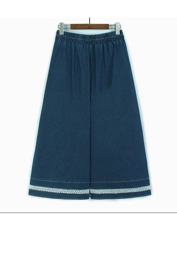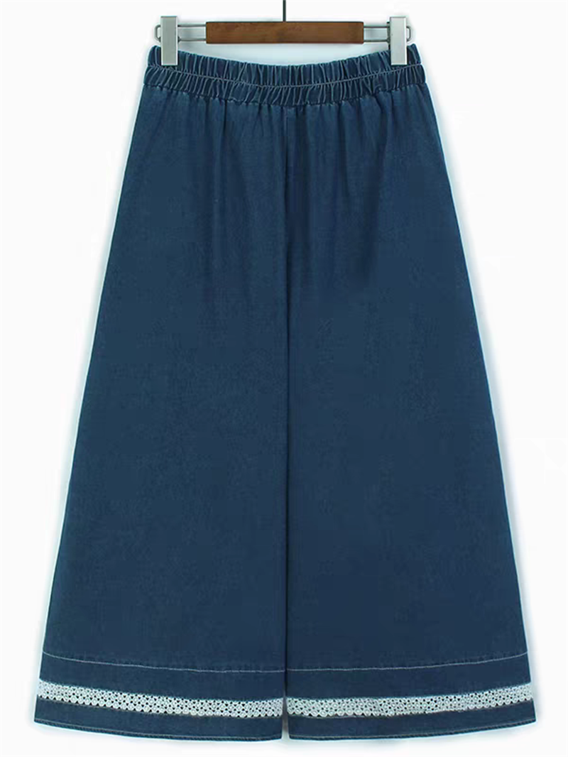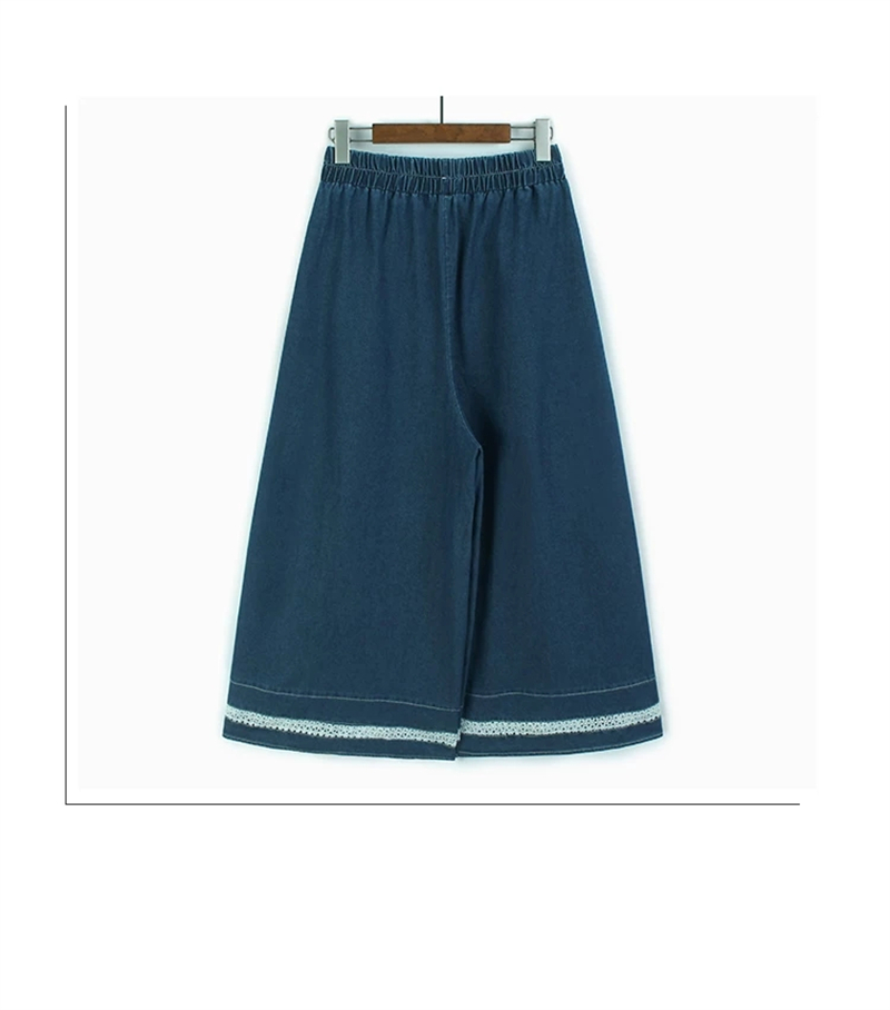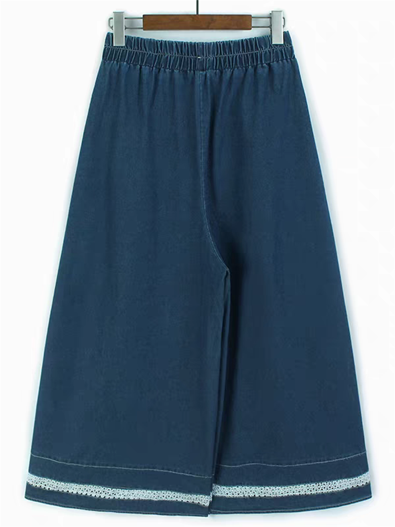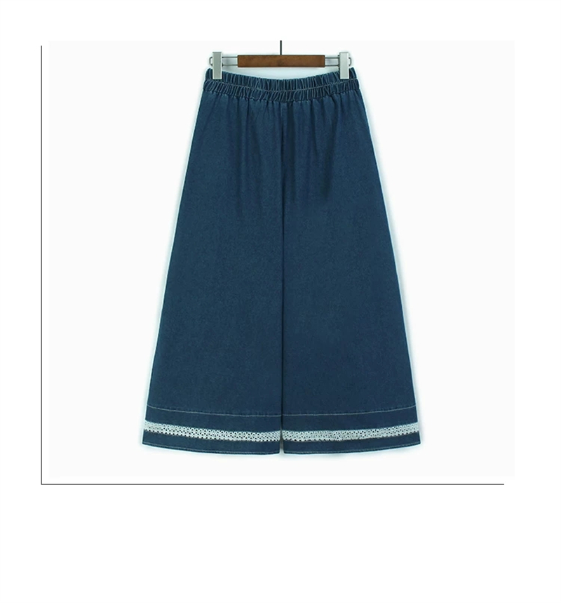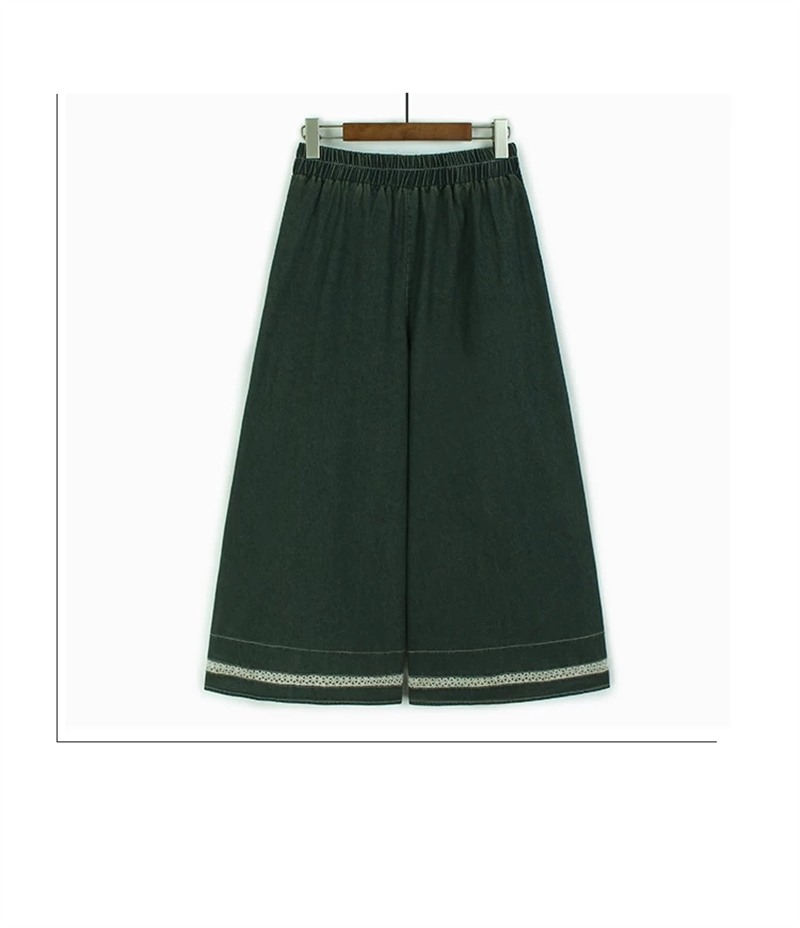 홀로우 아웃 레이스 조각 데님 와이드 레깅스 바지 얇은 스타일 봄 여름 새로운 루즈핏 숨기기 고기 허리밴드 캐주얼 9부 바지
