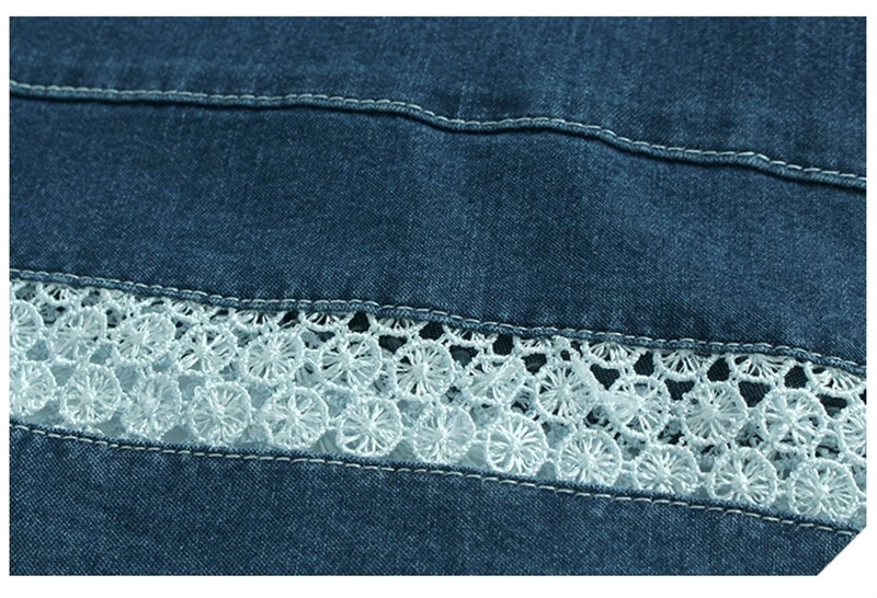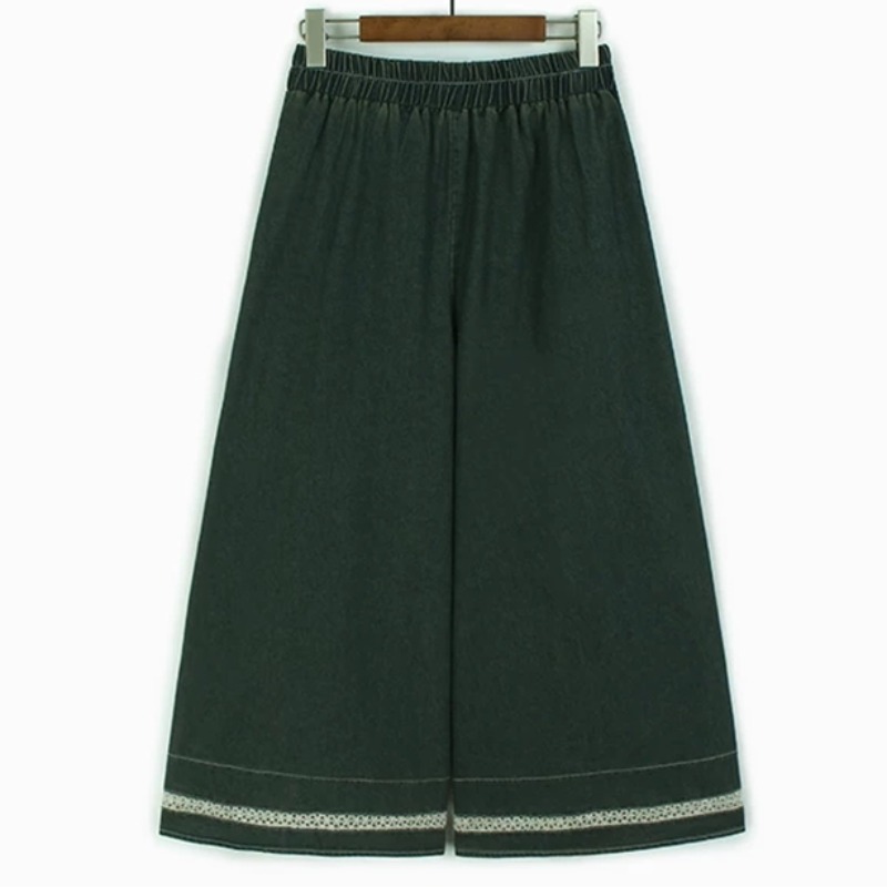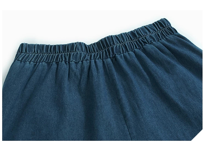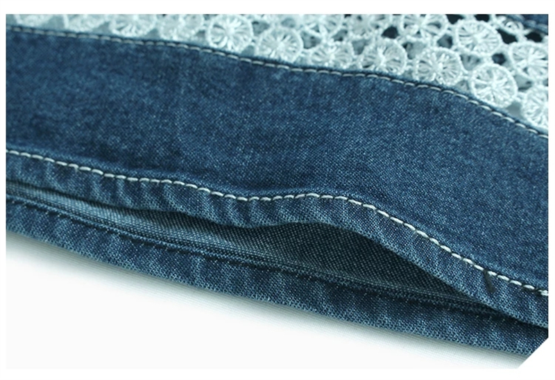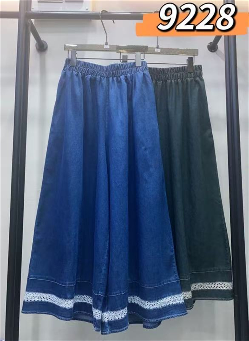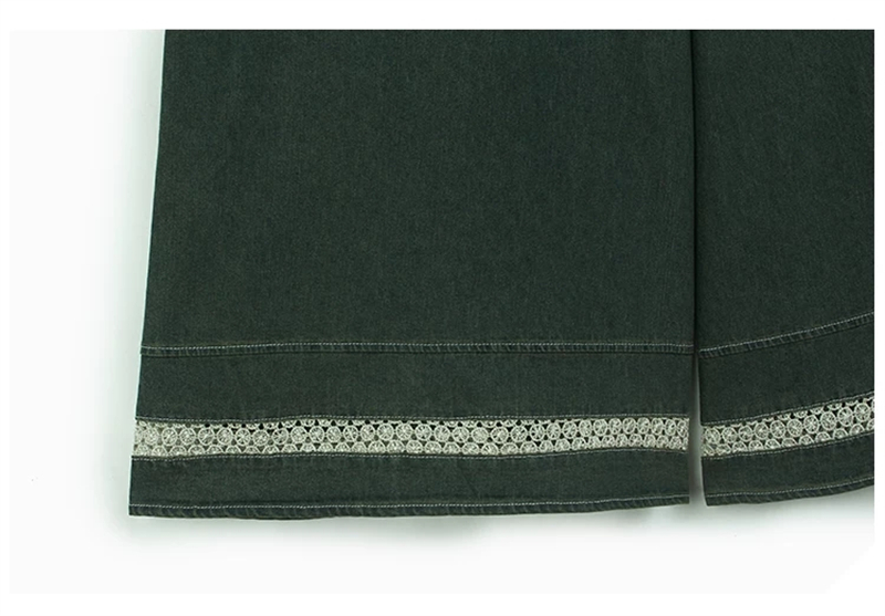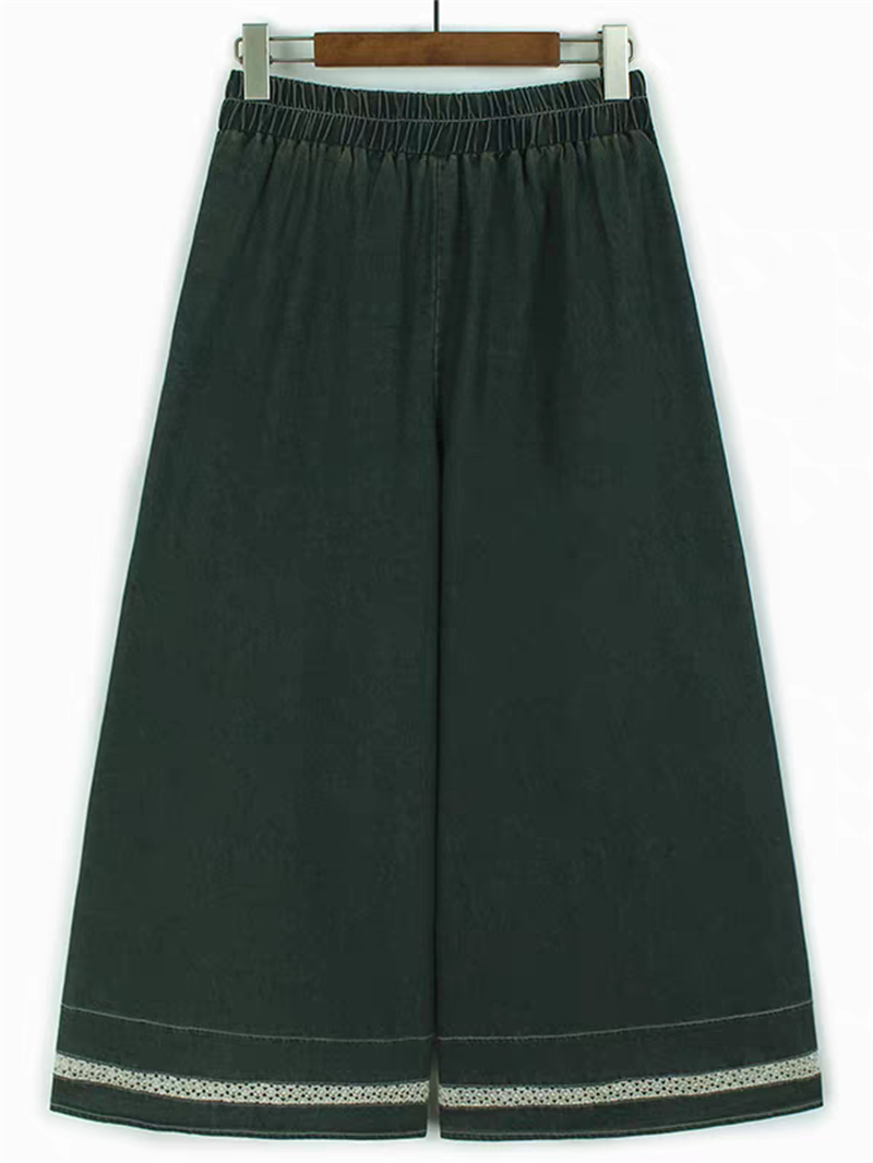 홀로우 아웃 레이스 조각 데님 와이드 레깅스 바지 얇은 스타일 봄 여름 새로운 루즈핏 숨기기 고기 허리밴드 캐주얼 9부 바지
