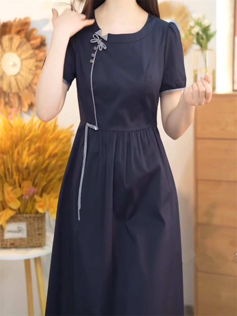여름 요금 품격 슬림해 보이는 면 린넨 중국풍 개선 치파오 2026 여름 새로운 루즈핏 중간 길이 드레스