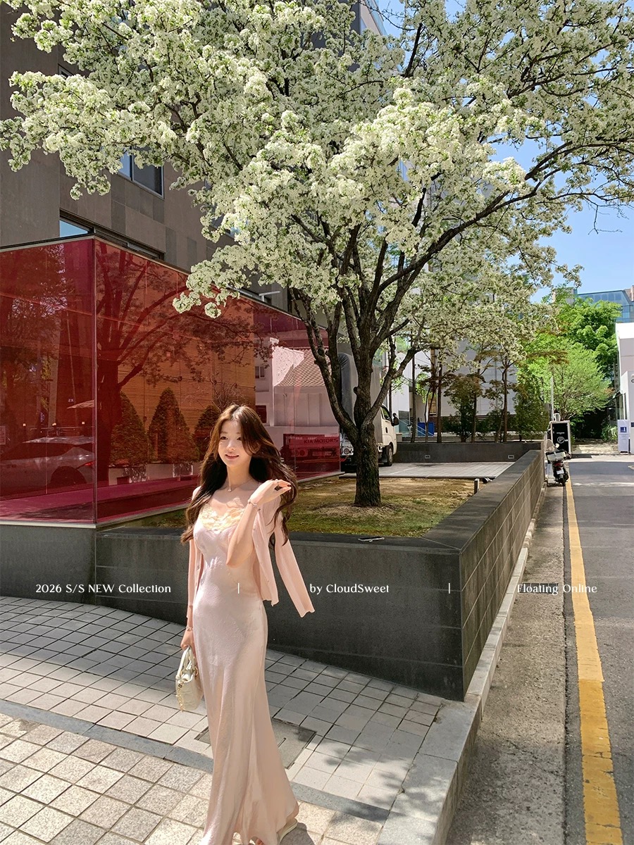 cloudsweet04 25 20 00 달콤한 차 천 새싹 법 새싹 새틴 슬립 반 스커트 도트 무늬 드레스