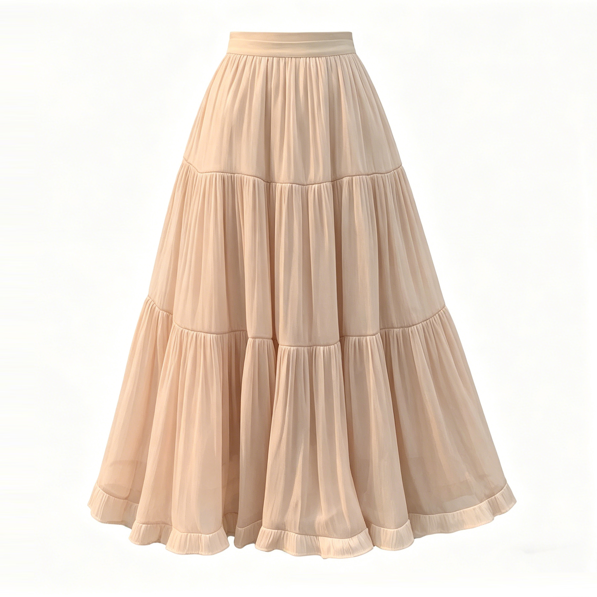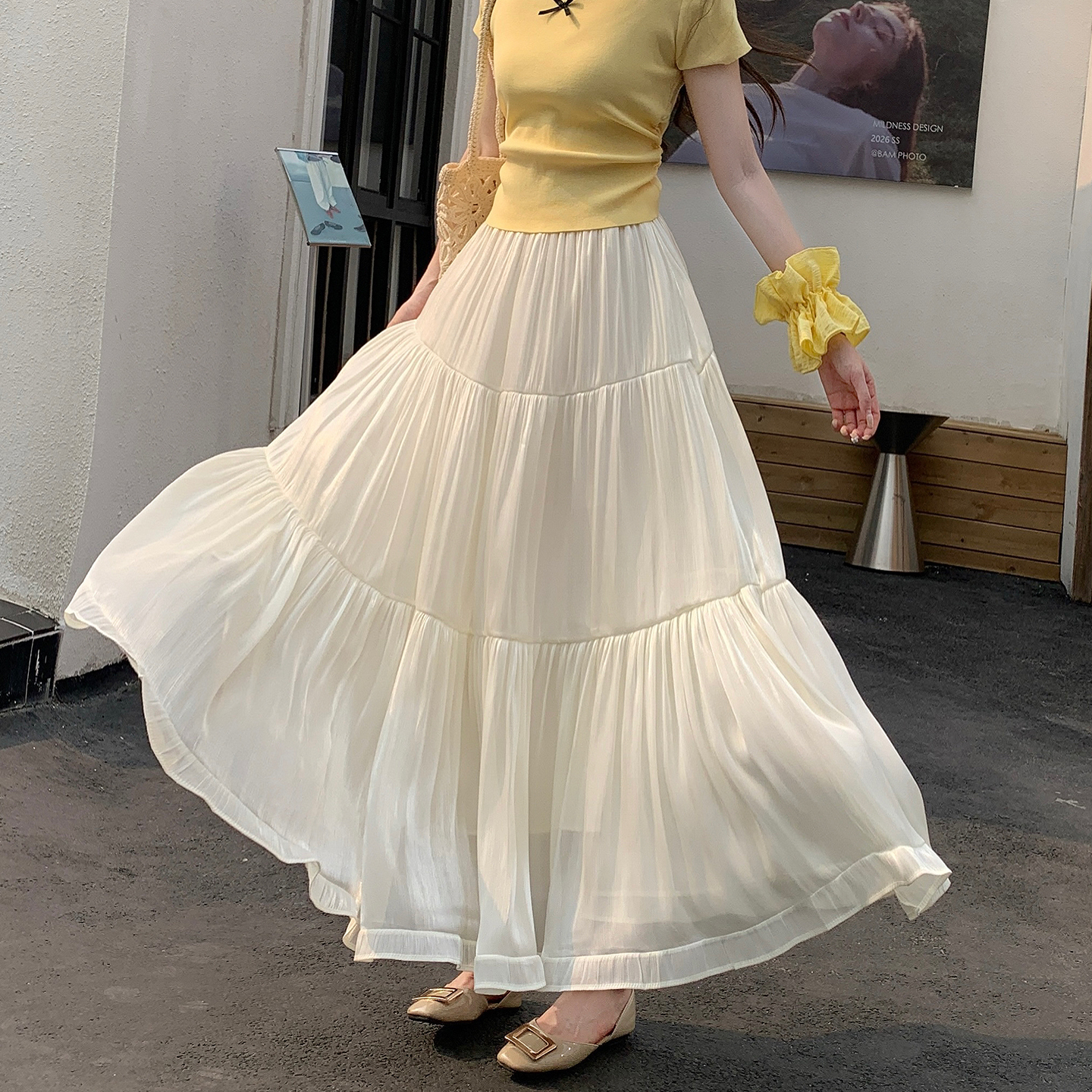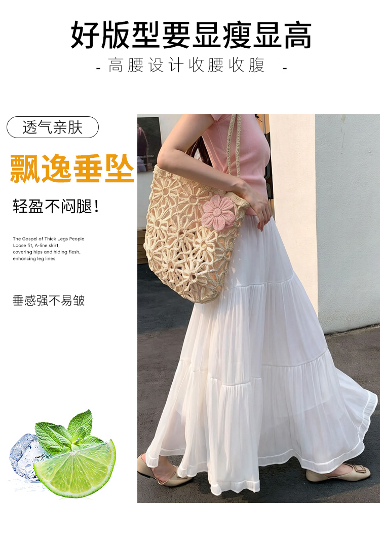 아름다운 자이언트 잘 생긴 깃발 실 반신 스커트 여성 2026 봄 여름 우아한 큰 진자 요정 거즈 스커트 도루 센스 한 마디 롱 스커트