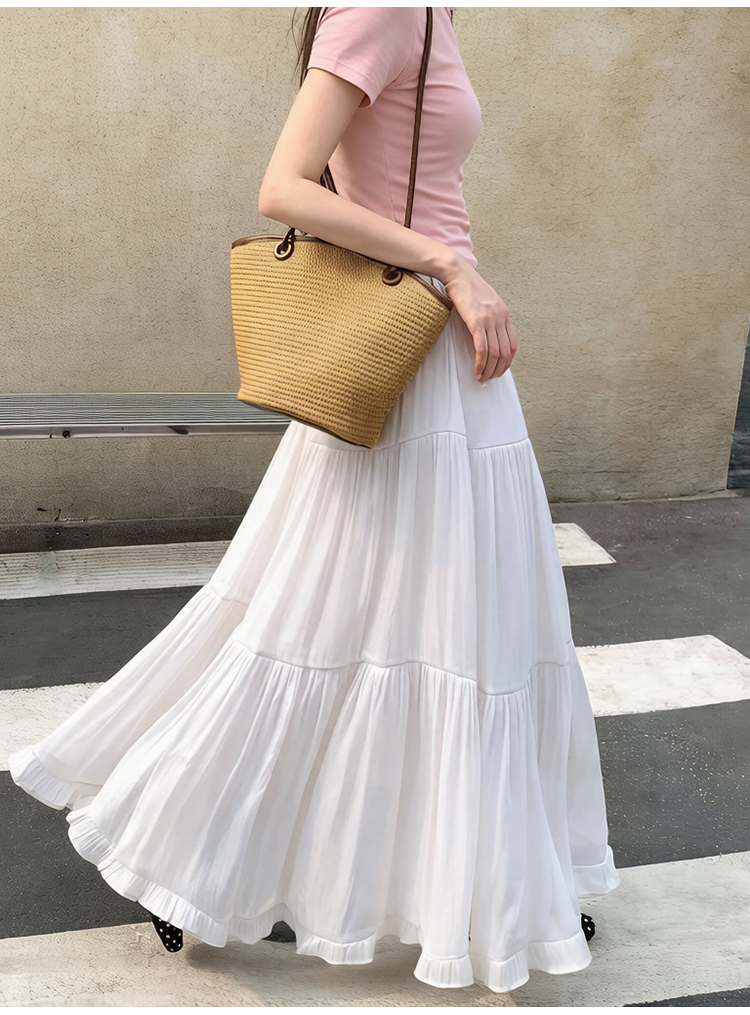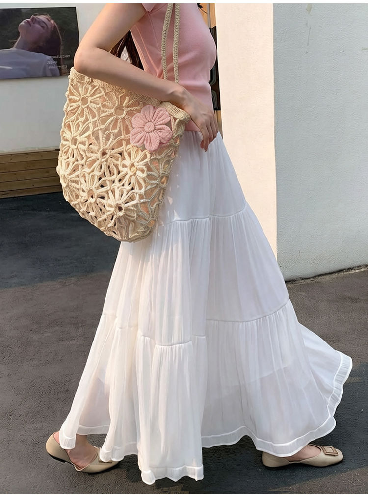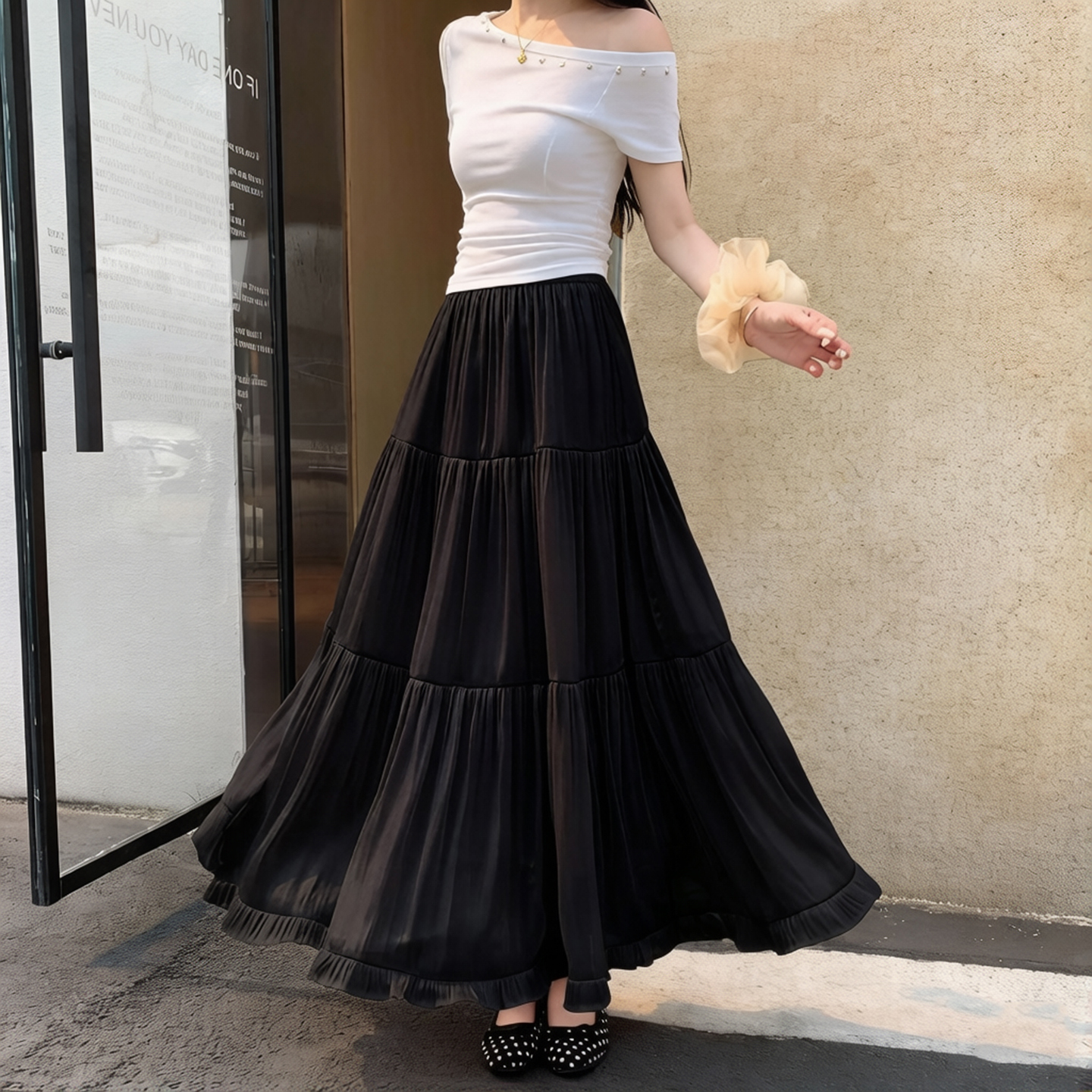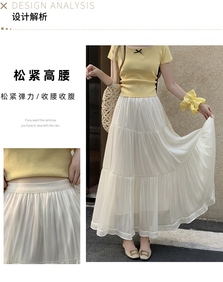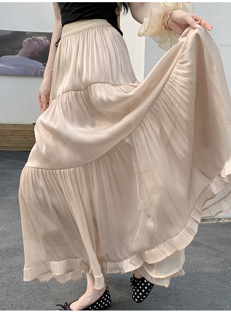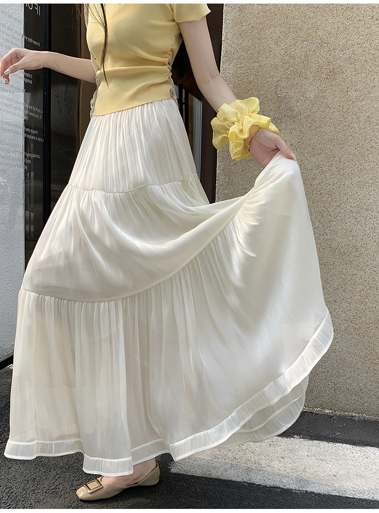 한 부서 부드러운 바람 깃발 원사 높은 허리 치마 2025 여름 새로운 슬림 와일드 한 마디 큰 진자 롱 스커트 여성