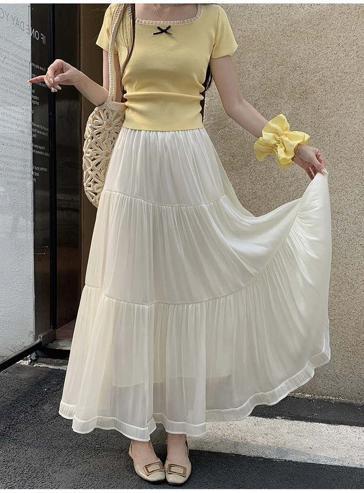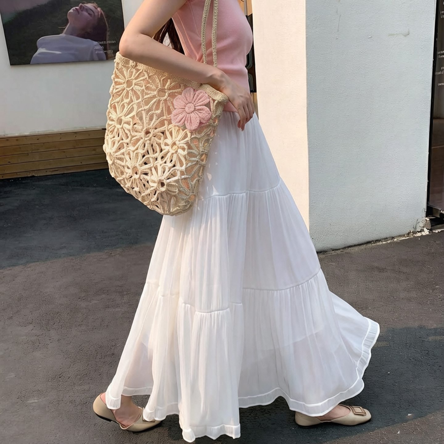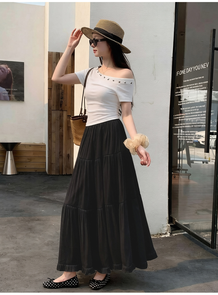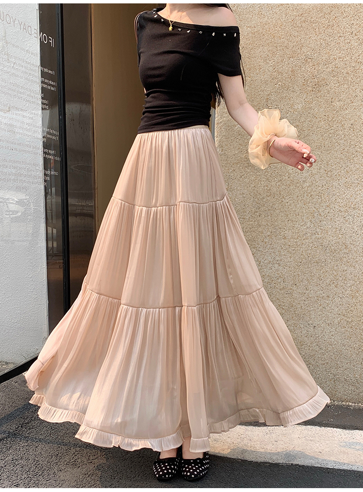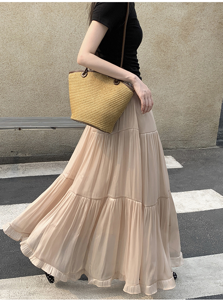 한 부서 부드러운 바람 깃발 원사 높은 허리 치마 2025 여름 새로운 슬림 와일드 한 마디 큰 진자 롱 스커트 여성