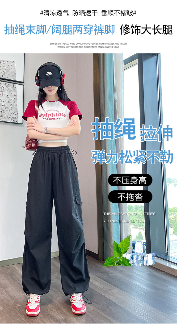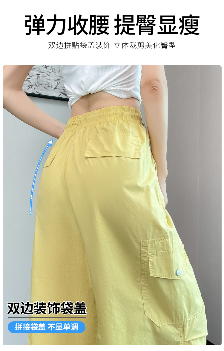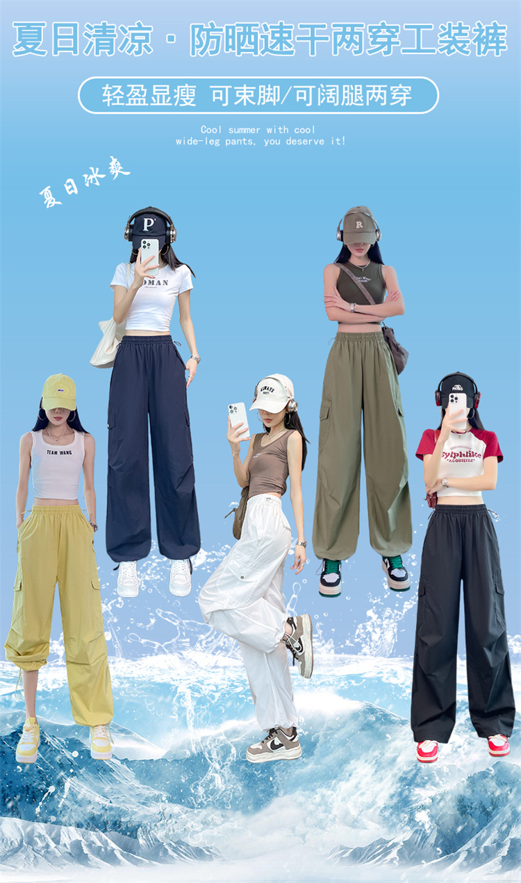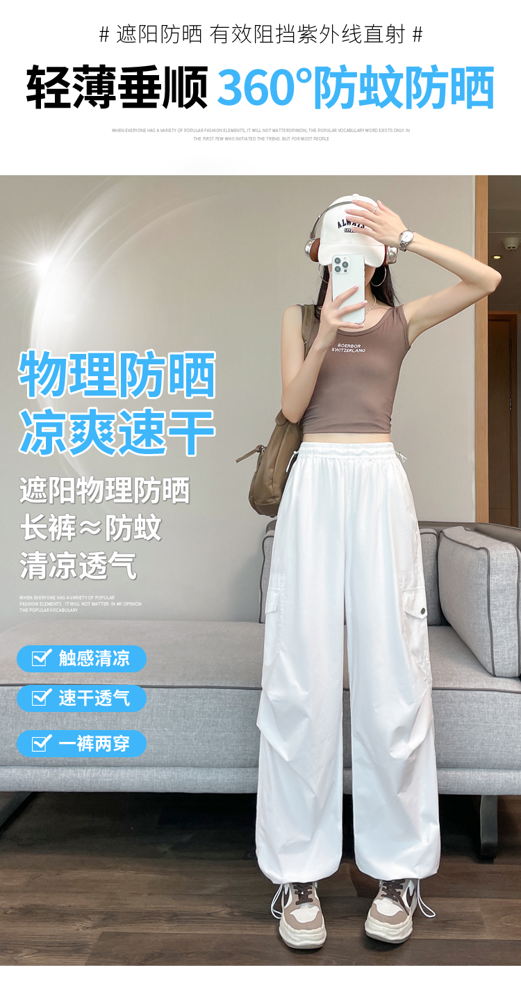 실사 2026 여름 새로운 얇은 스타일 속도 건조한 둘 착용 워크웨어 팬츠 하이웨이스트 자외선 차단 얼음 실크 캐주얼 바지 운동 바지 여성