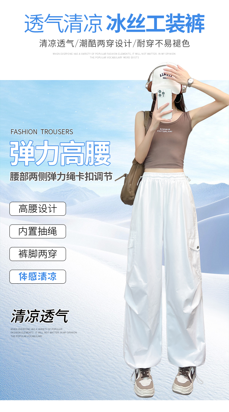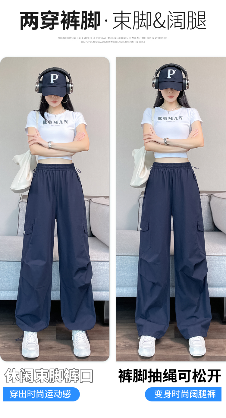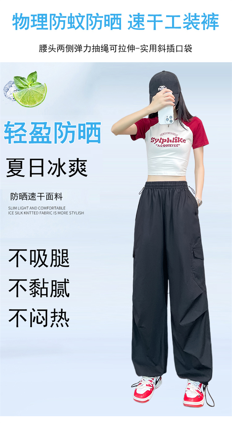 실사 2026 여름 새로운 얇은 스타일 속도 건조한 둘 착용 워크웨어 팬츠 하이웨이스트 자외선 차단 얼음 실크 캐주얼 바지 운동 바지 여성