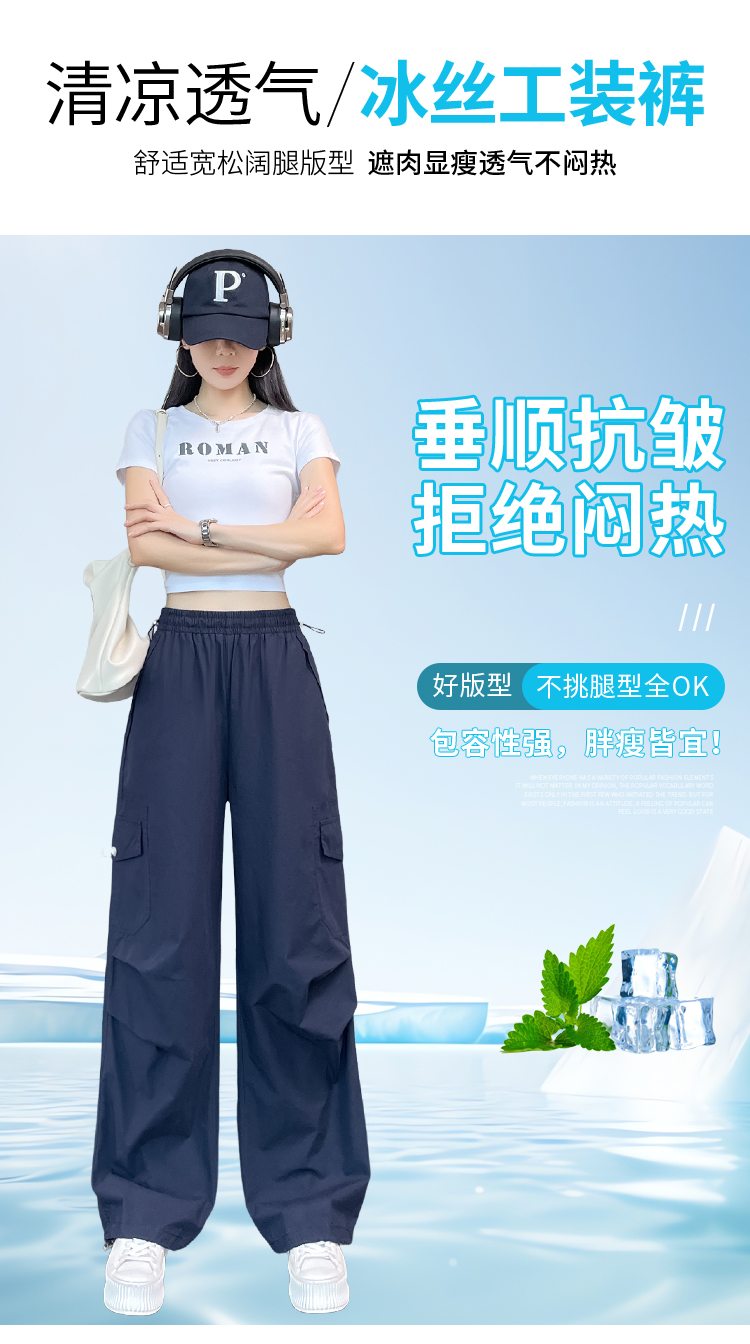 실사 2026 여름 새로운 얇은 스타일 유리 실 얼음 실크 치마바지 여성 하이웨이스트 자외선 차단 바지 바닥 청소 바지 여성