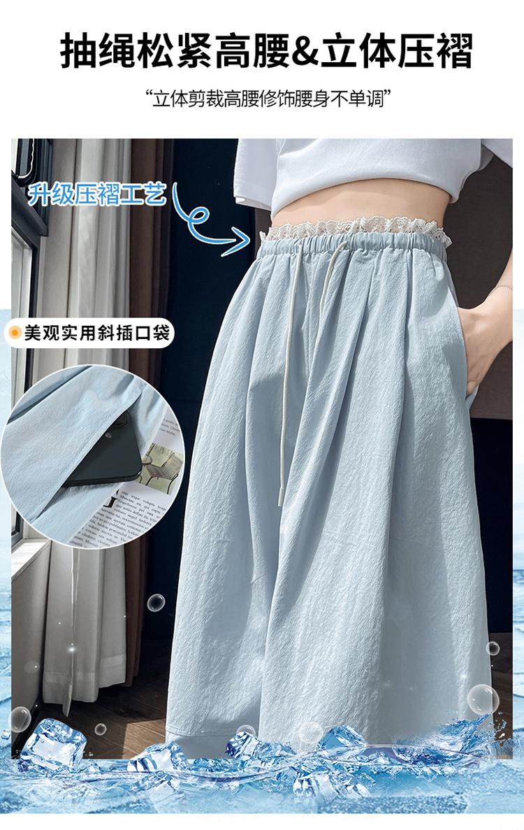실사 2026 여름 새로운 얇은 스타일 유리 실 얼음 실크 치마바지 여성 하이웨이스트 요정 가스 펄럭 이는 자외선 차단 바지