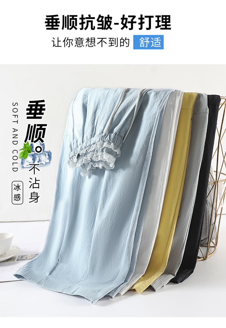 실사 2026 여름 새로운 주간 실크 아마 모통이 칼 바지 하이웨이스트 캐주얼 바지 얼음 실크 넓은 다리 바닥 청소 바지 여성