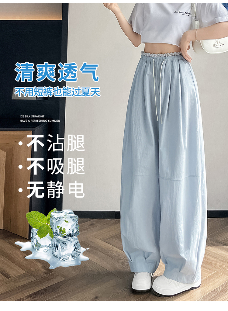 실사 2026 여름 새로운 얇은 스타일 유리 실 얼음 실크 치마바지 여성 하이웨이스트 자외선 차단 바지 바닥 청소 바지 여성