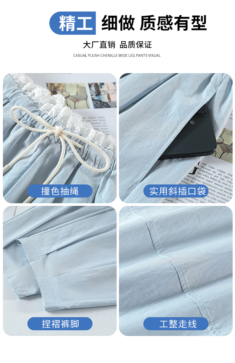 실사 2026 여름 새로운 면 린넨 와이드 레그 팬츠 얼음 실크 하이웨이스트 얇은 스타일 레이스 야마모토 바지 여성