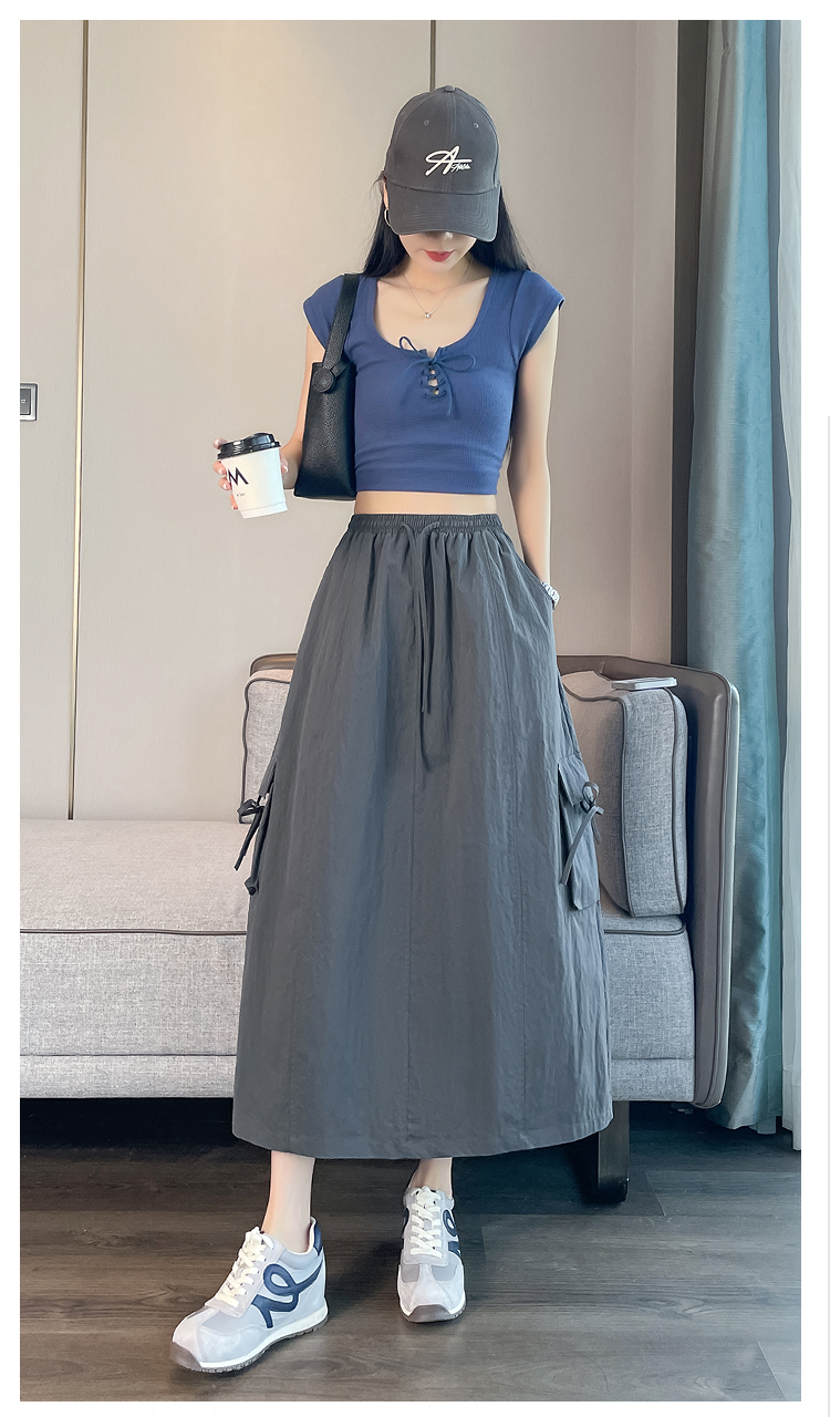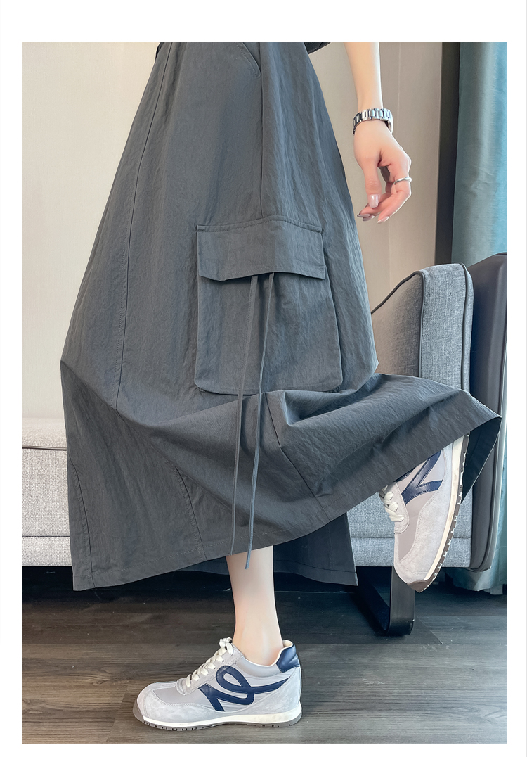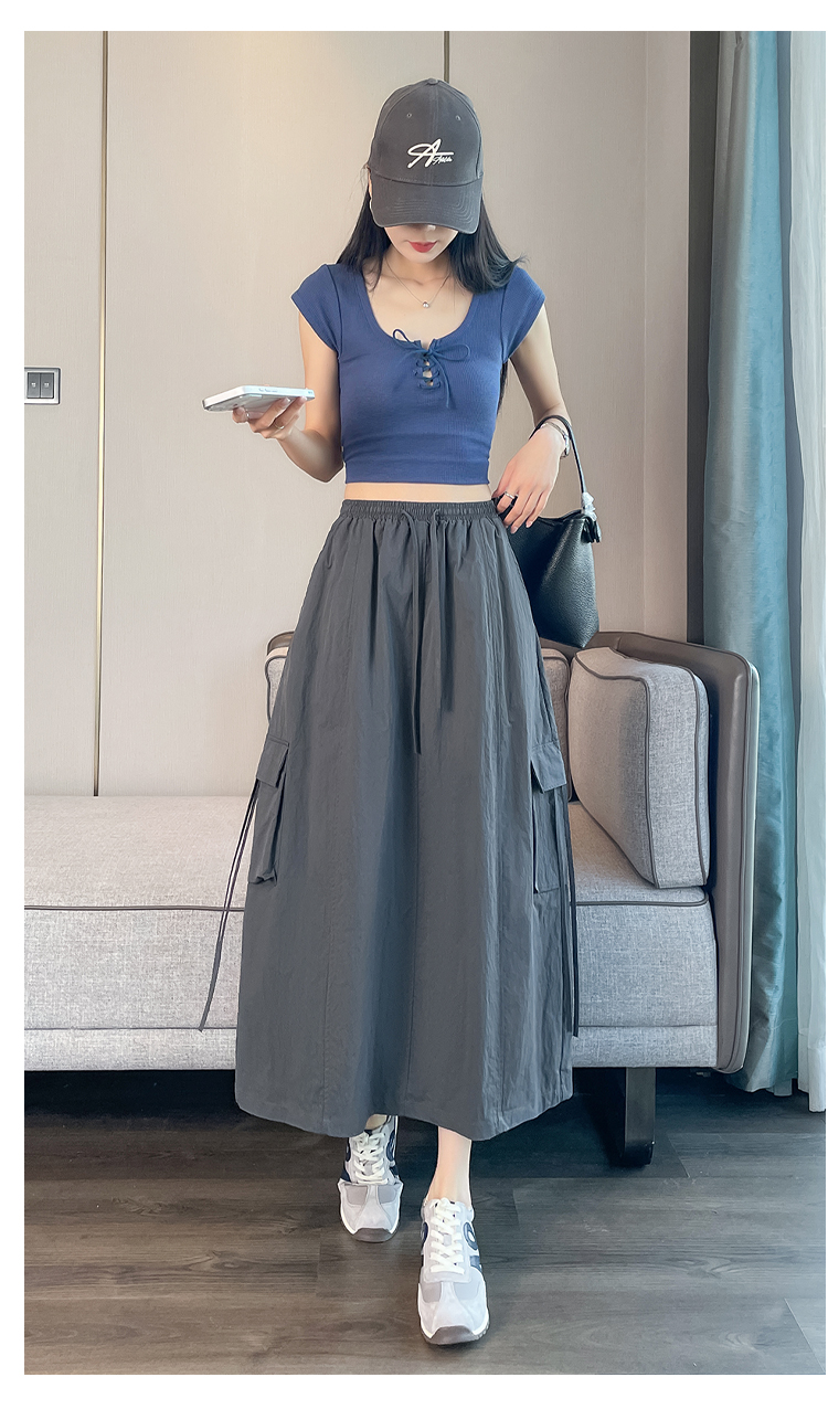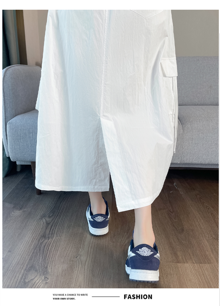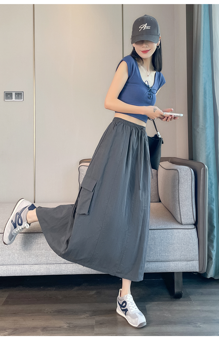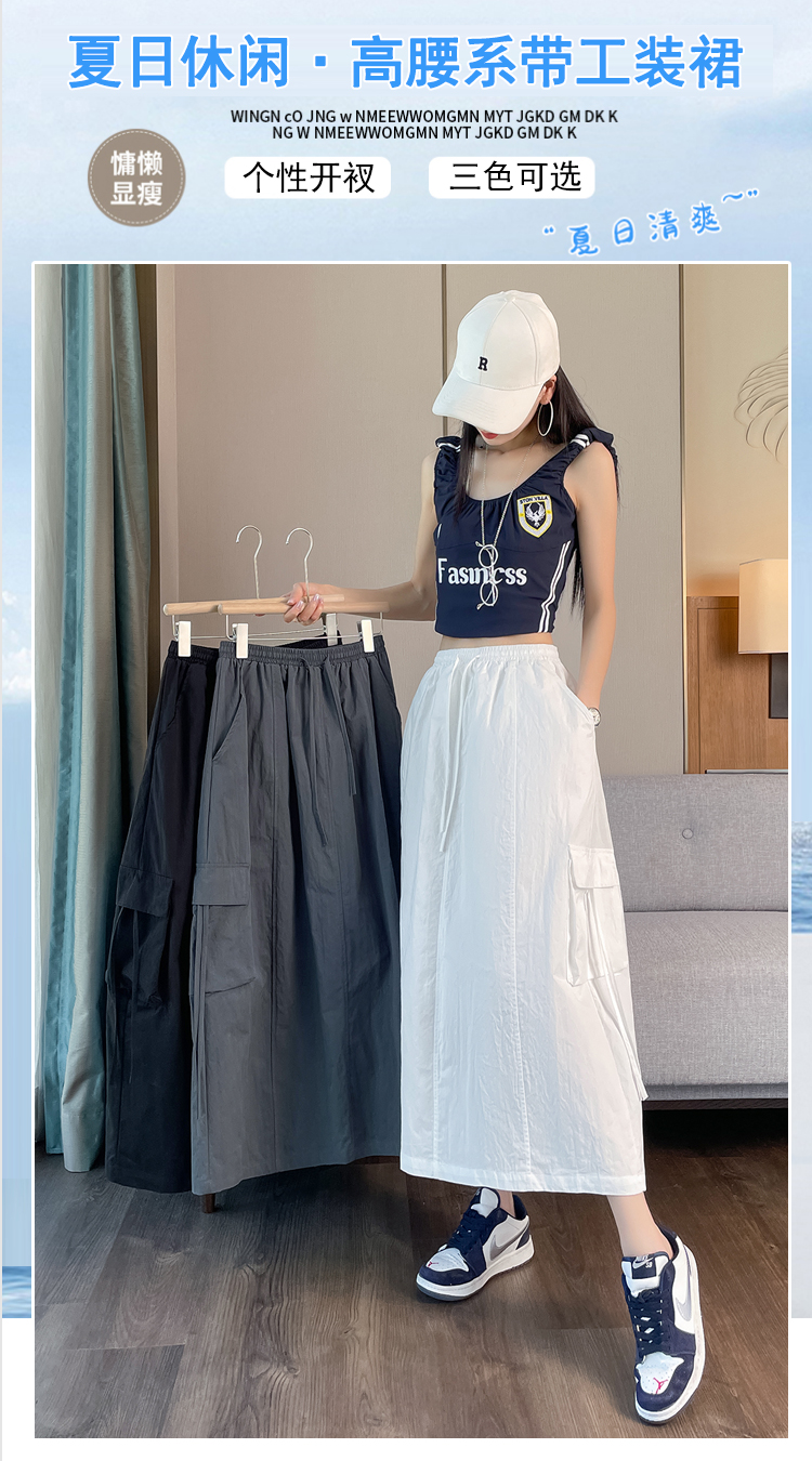 실사 여름 새로운 펌프 로프 워크웨어 주머니 캐주얼 반신 스커트 하이웨이스트 슬림해 보이는 트임 표지 십자가 다용도 A라인 스커트