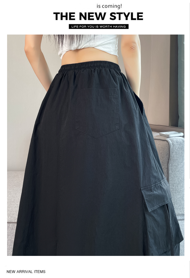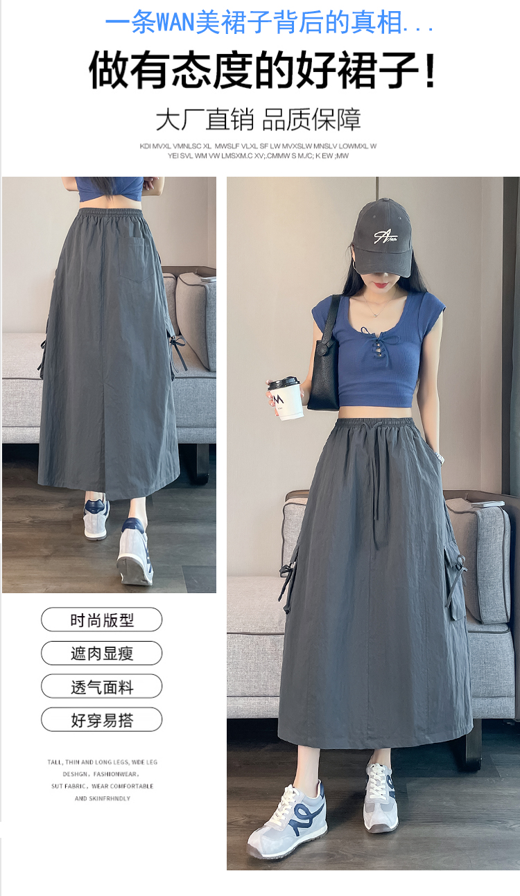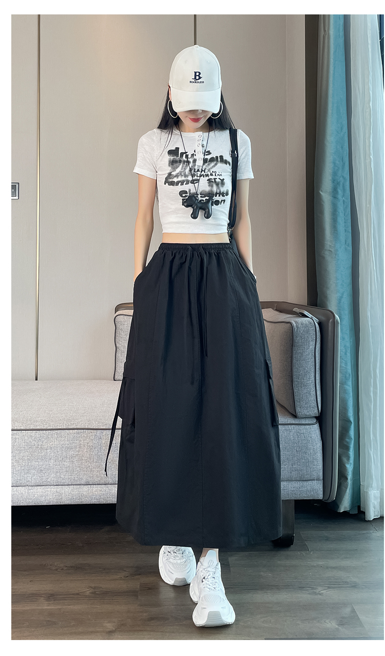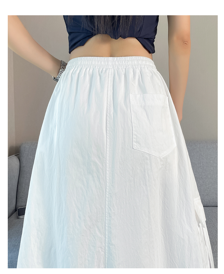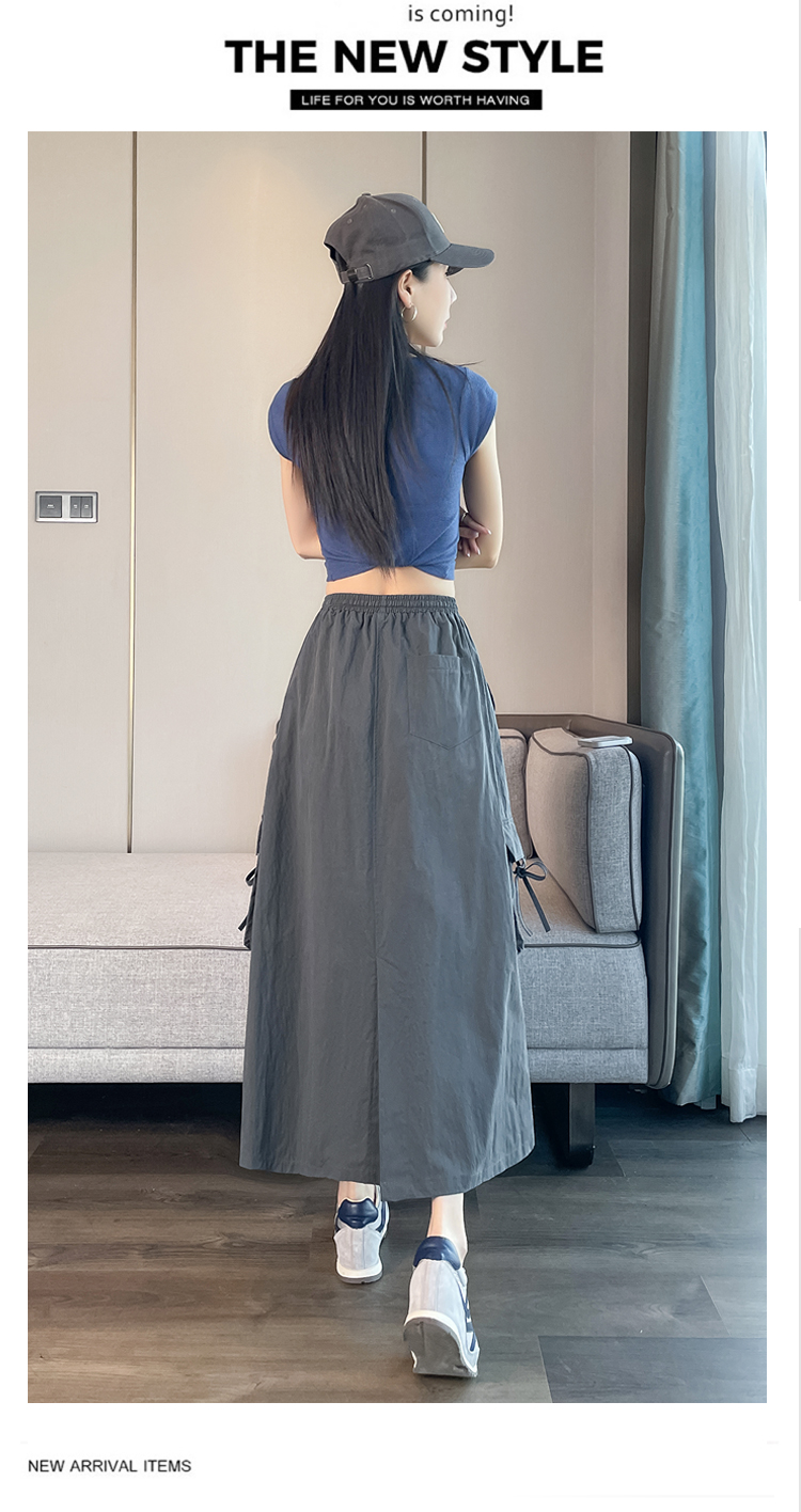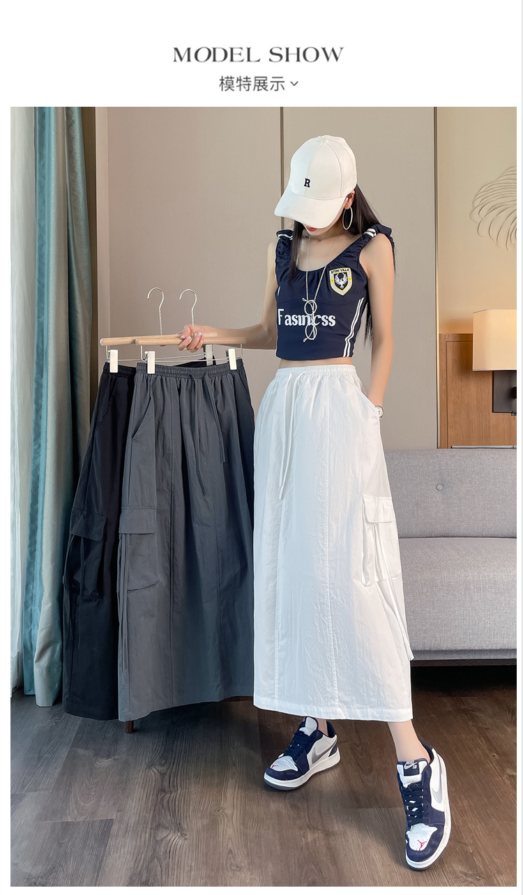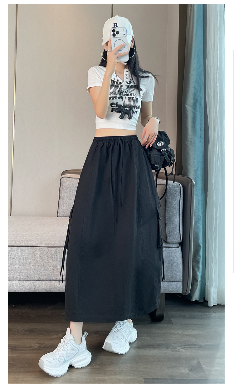 실사 여름 새로운 펌프 로프 워크웨어 주머니 캐주얼 반신 스커트 하이웨이스트 슬림해 보이는 트임 표지 십자가 다용도 A라인 스커트