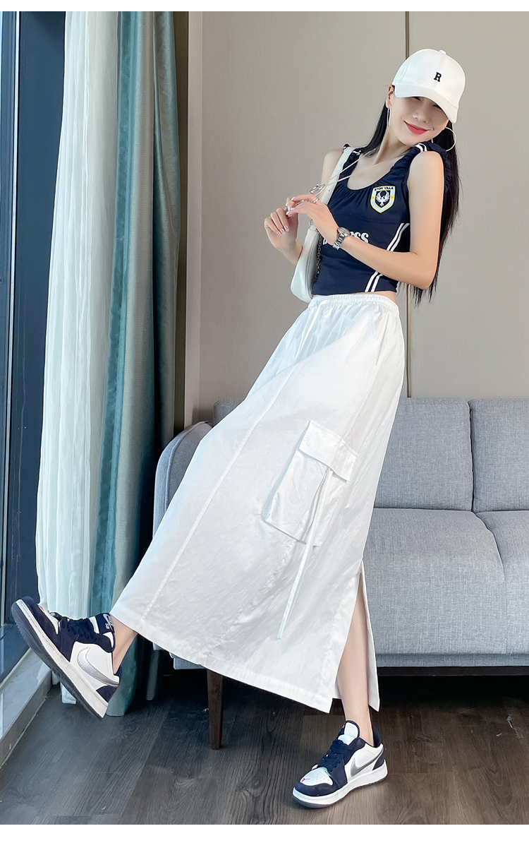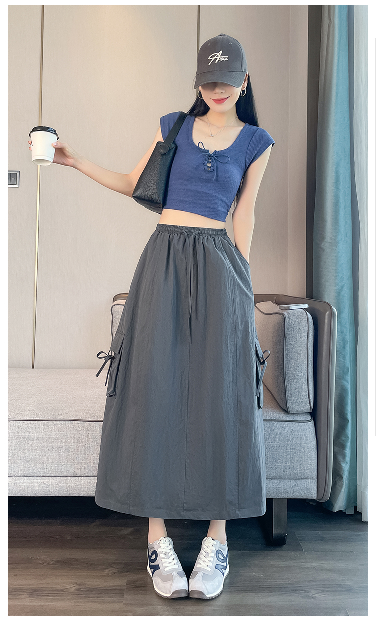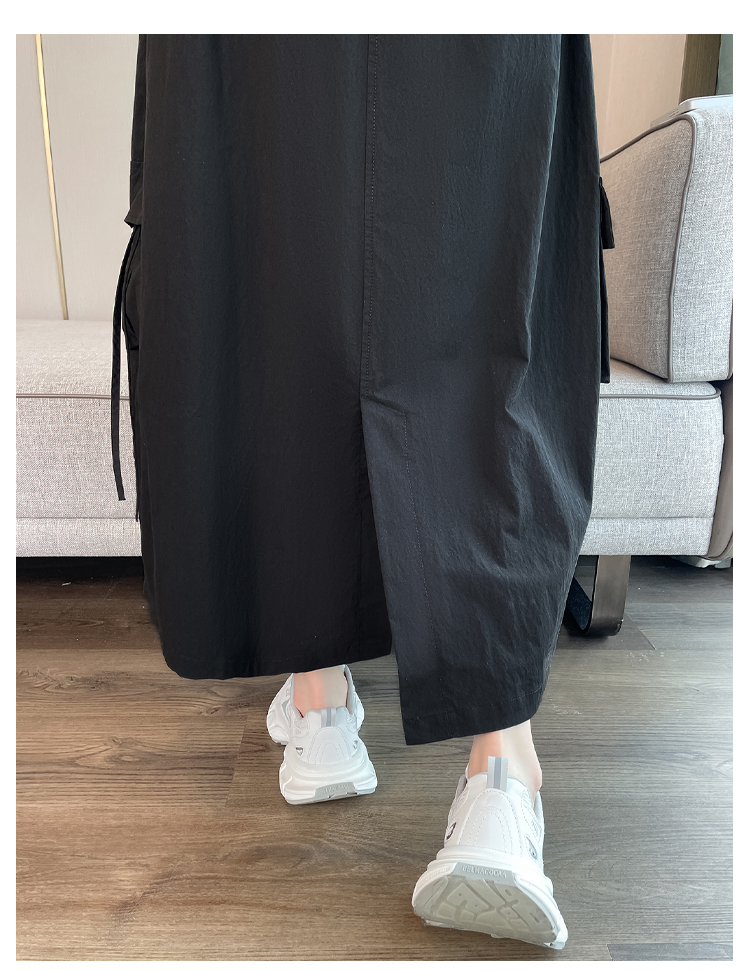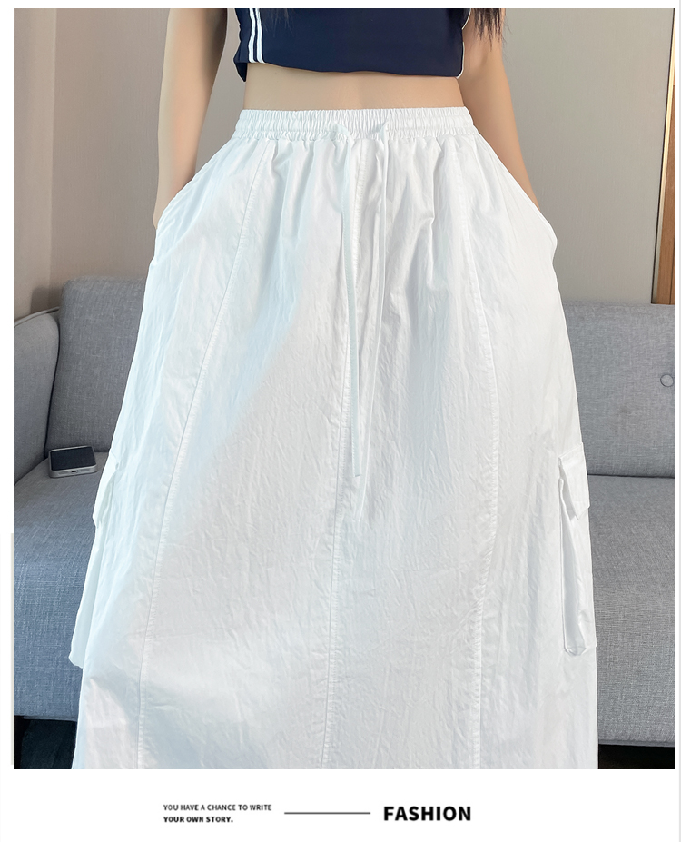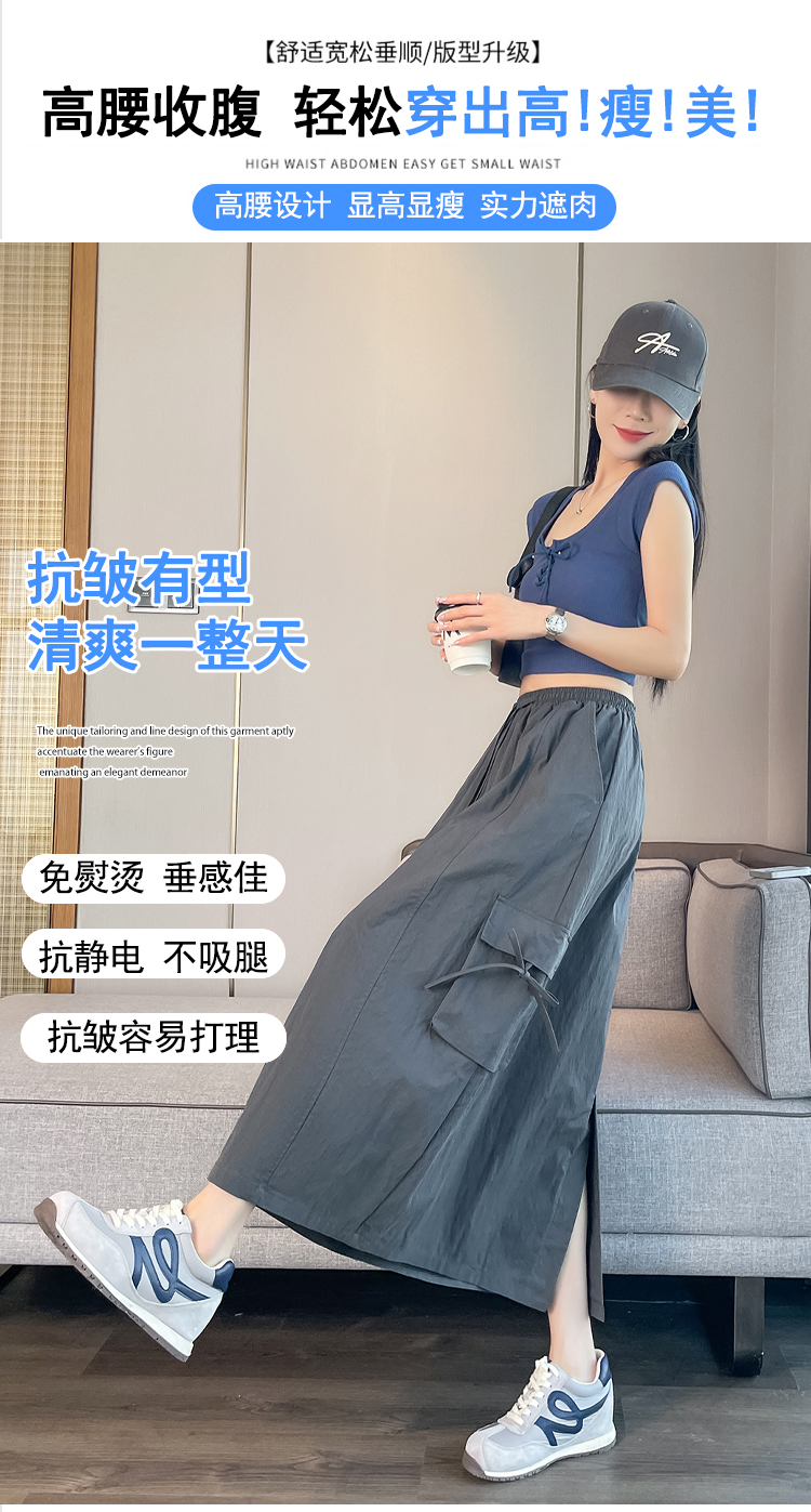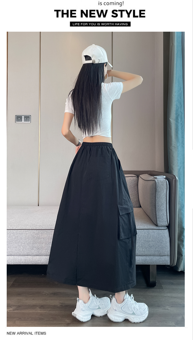 실사 여름 새로운 펌프 로프 워크웨어 주머니 캐주얼 반신 스커트 하이웨이스트 슬림해 보이는 트임 표지 십자가 다용도 A라인 스커트