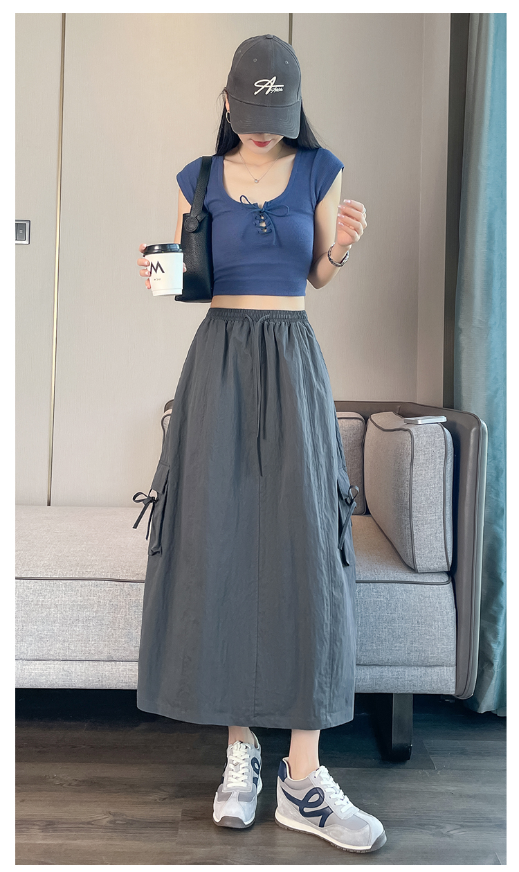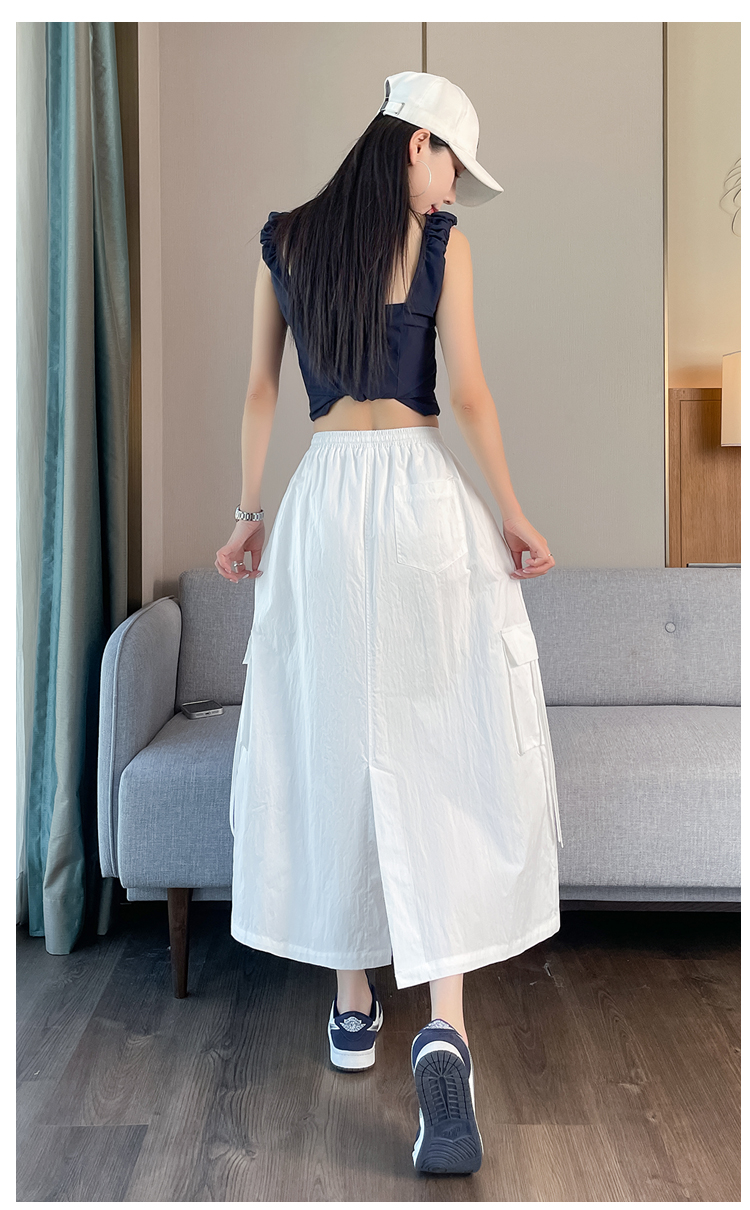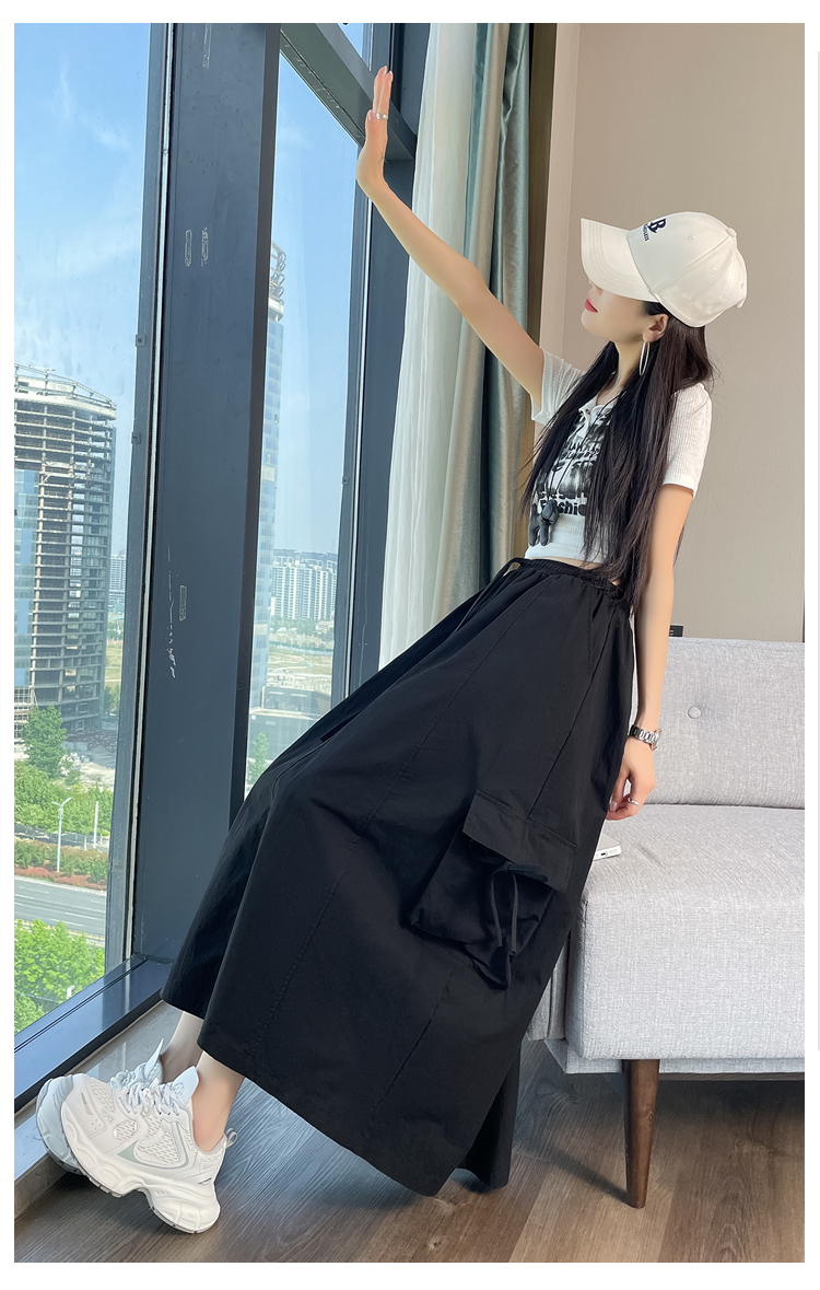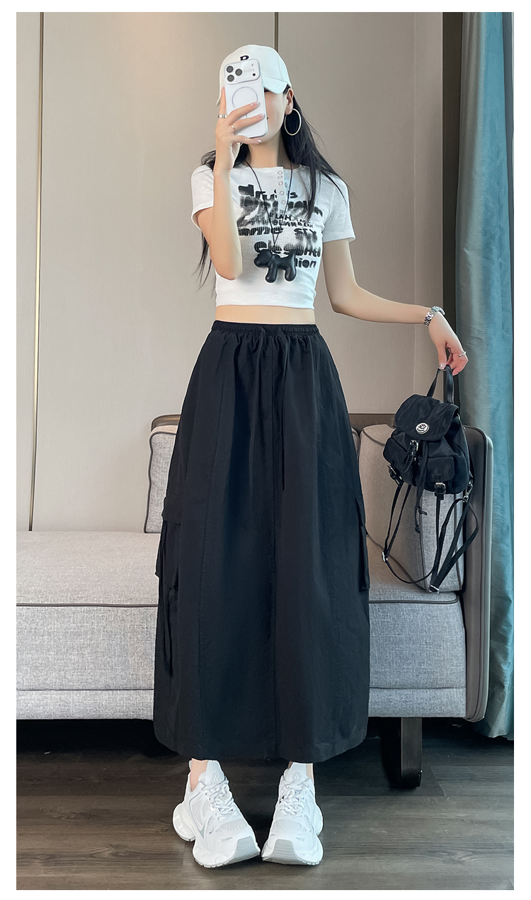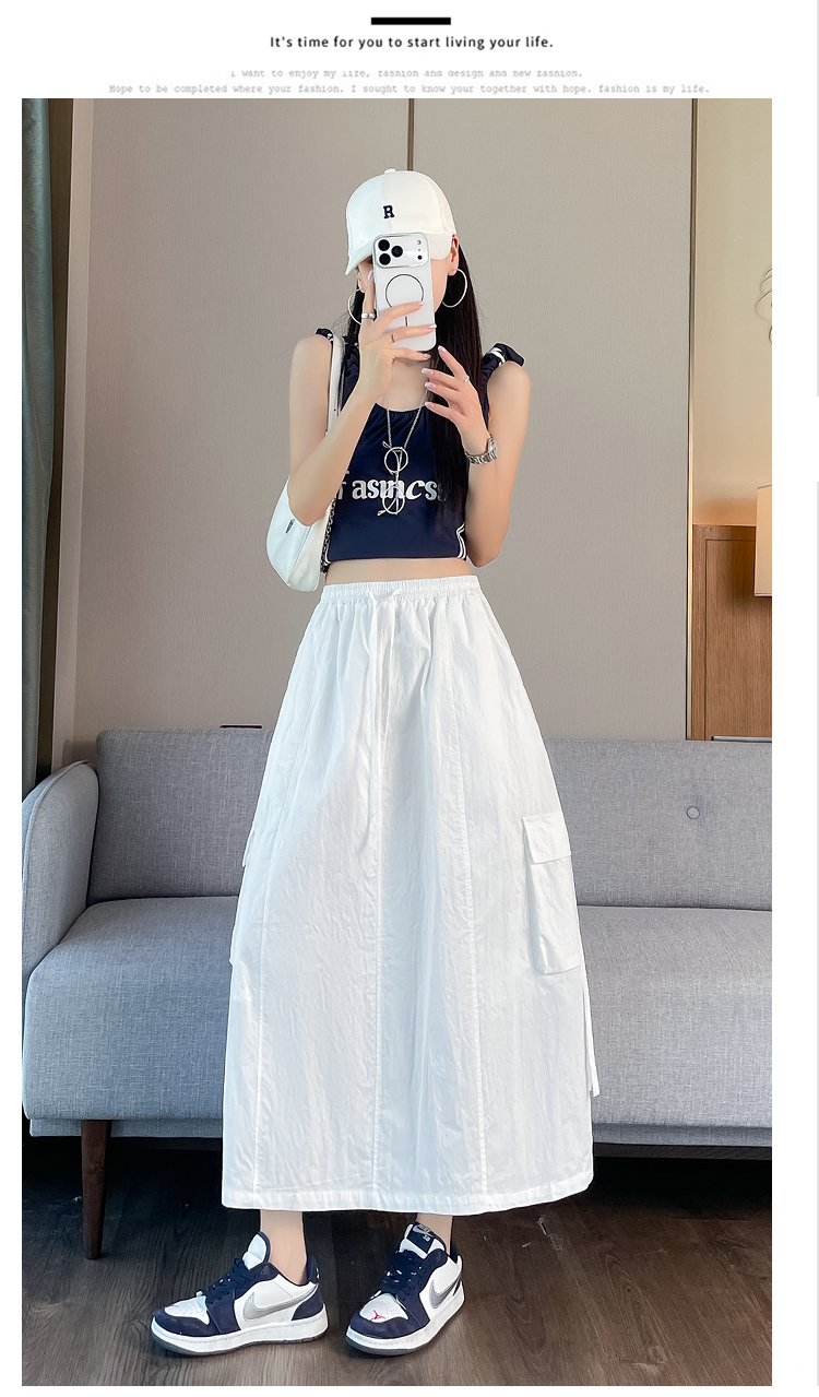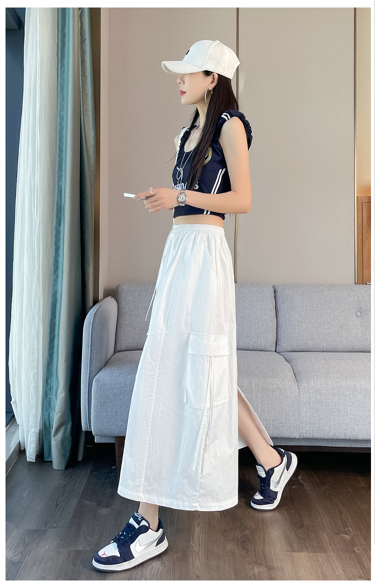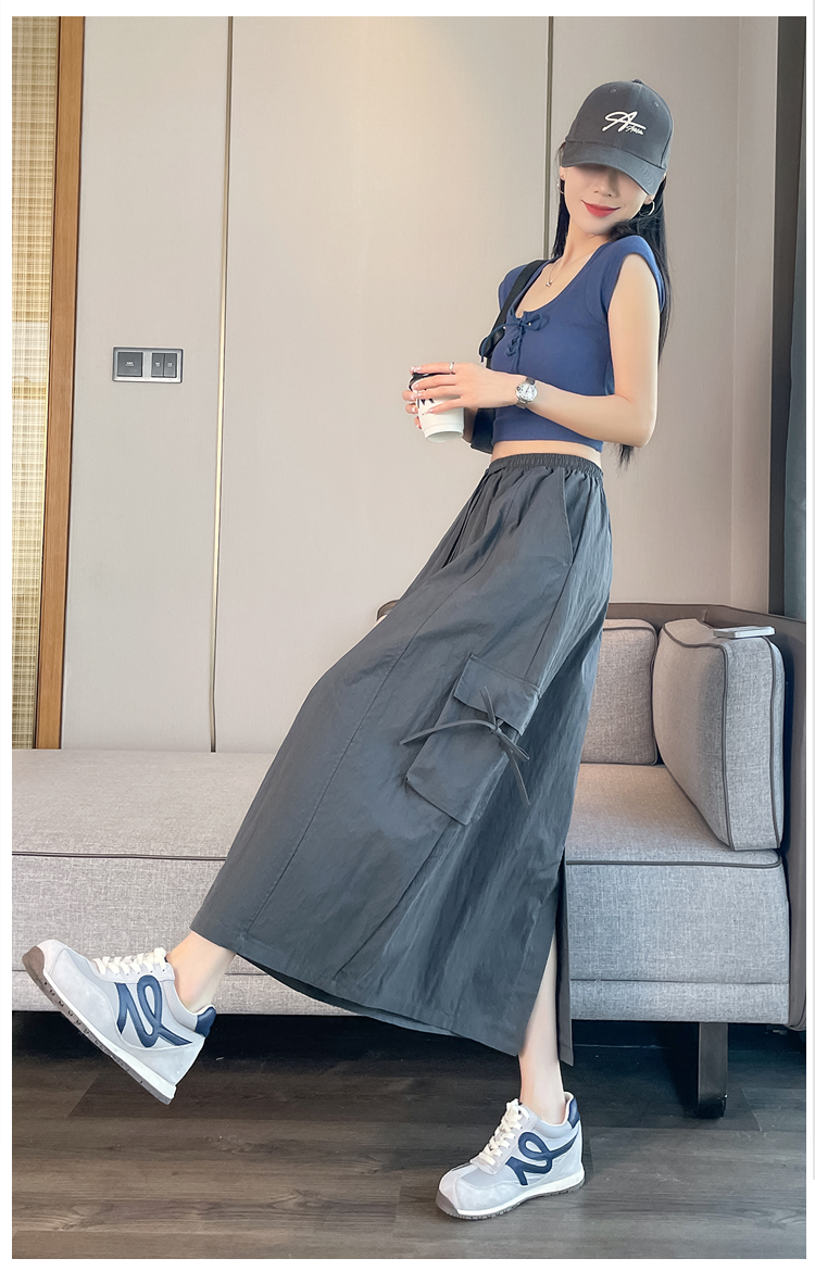 실사 여름 새로운 펌프 로프 워크웨어 주머니 캐주얼 반신 스커트 하이웨이스트 슬림해 보이는 트임 표지 십자가 다용도 A라인 스커트