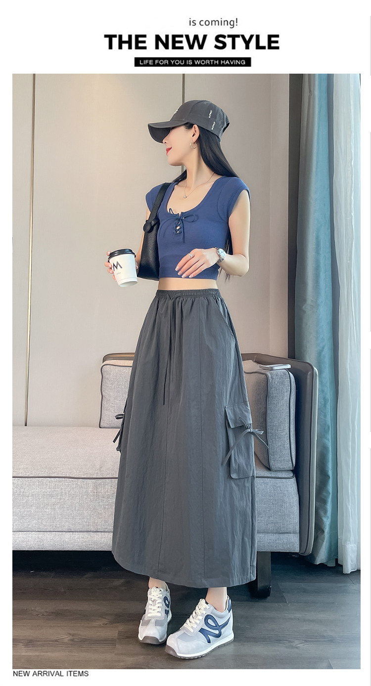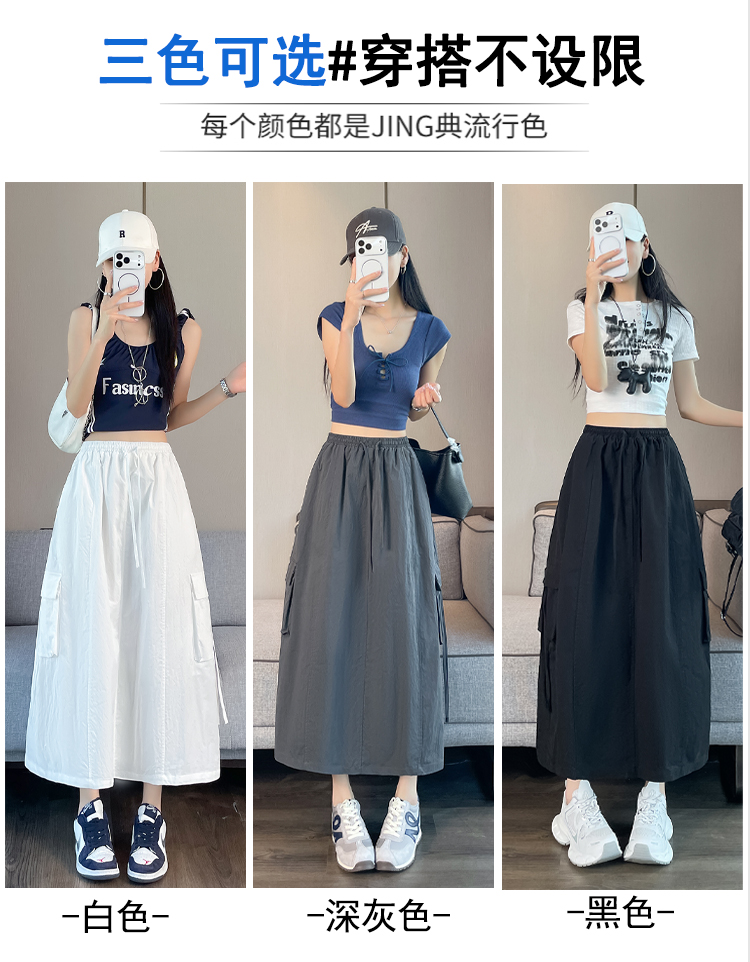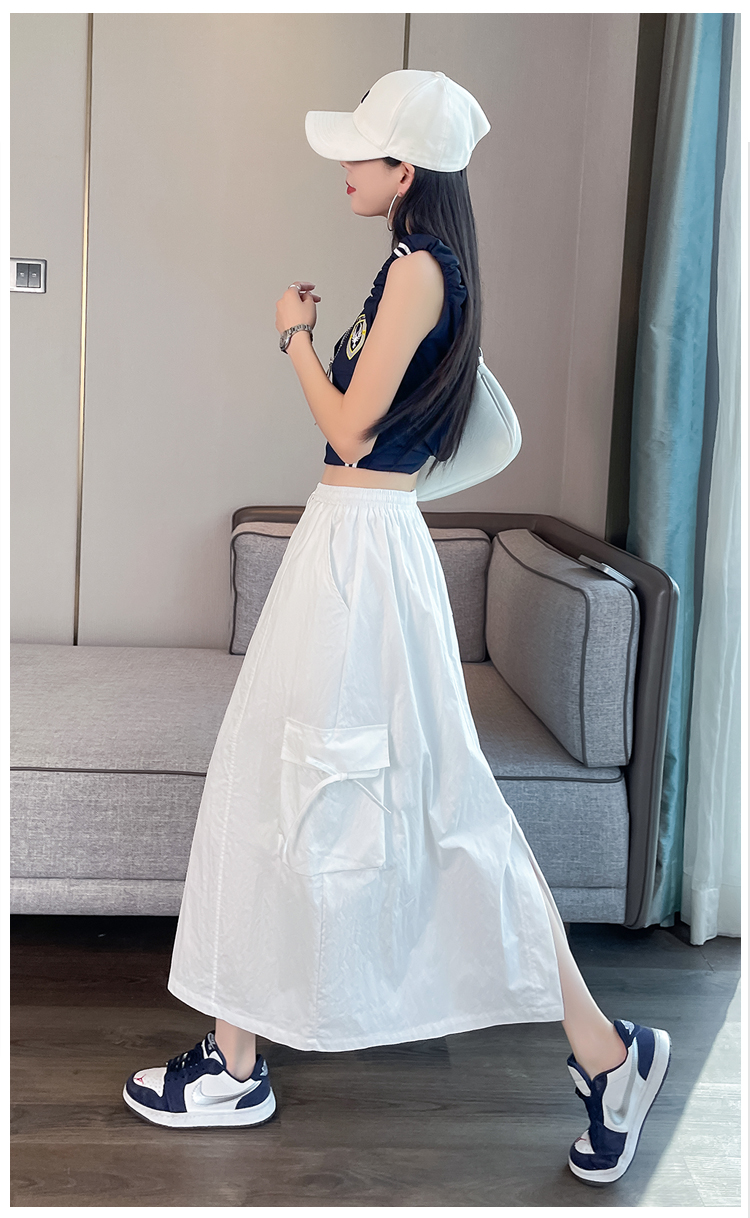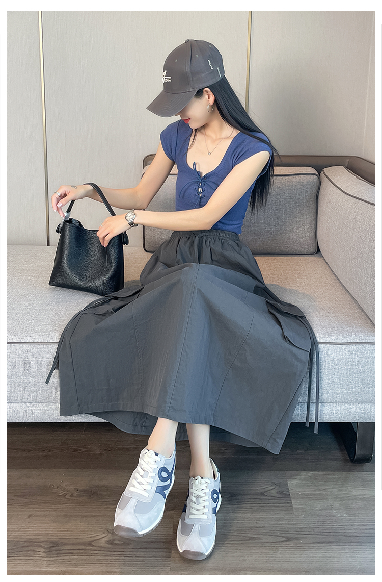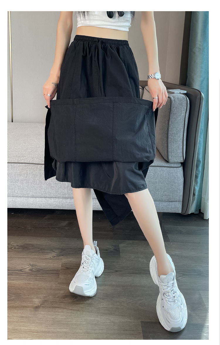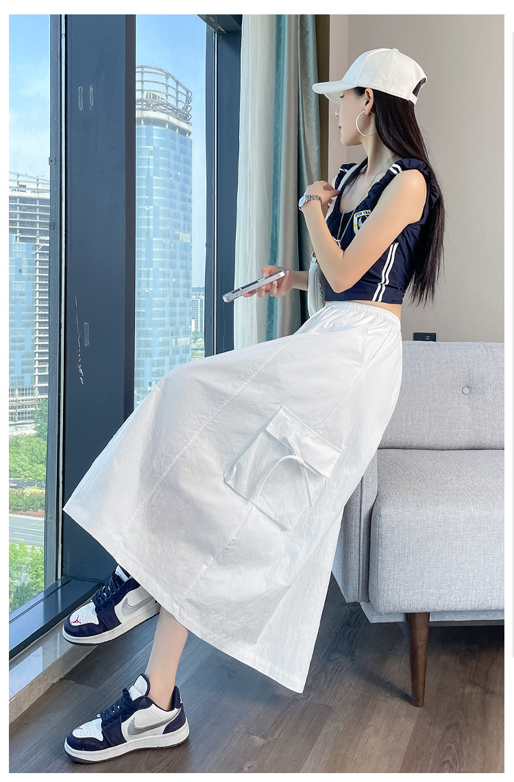실사 여름 새로운 펌프 로프 워크웨어 주머니 캐주얼 반신 스커트 하이웨이스트 슬림해 보이는 트임 표지 십자가 다용도 A라인 스커트