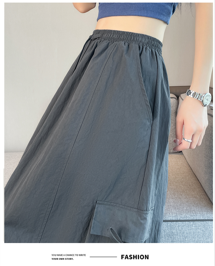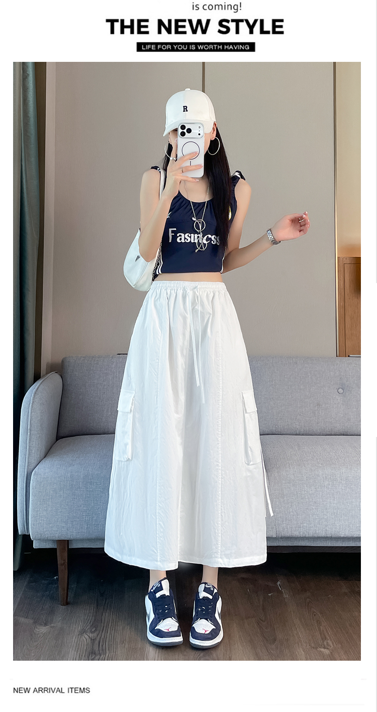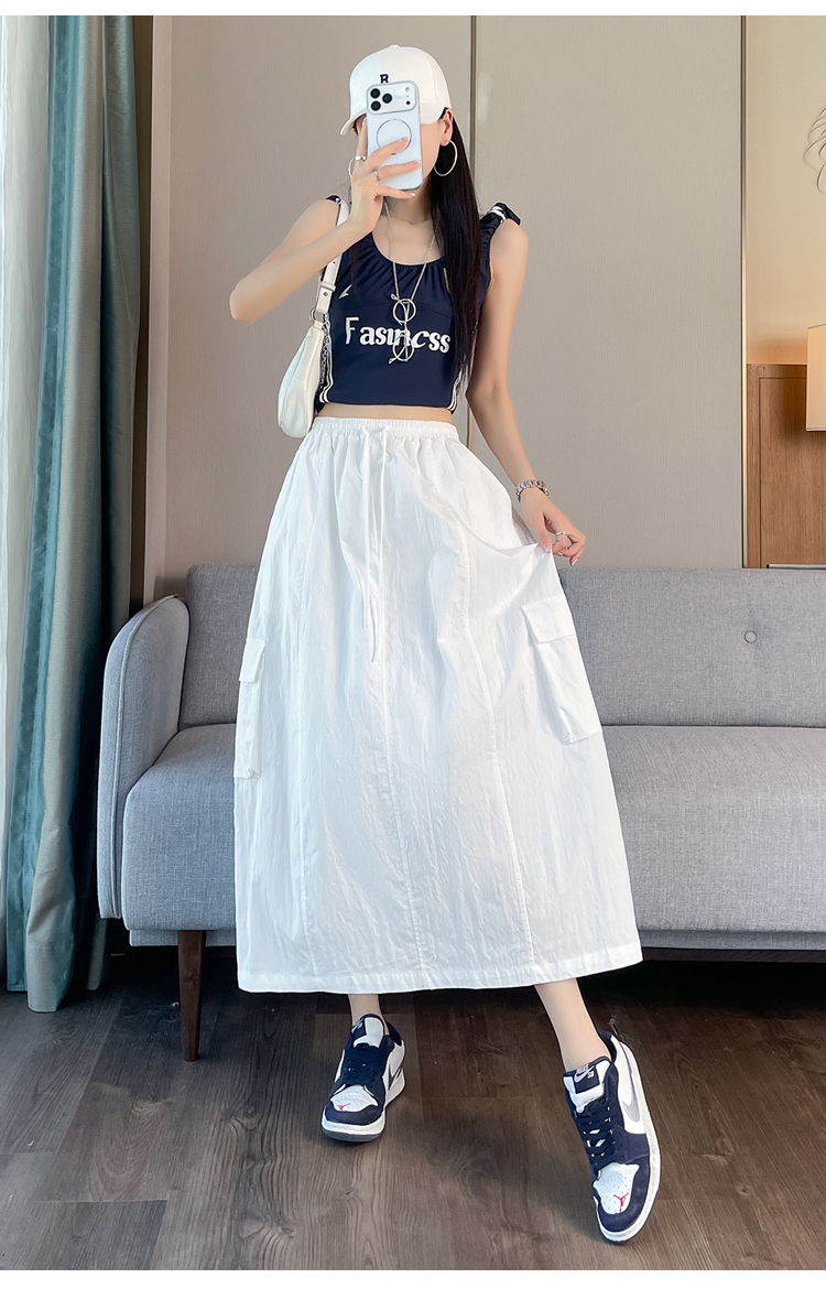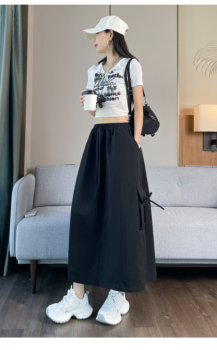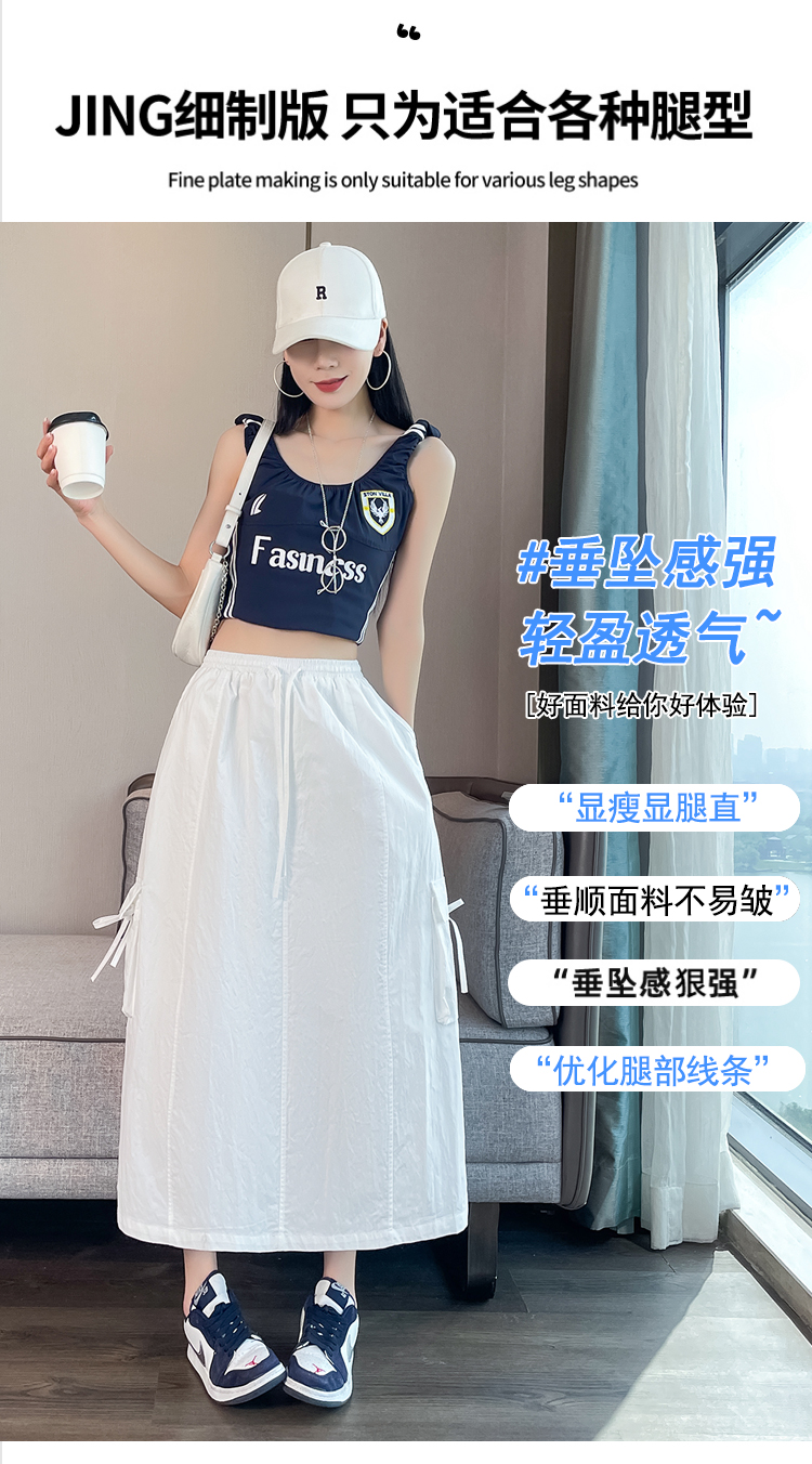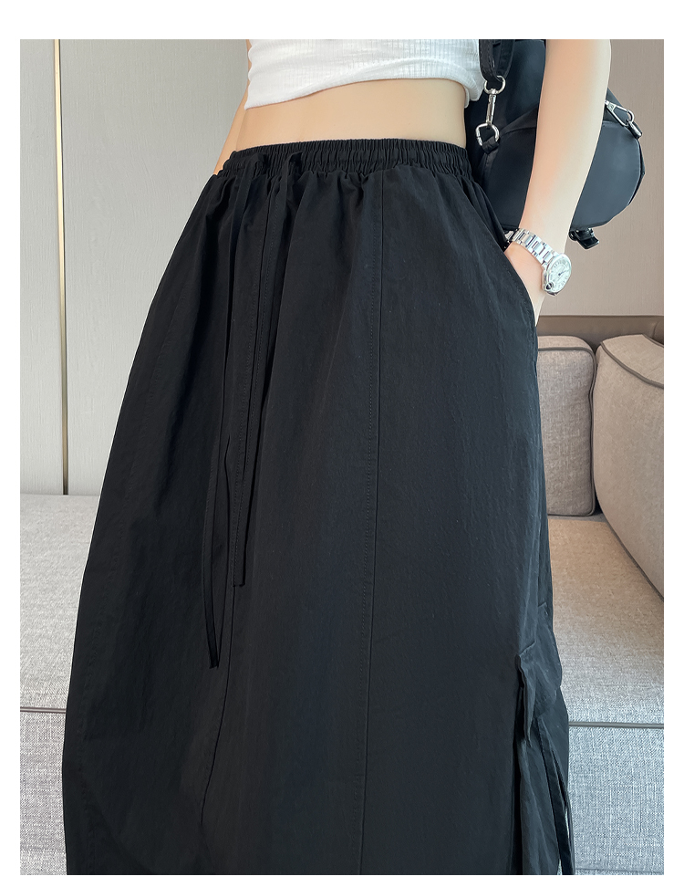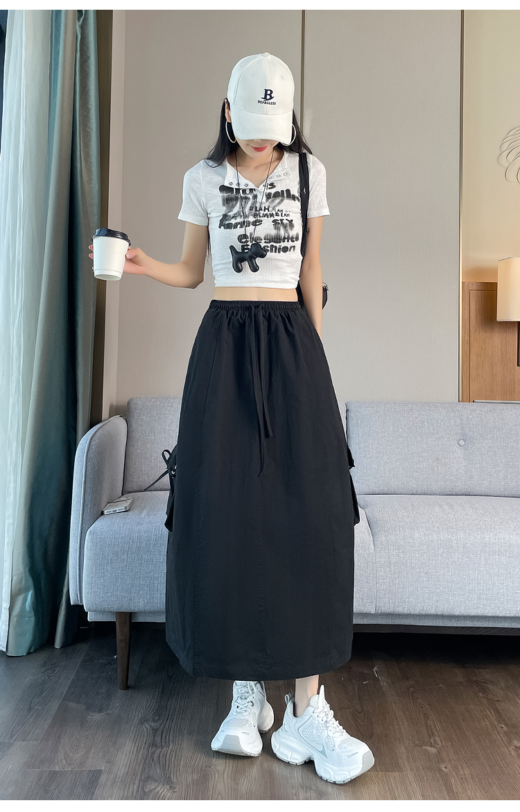 실사 여름 새로운 펌프 로프 워크웨어 주머니 캐주얼 반신 스커트 하이웨이스트 슬림해 보이는 트임 표지 십자가 다용도 A라인 스커트