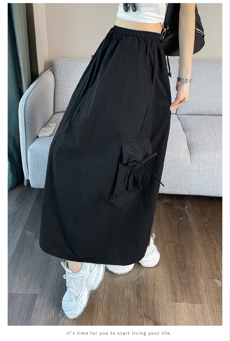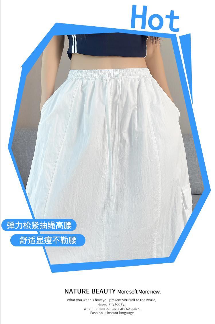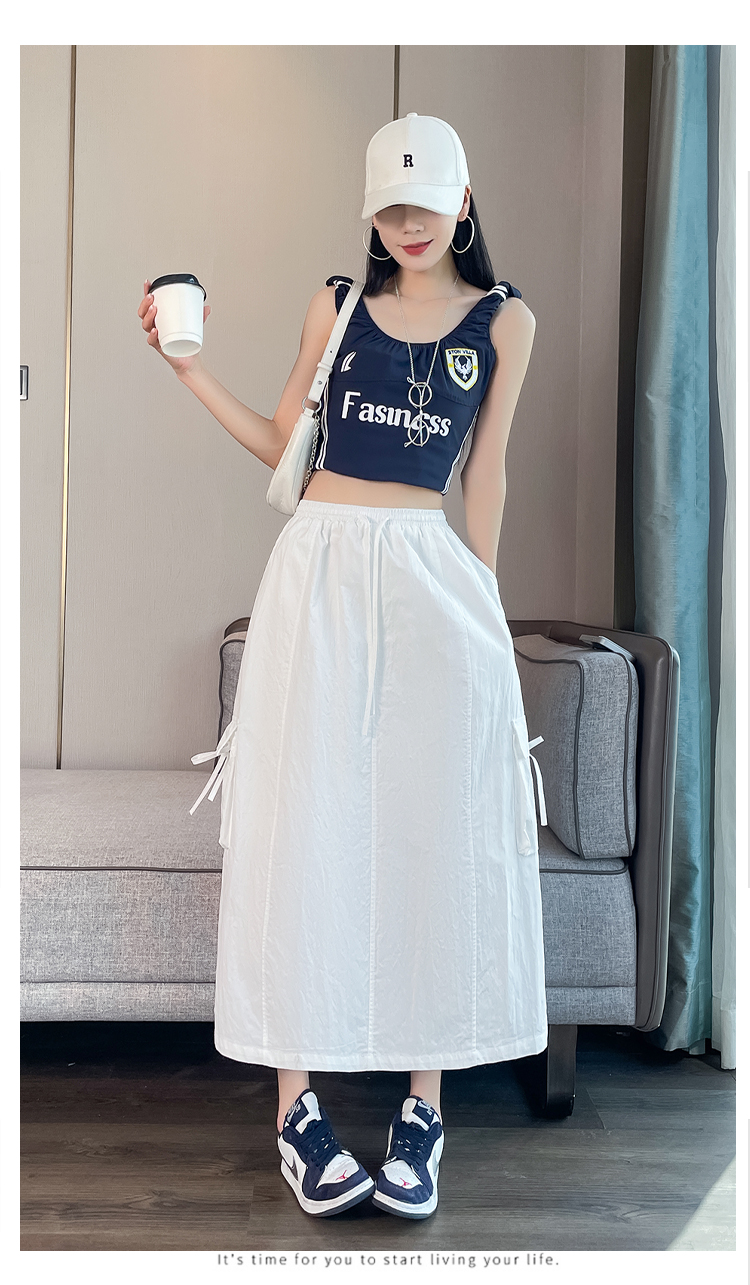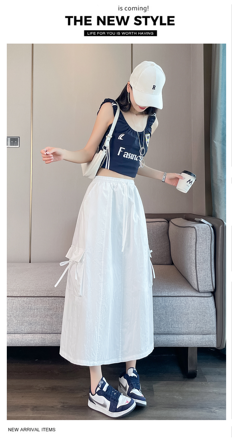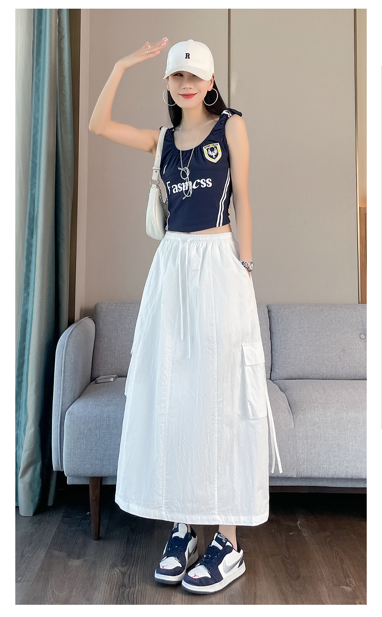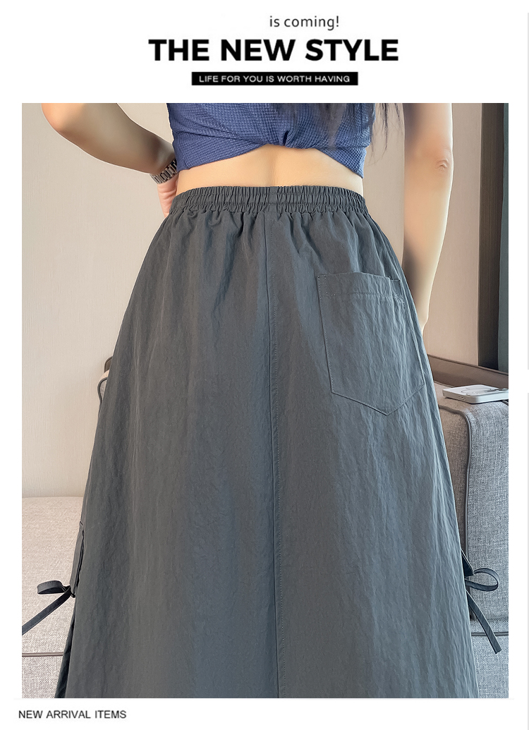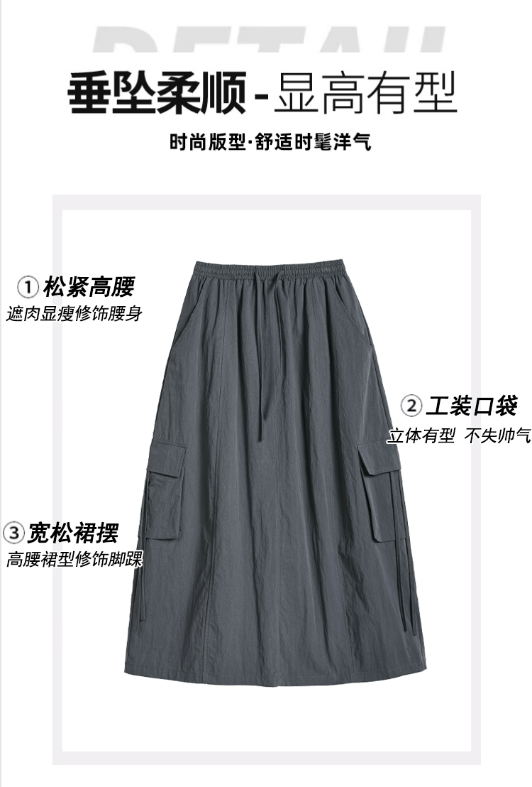 실사 여름 새로운 펌프 로프 워크웨어 주머니 캐주얼 반신 스커트 하이웨이스트 슬림해 보이는 트임 표지 십자가 다용도 A라인 스커트