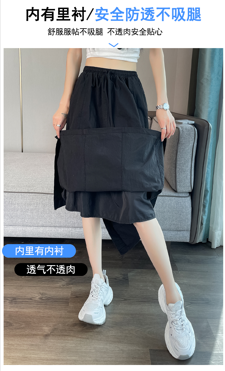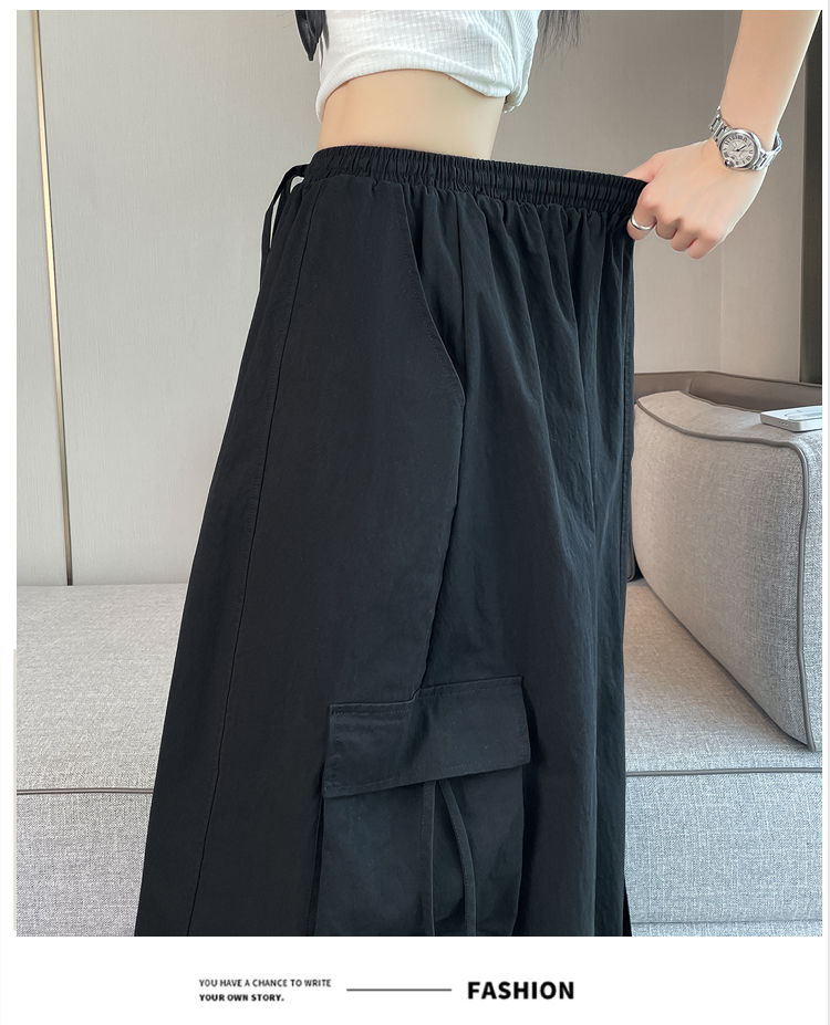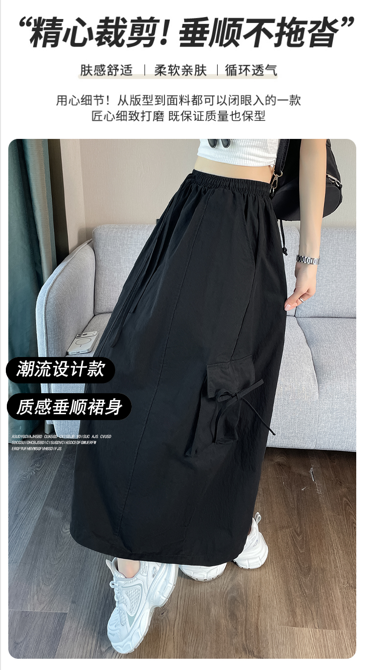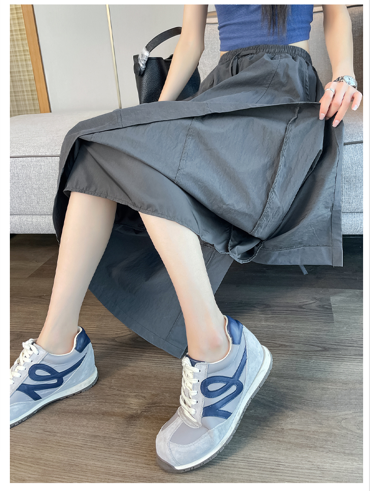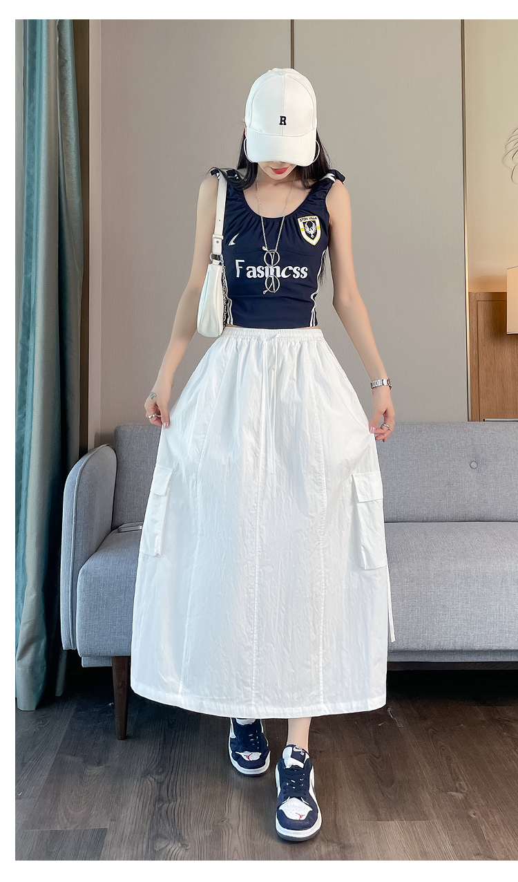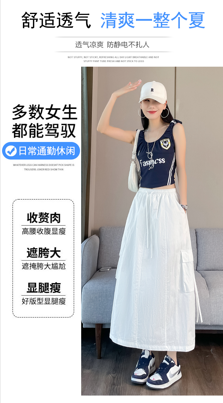 실사 여름 새로운 펌프 로프 워크웨어 주머니 캐주얼 반신 스커트 하이웨이스트 슬림해 보이는 트임 표지 십자가 다용도 A라인 스커트