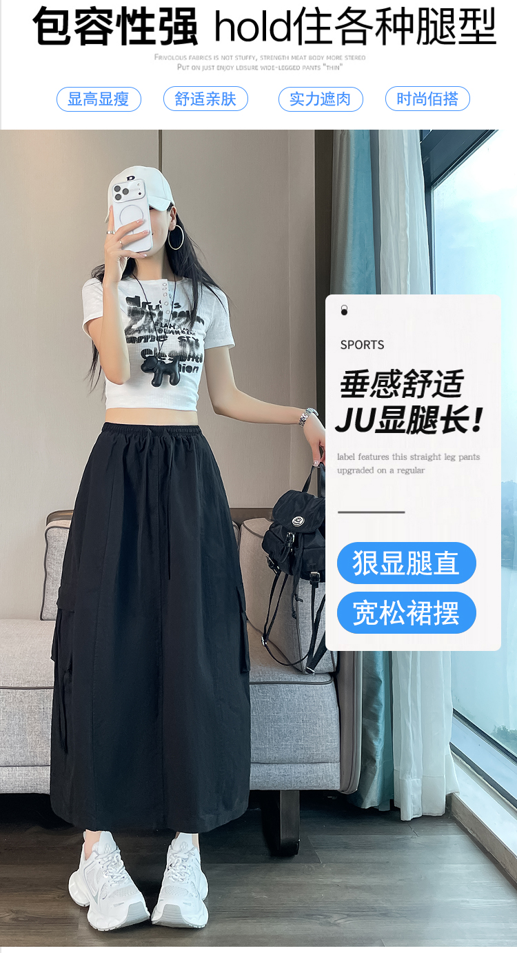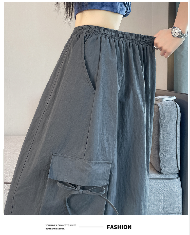 실사 여름 얇은 스타일 둘 착용 디자인 센스 주머니 워크웨어 팬츠 여성 하이웨이스트 펌프 로프 조거 속도 건조한 캐주얼 바지
