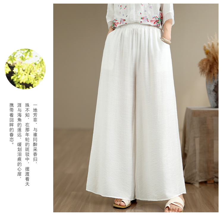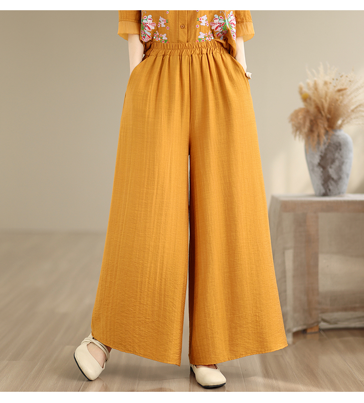 실사 2026 년 단색 자수 라미 문예 맨위 캐주얼 슬림해 보이는 넓은 다리 길이 바지 투피스 세트