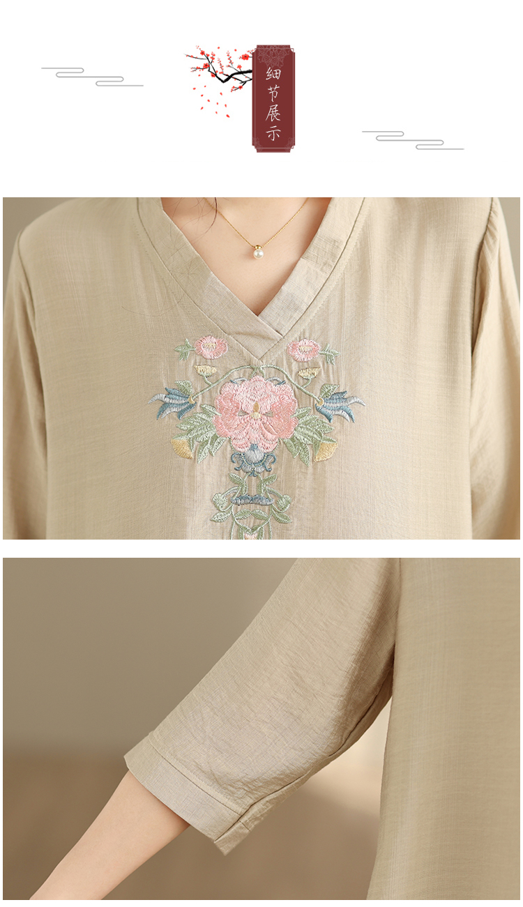 실사 2026 년 여름 새로운 자수 단색 면 린넨 루즈핏 표지 배 슬림해 보이는 맨위 블라우스