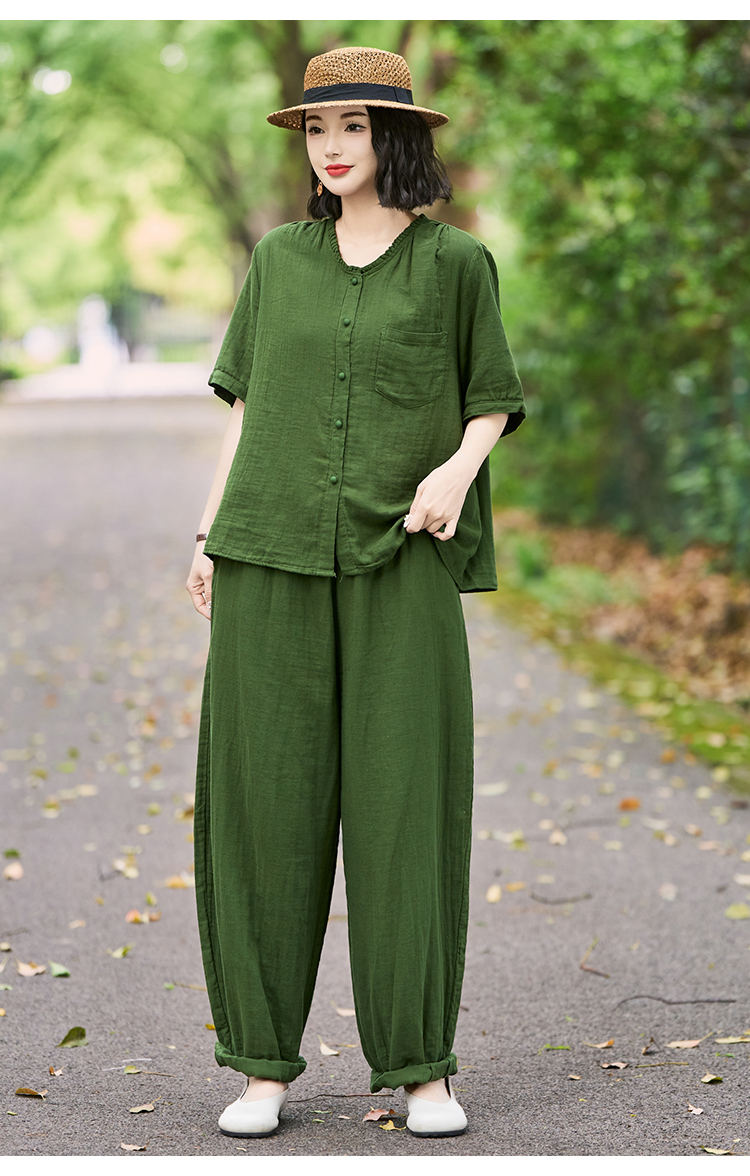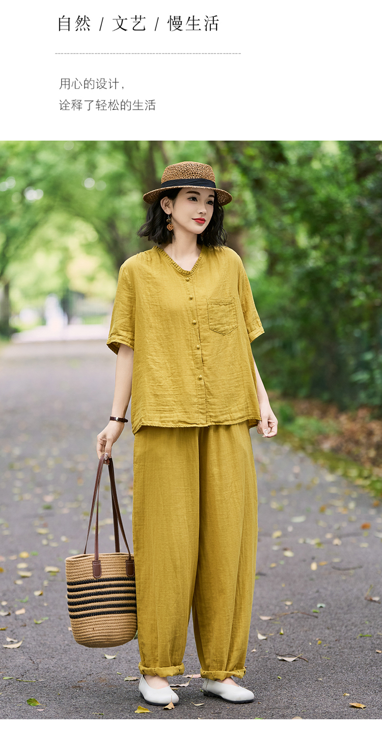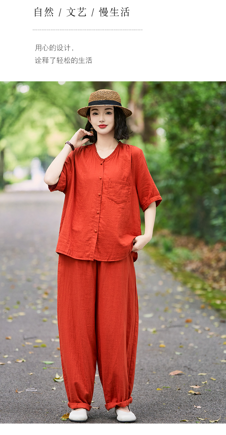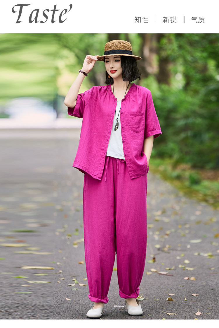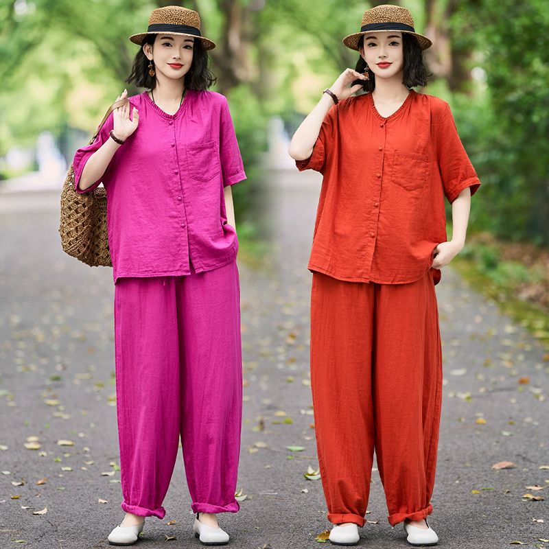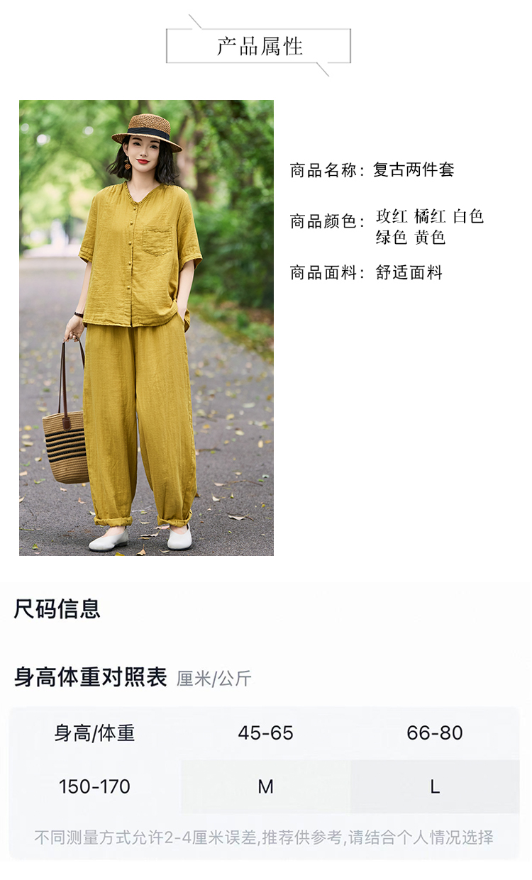 2026 여름 워시 물 더블 실 아기 면 린넨 면 새로운 빅 사이즈 새로운 중식 국풍 슬림해 보이는 투피스 세트 세트