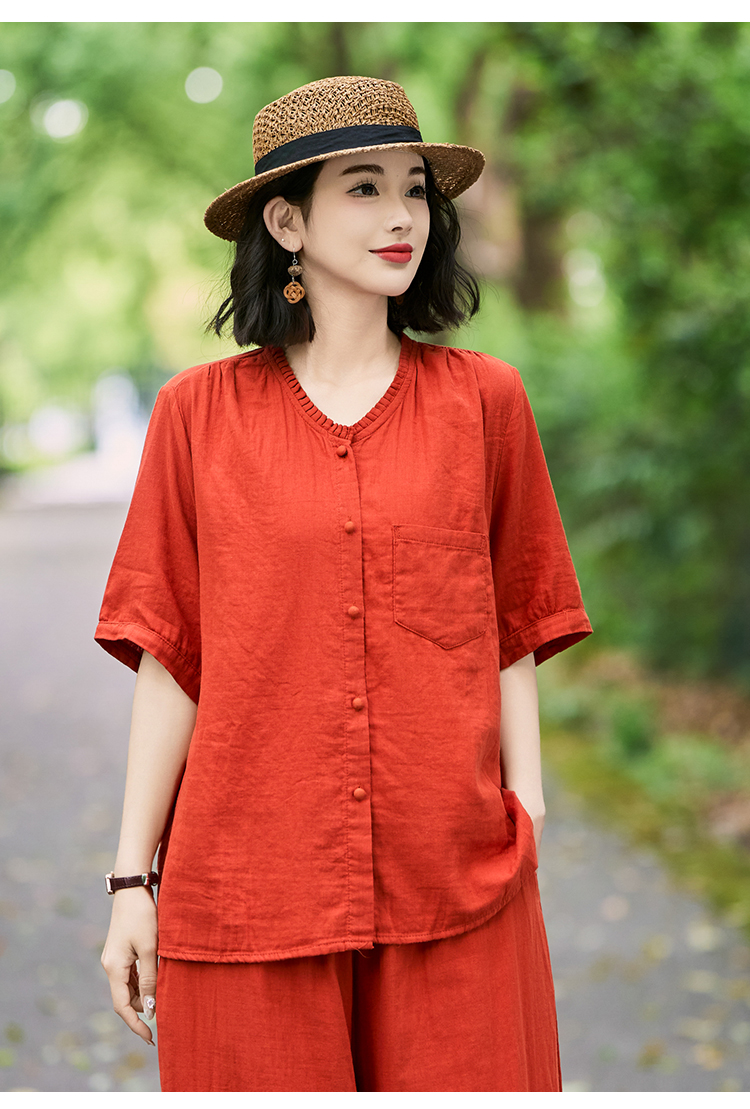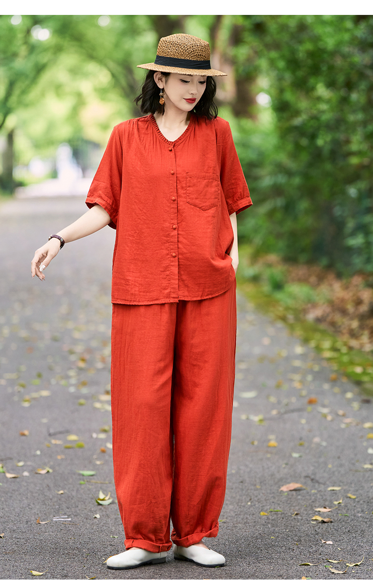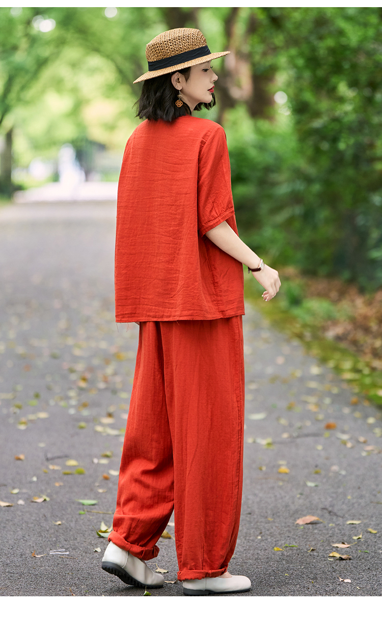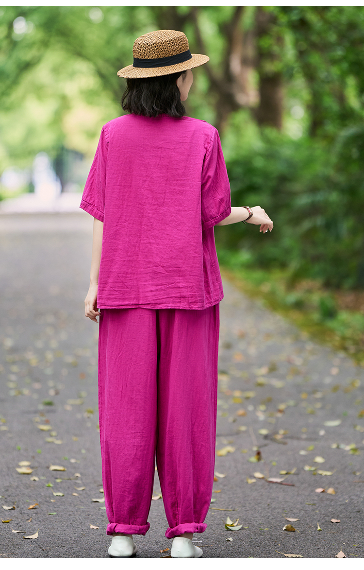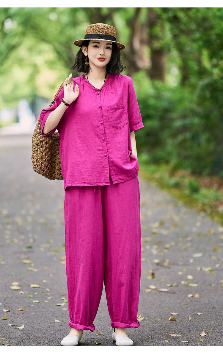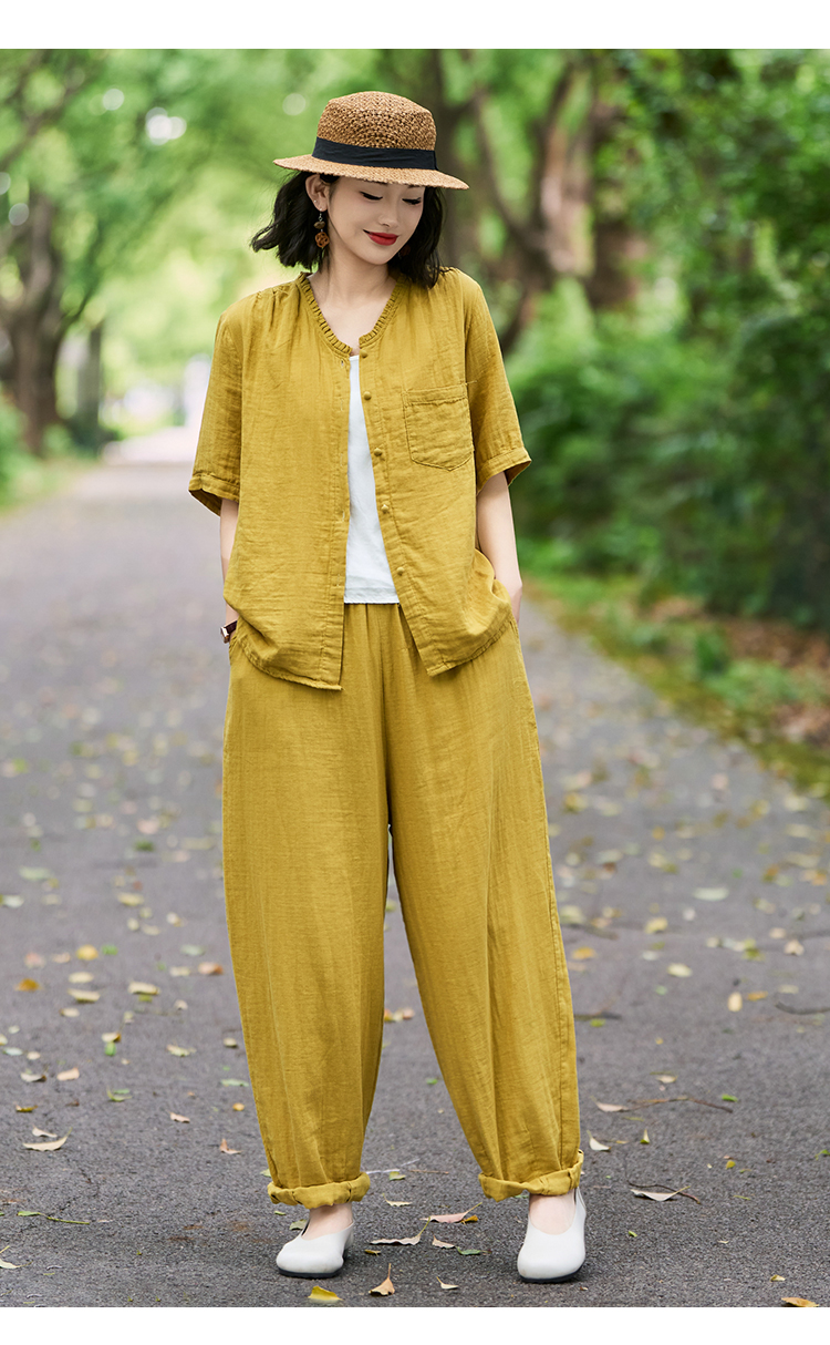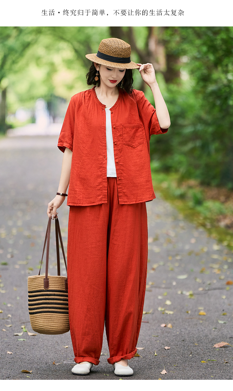 2026 여름 워시 물 더블 실 아기 면 린넨 면 새로운 빅 사이즈 새로운 중식 국풍 슬림해 보이는 투피스 세트 세트