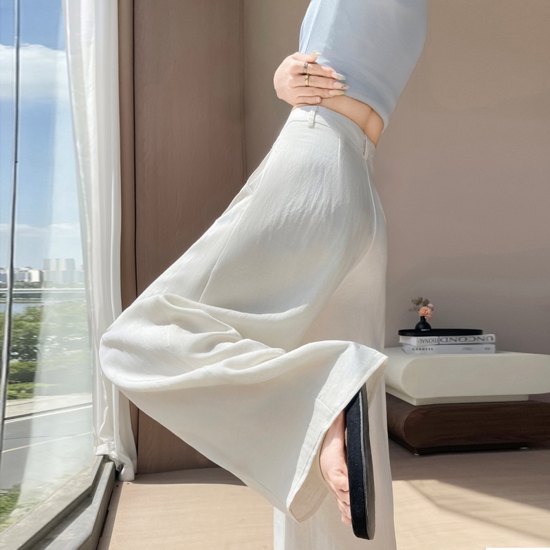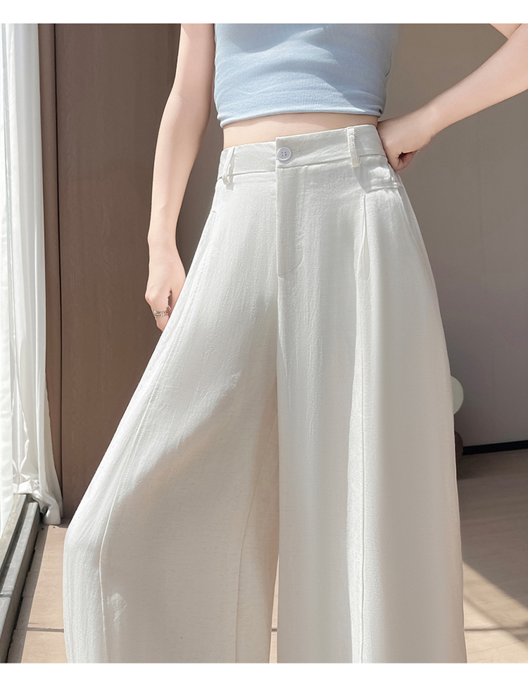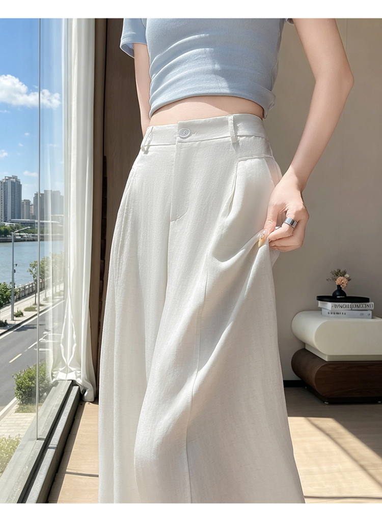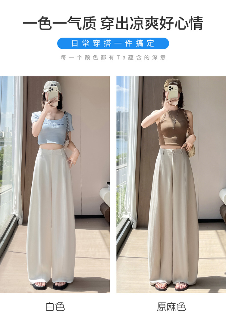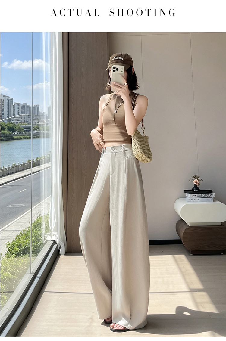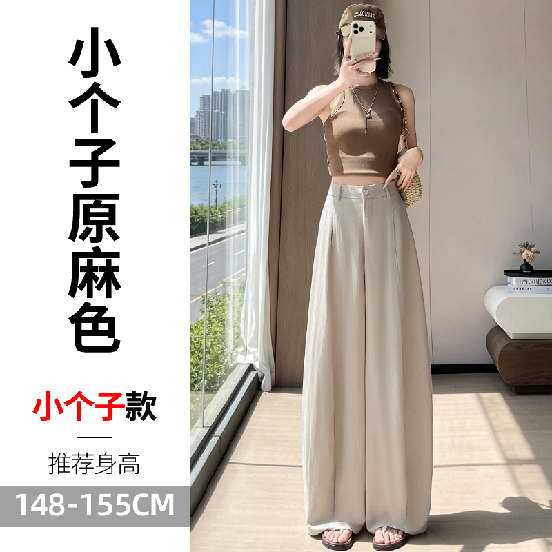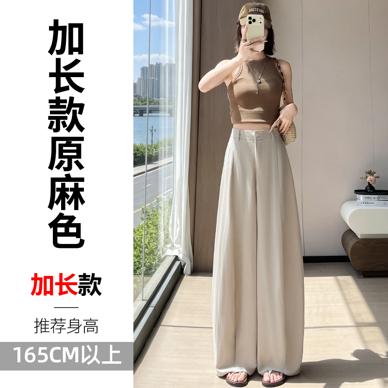 실사 2026 여름 새로운 주간 실크 아마 바지 와이드 레그 팬츠 얇은 스타일 하이웨이스트 얼음 실크 좁은 에디션 바닥 청소 바지 여성