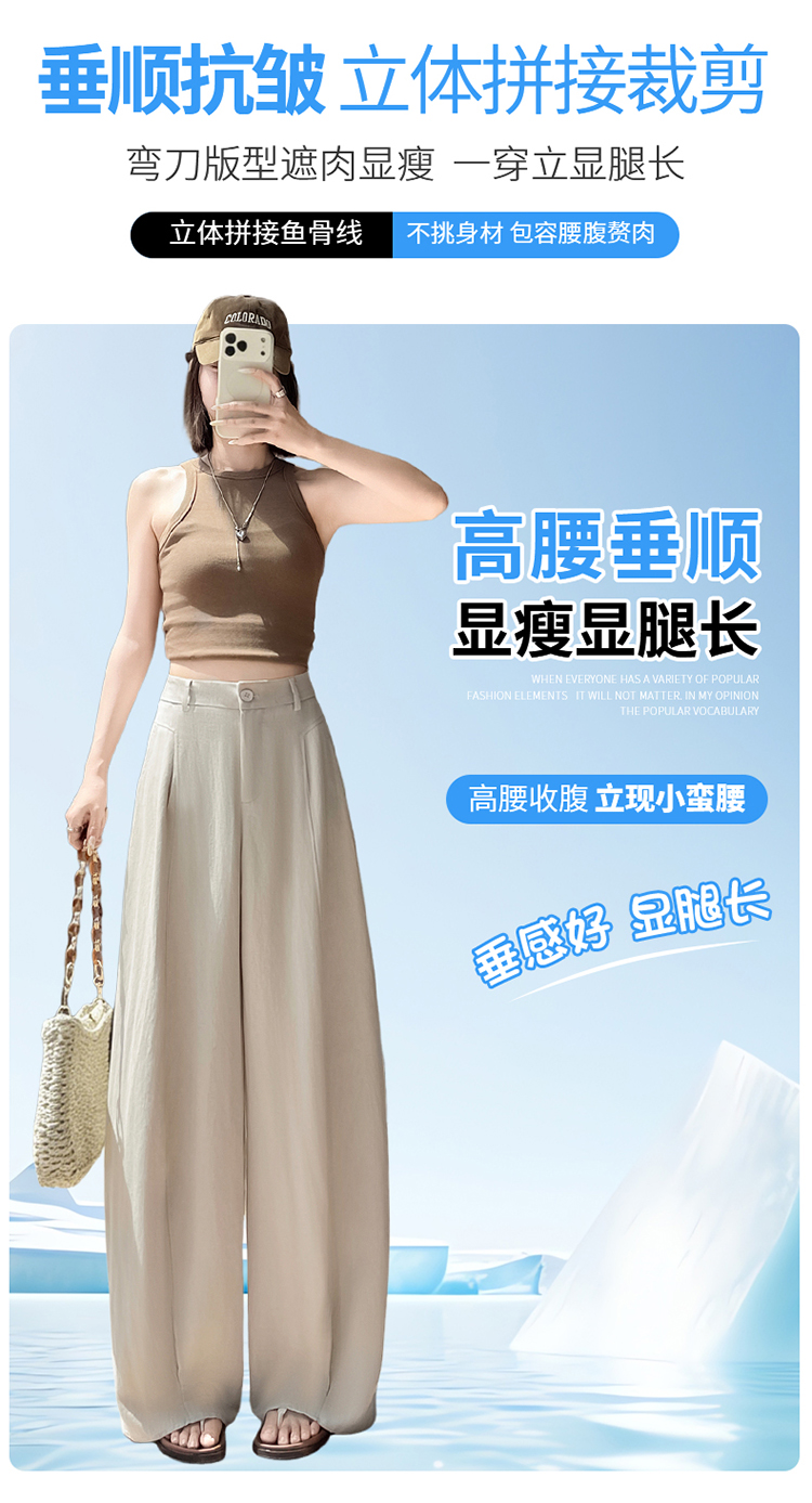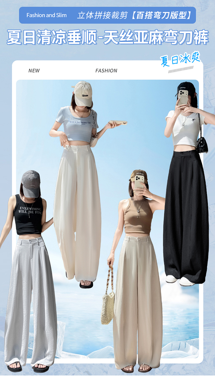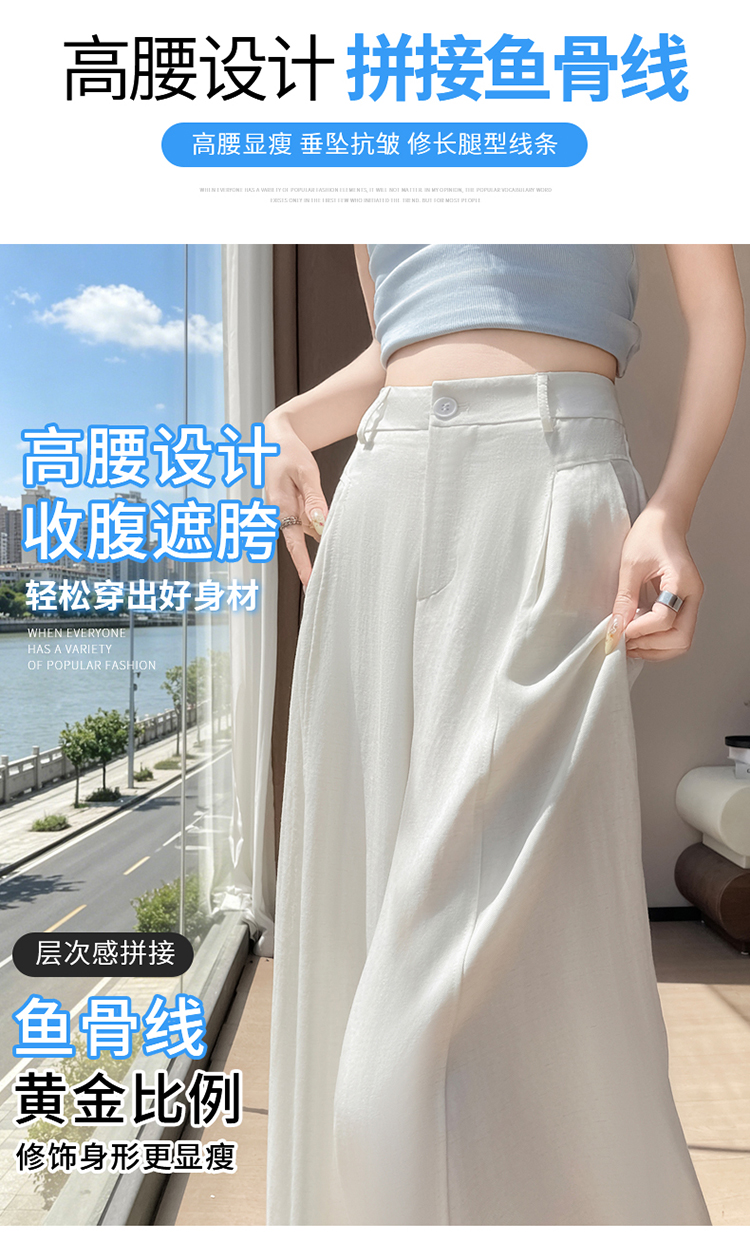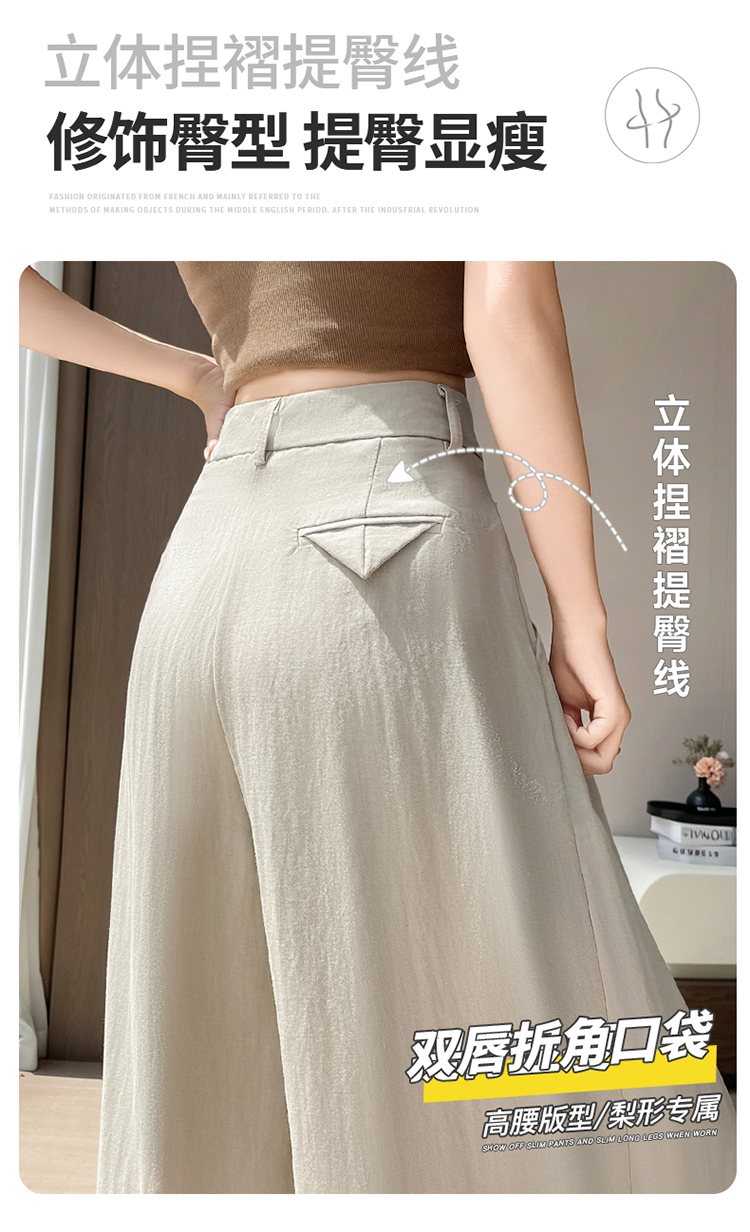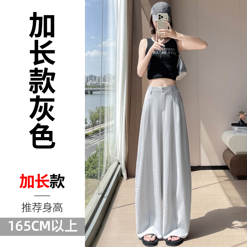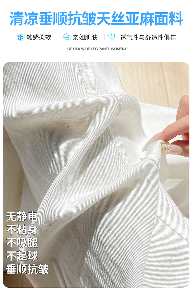 실사 2026 여름 새로운 주간 실크 아마 바지 와이드 레그 팬츠 얇은 스타일 하이웨이스트 얼음 실크 좁은 에디션 바닥 청소 바지 여성