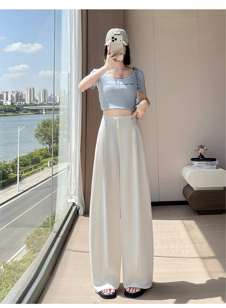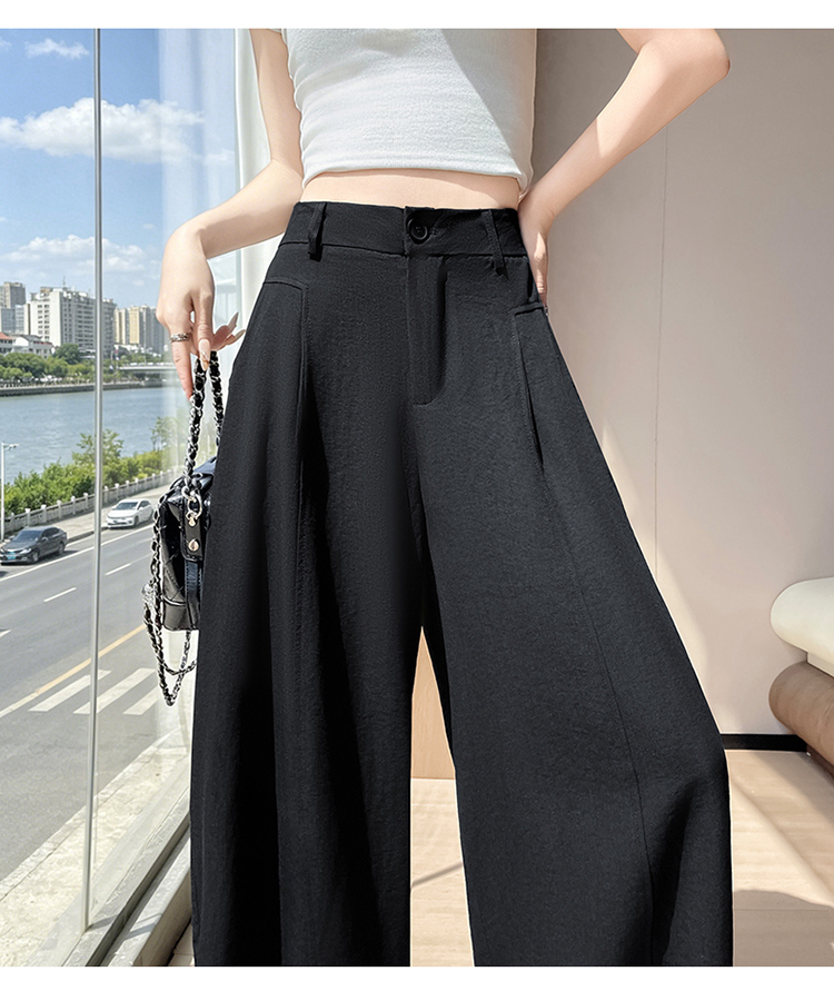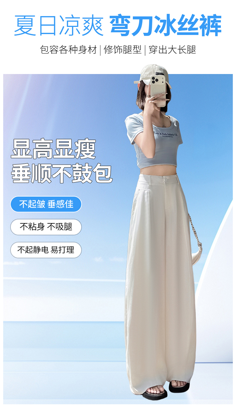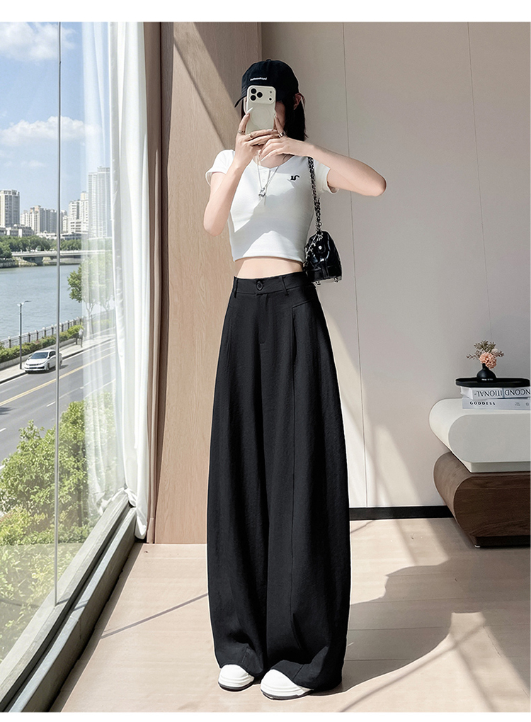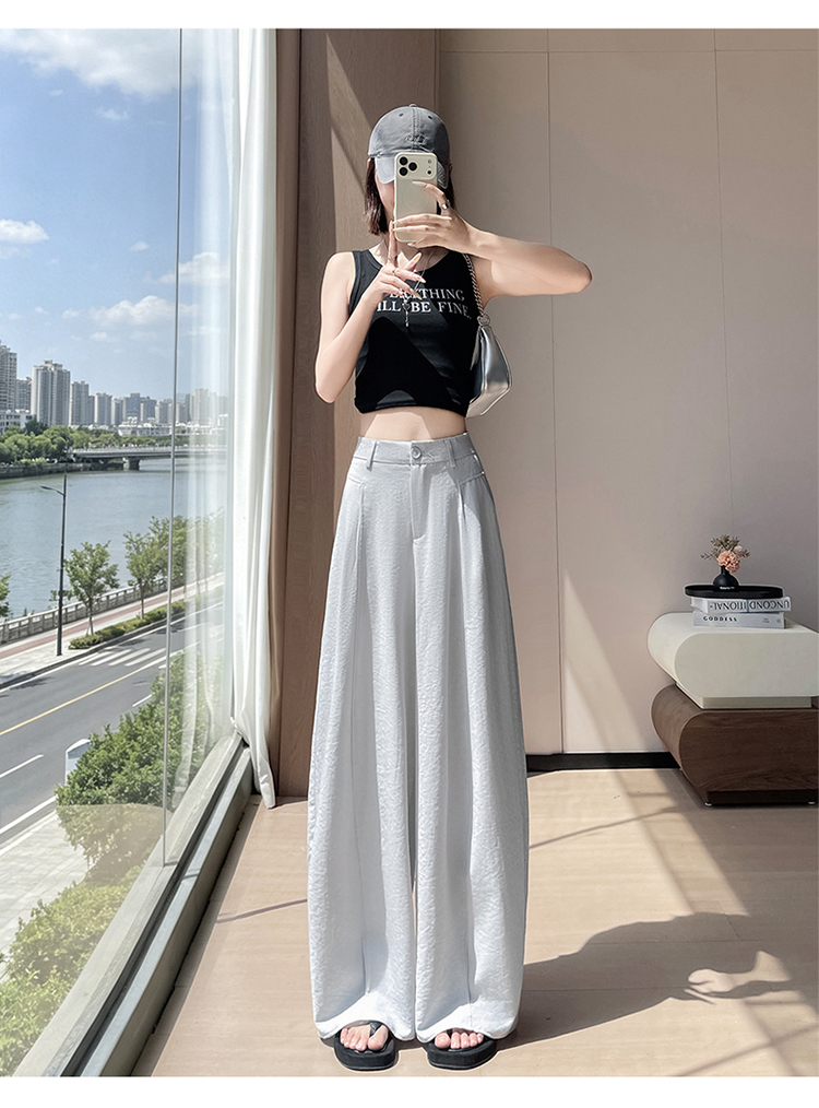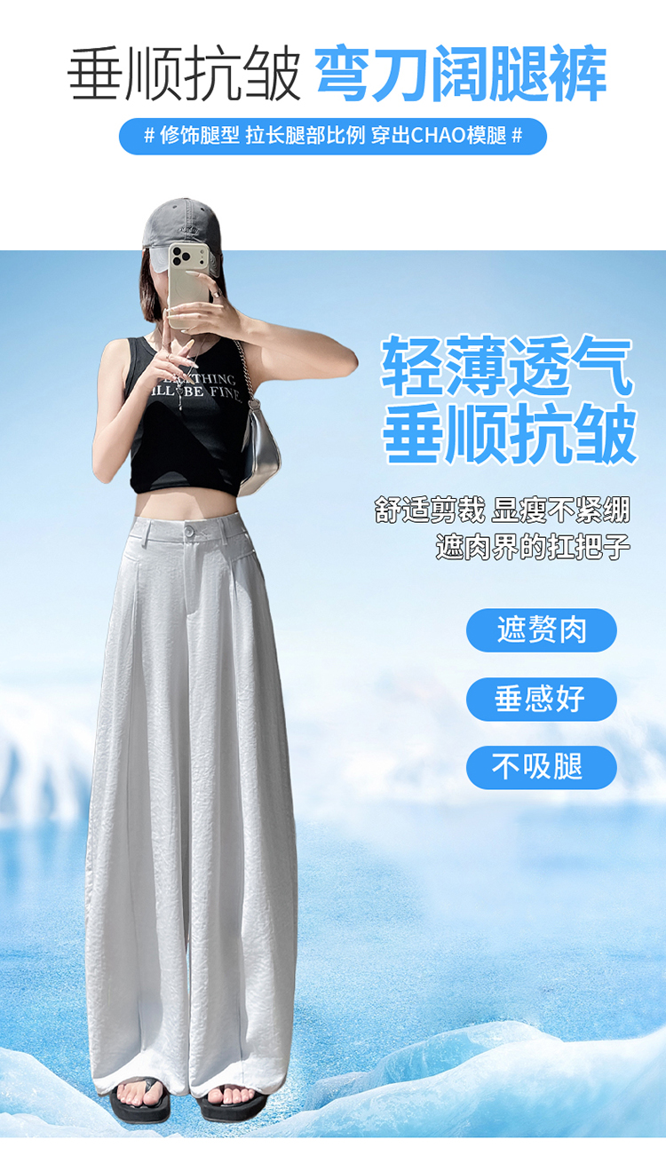 실사 2026 여름 새로운 주간 실크 아마 바지 와이드 레그 팬츠 얇은 스타일 하이웨이스트 얼음 실크 좁은 에디션 바닥 청소 바지 여성