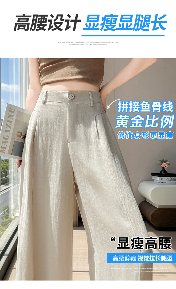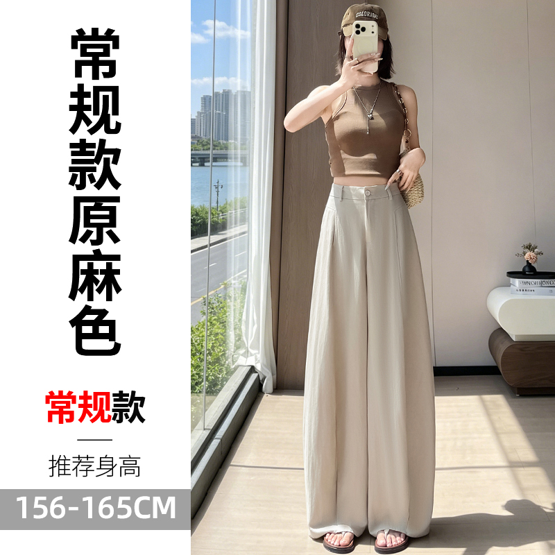 실사 2026 여름 새로운 주간 실크 아마 와이드 레그 팬츠 하이웨이스트 캐주얼 바지 얼음 실크 스트레이트 바닥 청소 바지 여성