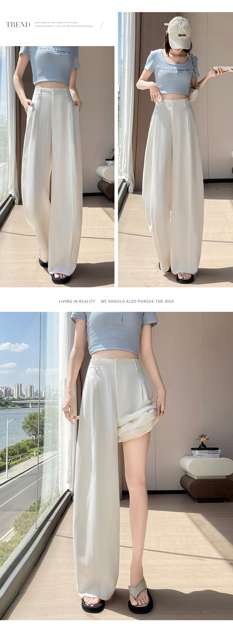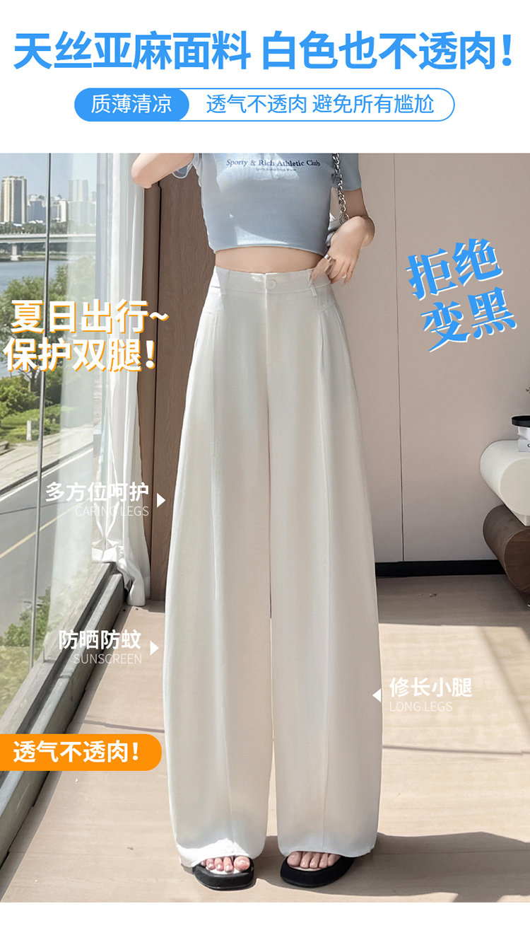 실사 2026 여름 새로운 주간 실크 아마 와이드 레그 팬츠 하이웨이스트 면 린넨 얇은 스타일 자외선 차단 스트레이트 바닥 청소 바지 여성
