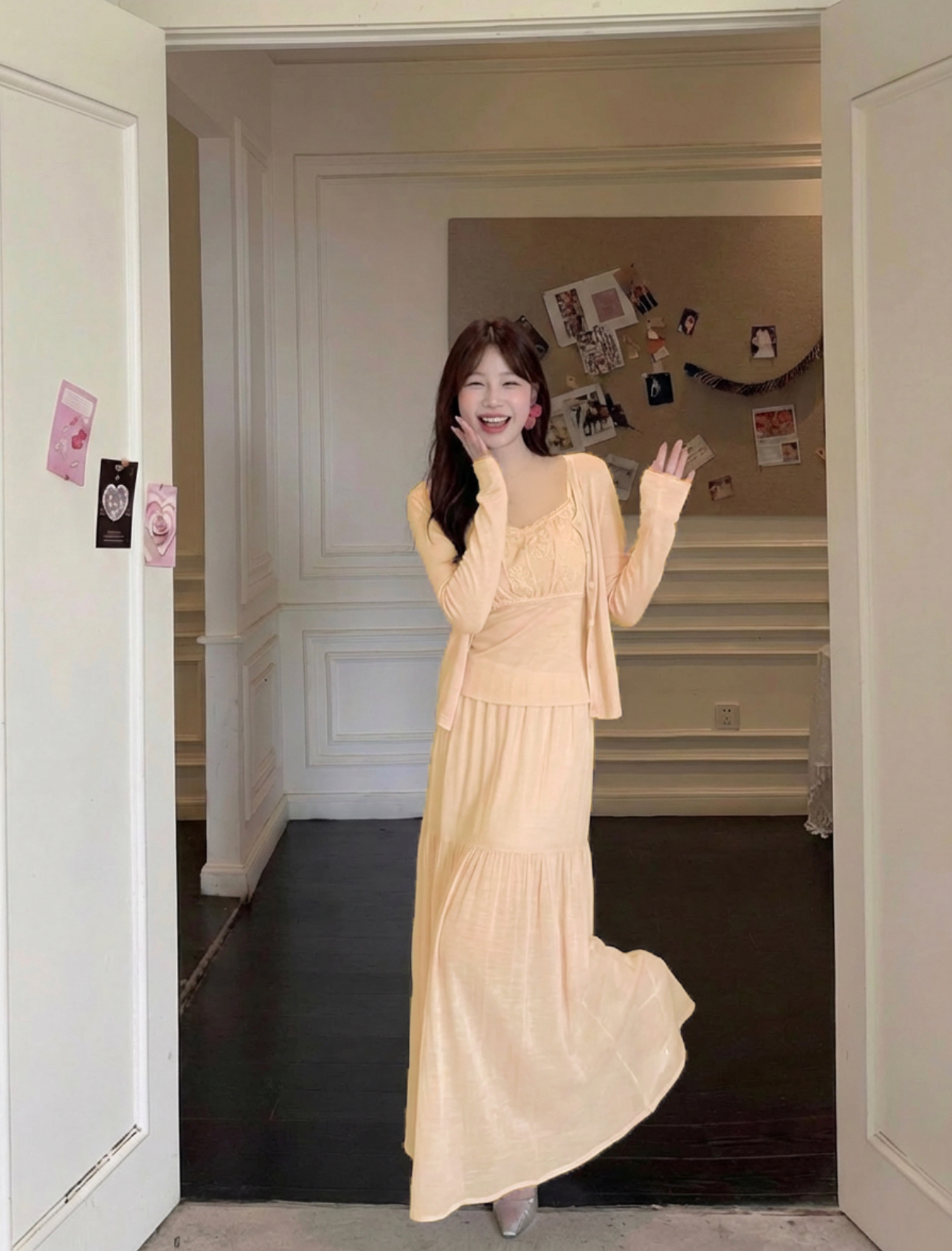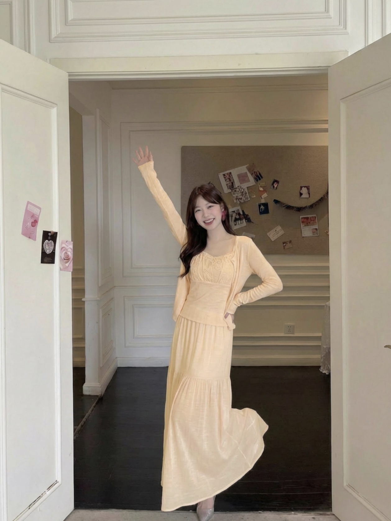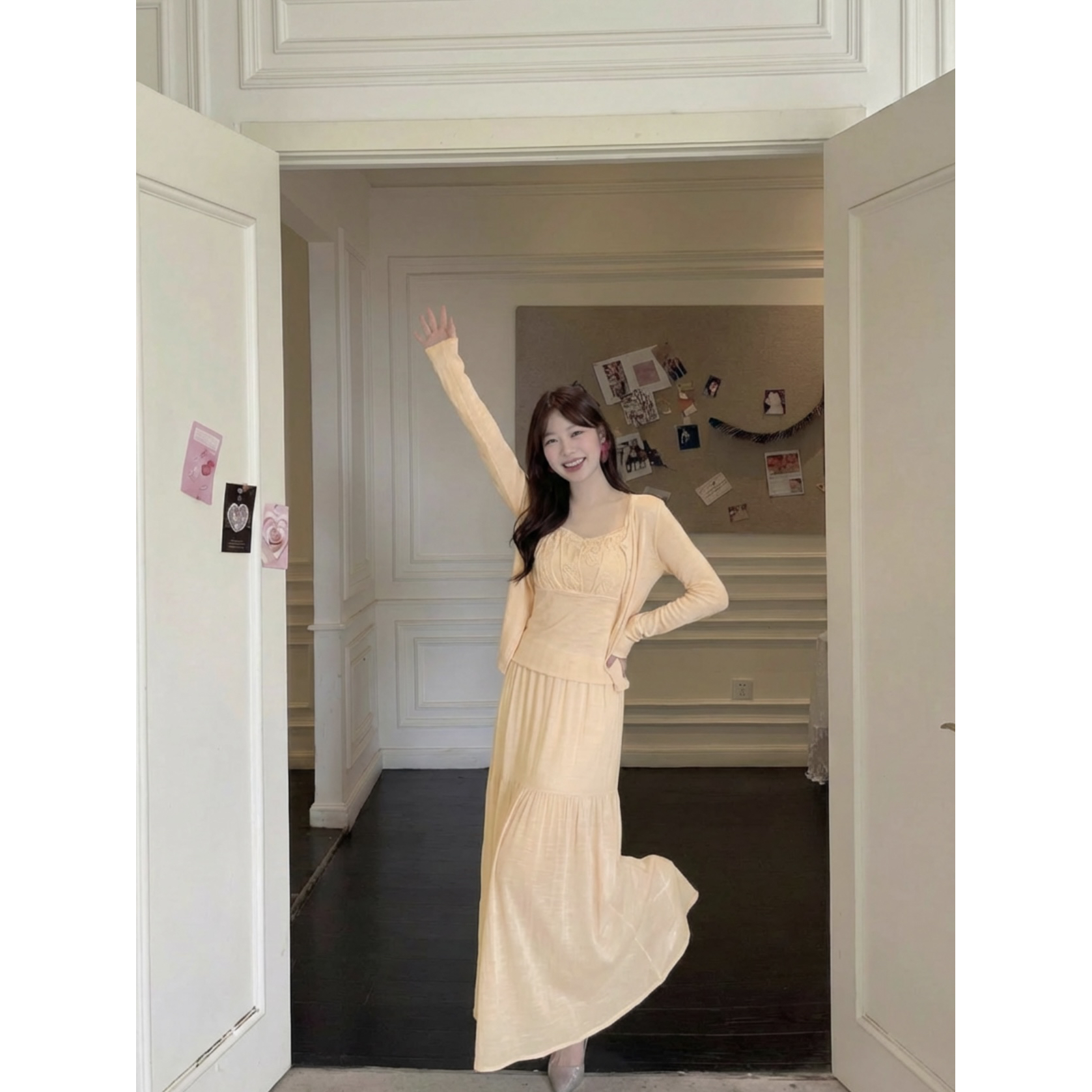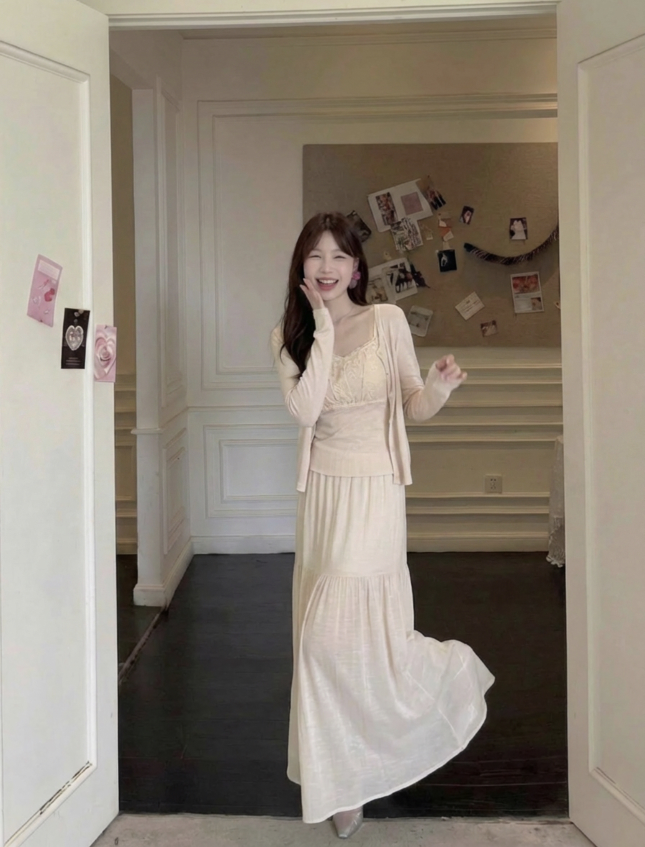 실사 정가 폭발 다용도 황색 디스플레이 화이트 슬림해 보이는 드레스
